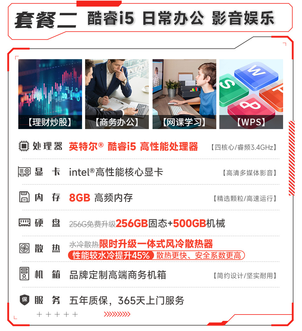 - 套二:办公酷睿i5丨8G丨756G
