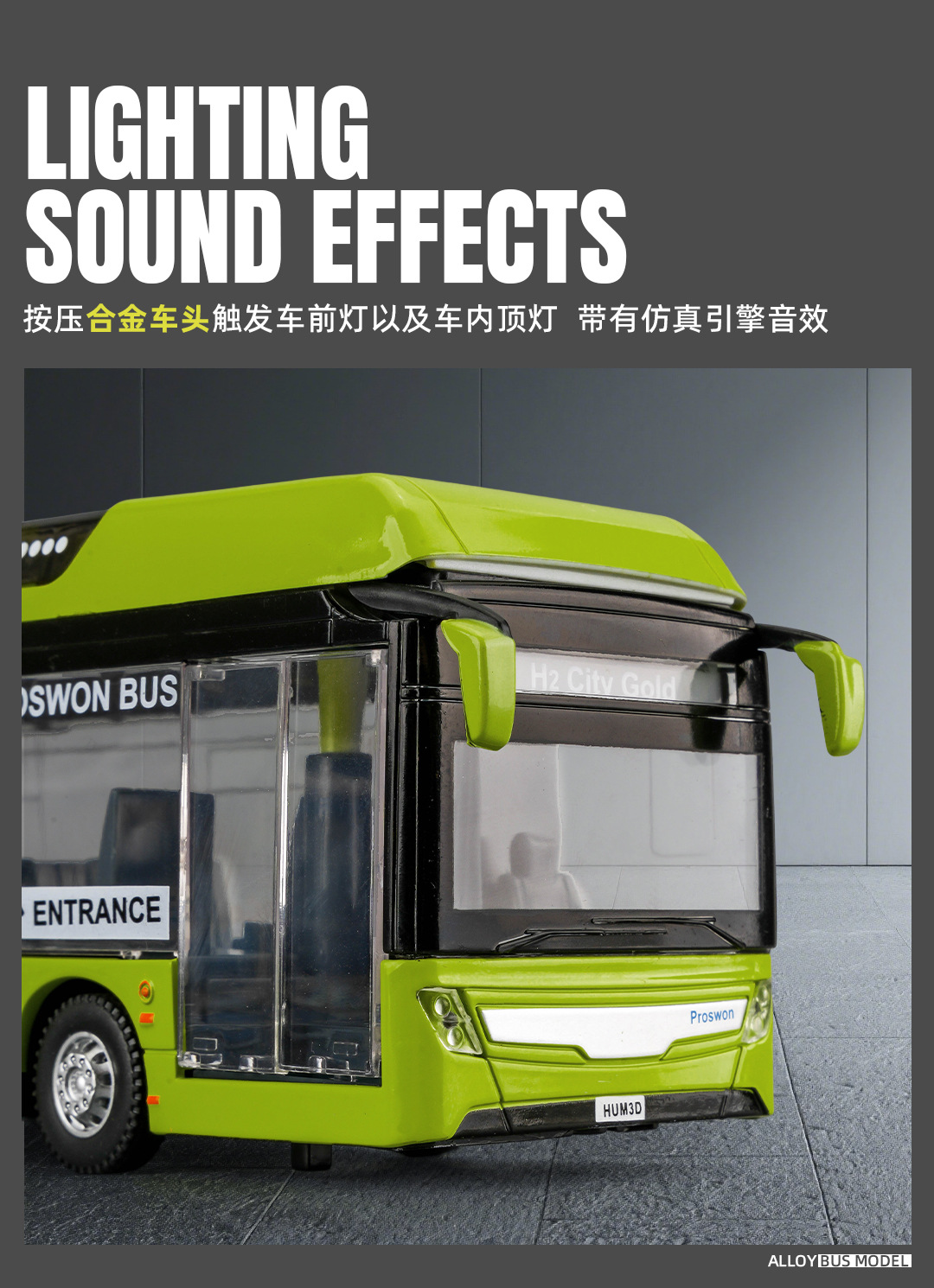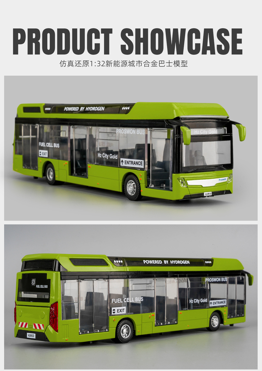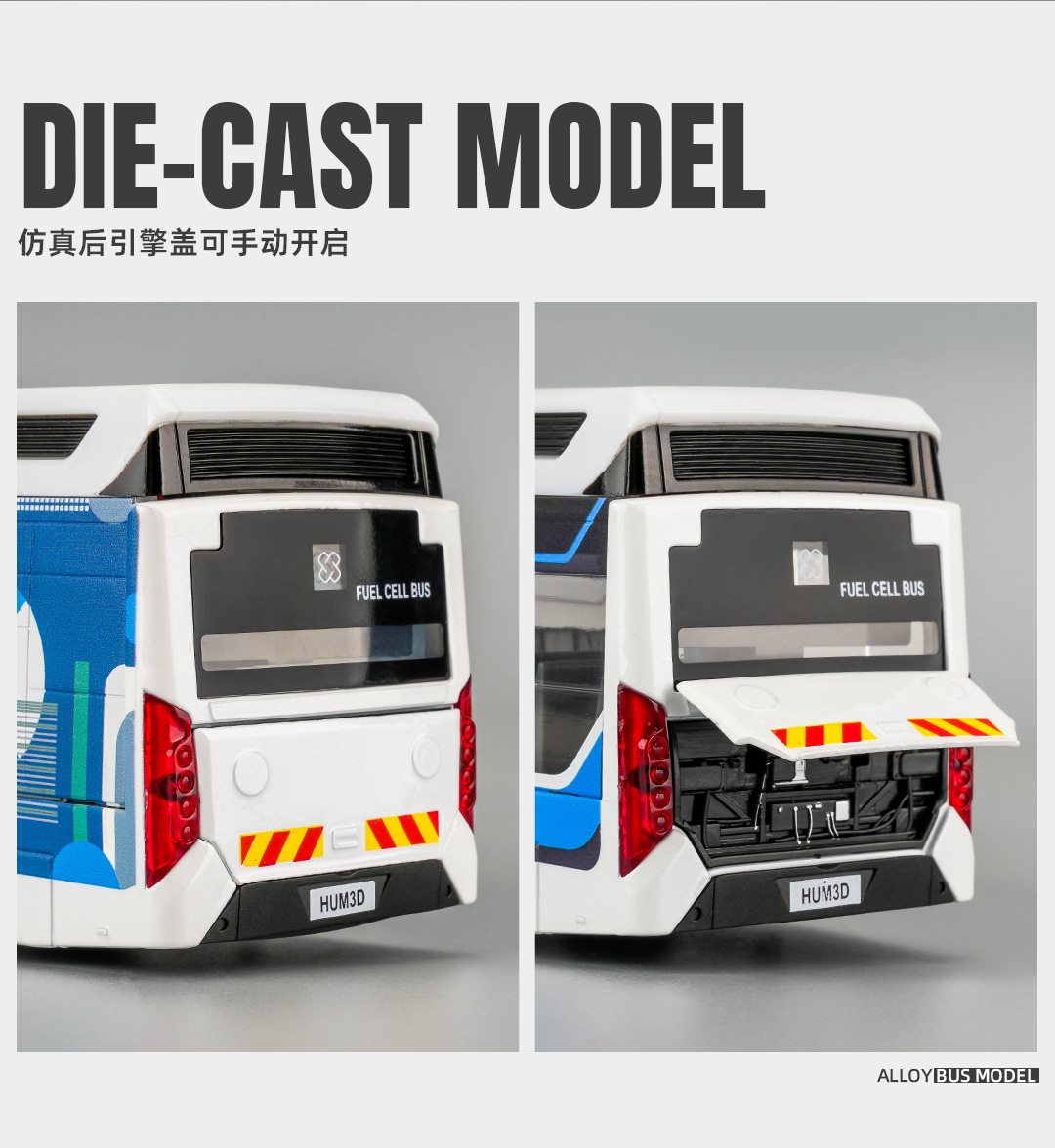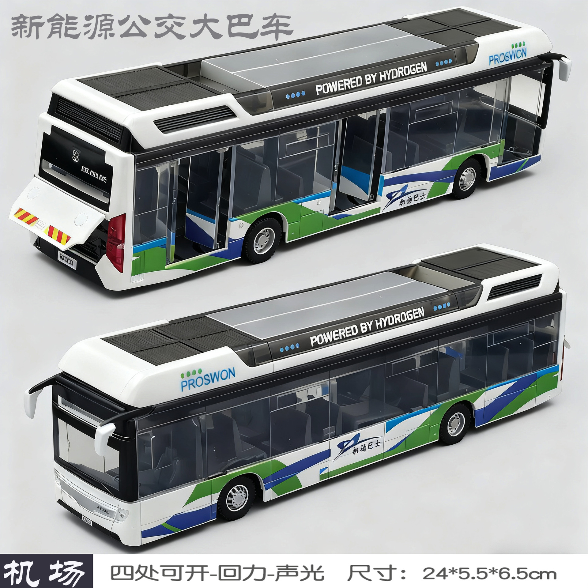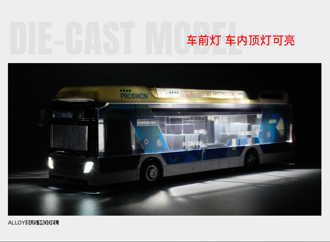 宝思仑合金大巴车模型新能源公交车回力声光玩具巴士车客车运输车