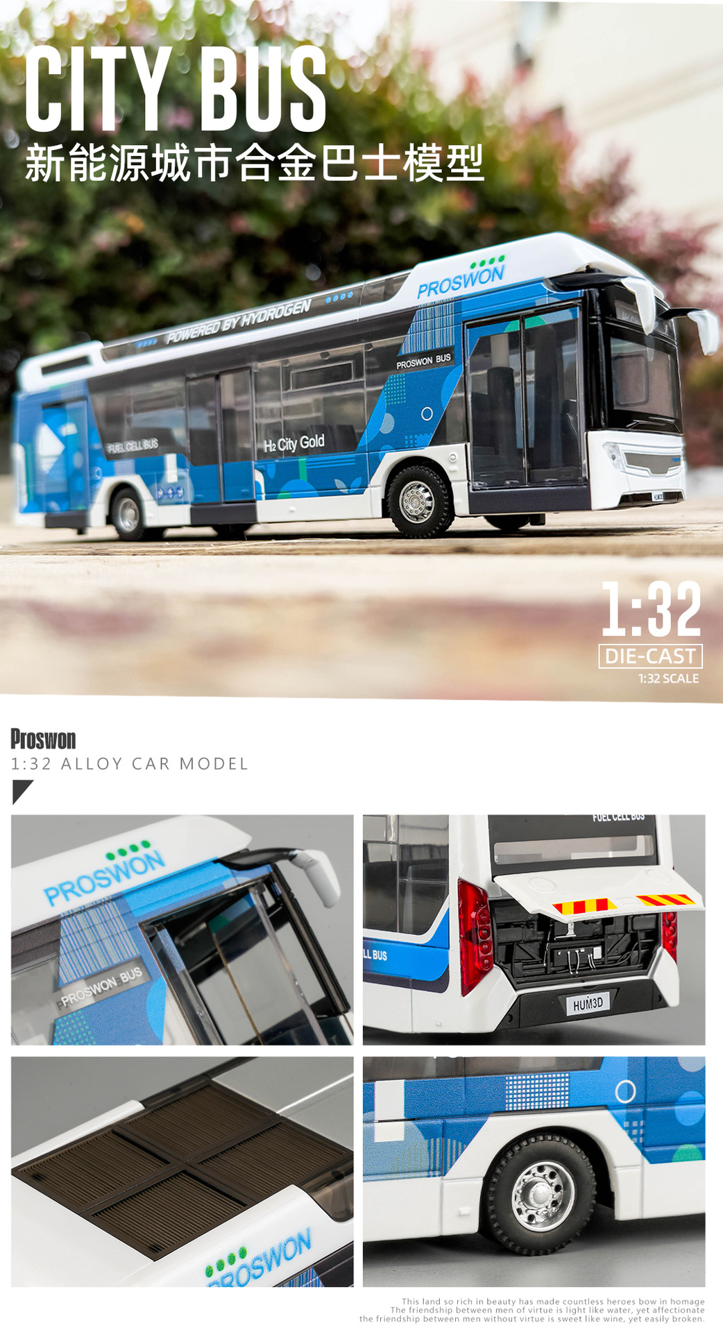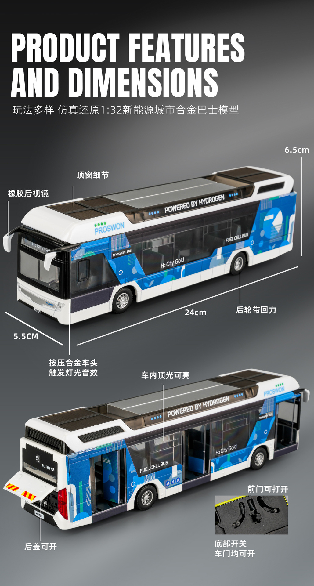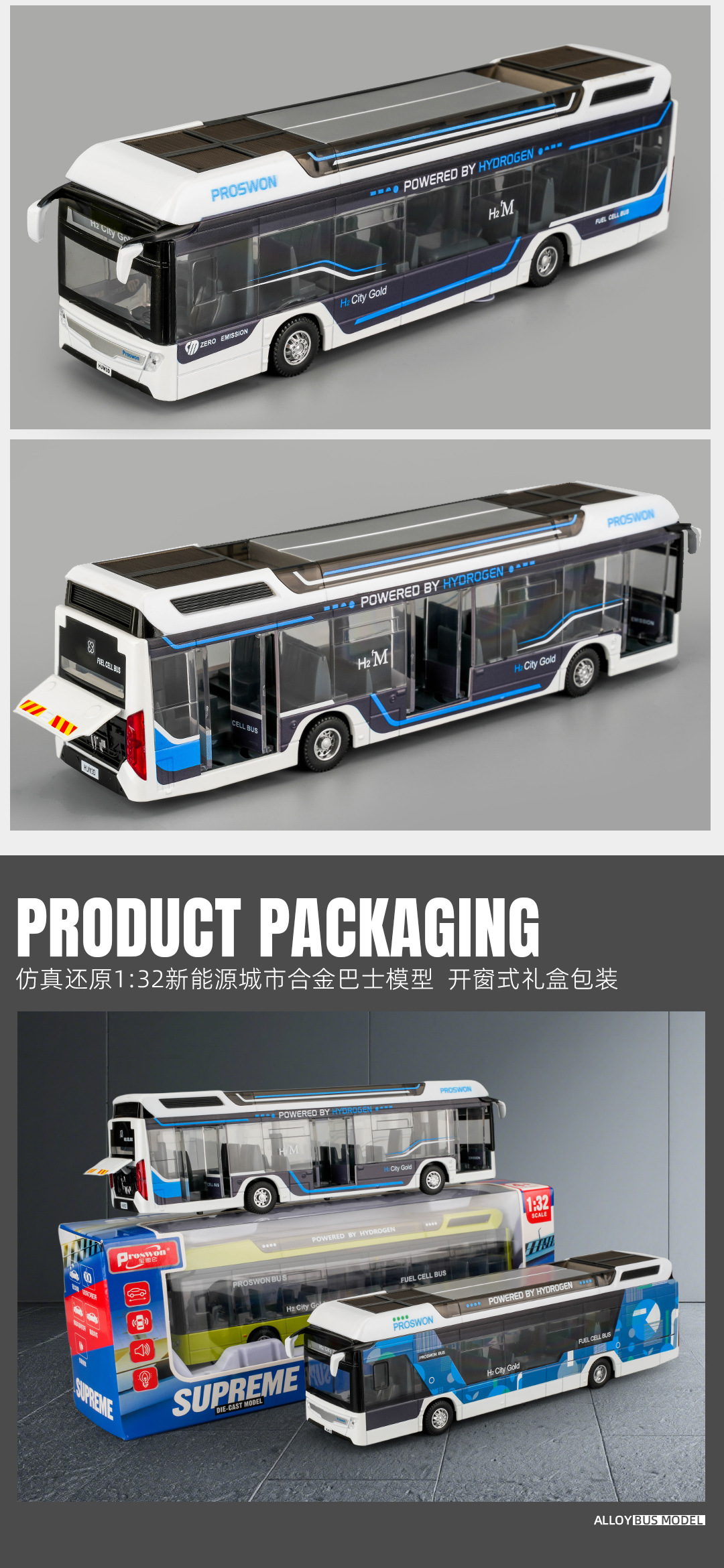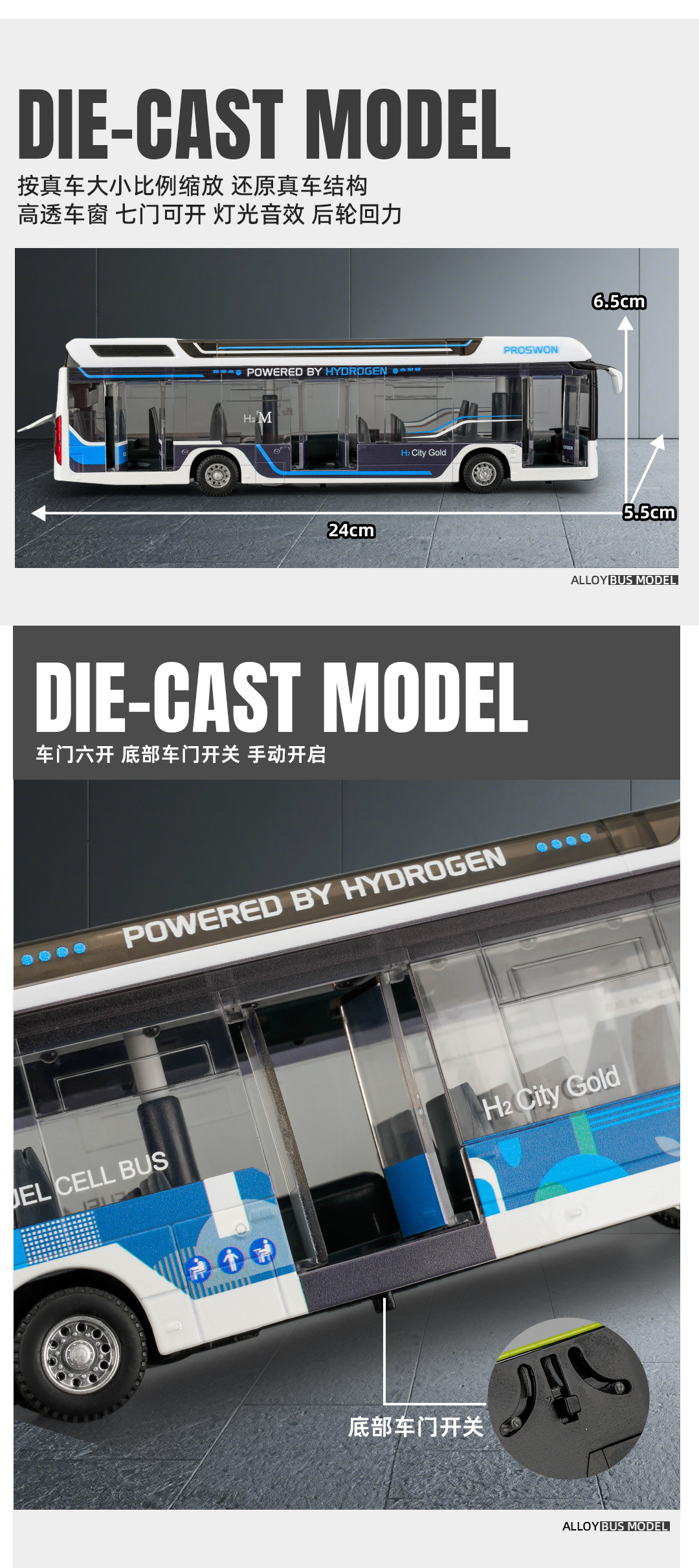 宝思仑合金大巴车模型新能源公交车回力声光玩具巴士车客车运输车