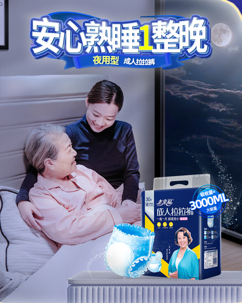 老来福夜用型成人拉拉裤老人用尿不湿加厚老年人内裤式纸尿裤男女