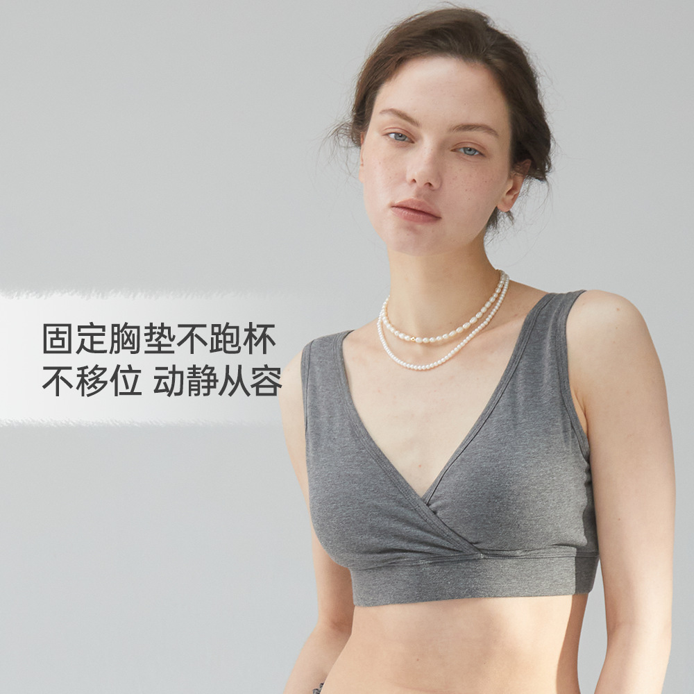 哺乳内衣聚拢无钢圈罩杯一体孕妇内衣防下垂产后背心喂奶睡眠文胸