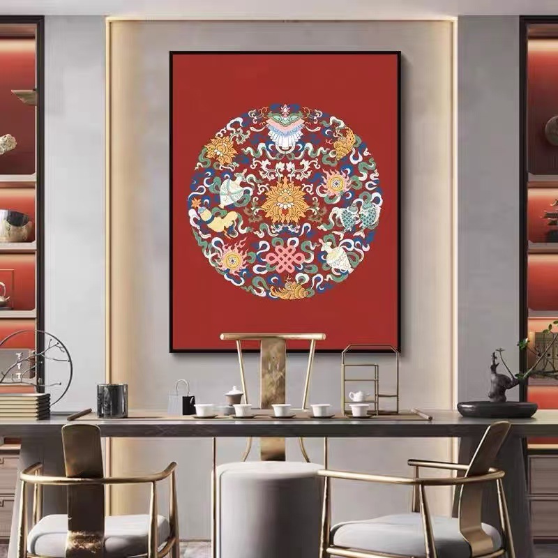 中国风红色吉祥客厅装饰画抽象拼色玄关过道挂画