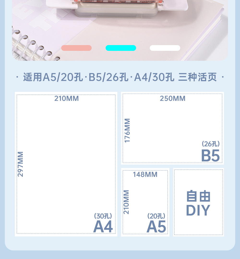 99h0透明打孔机26孔30孔活页装订打孔器A4B5打洞手工