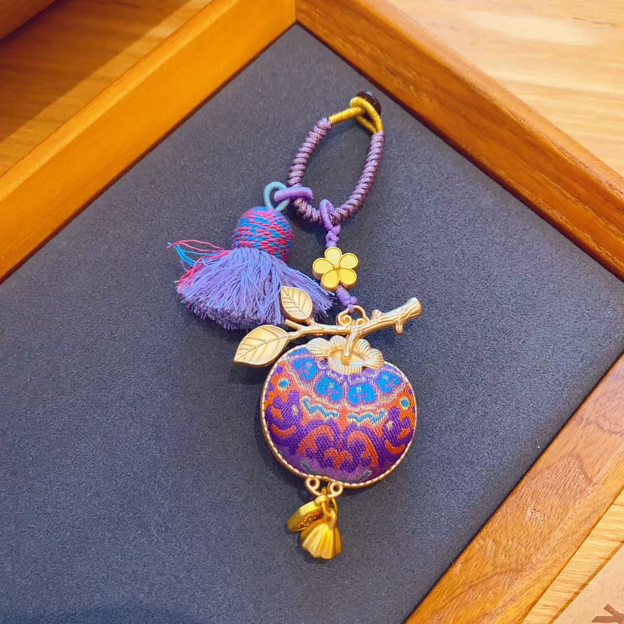 【成品】紫八达运名家非遗宋锦葫芦挂件/包挂/车挂双面招财猫吊坠