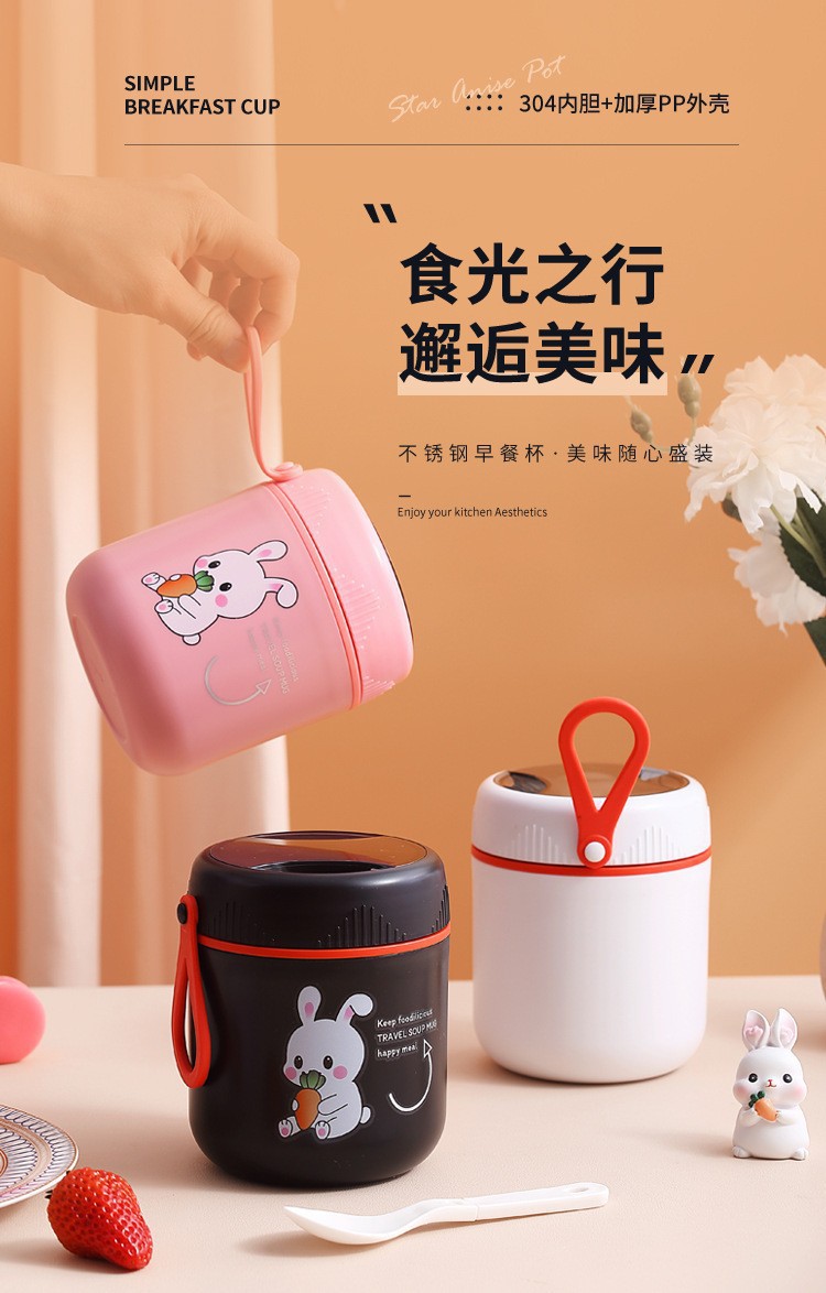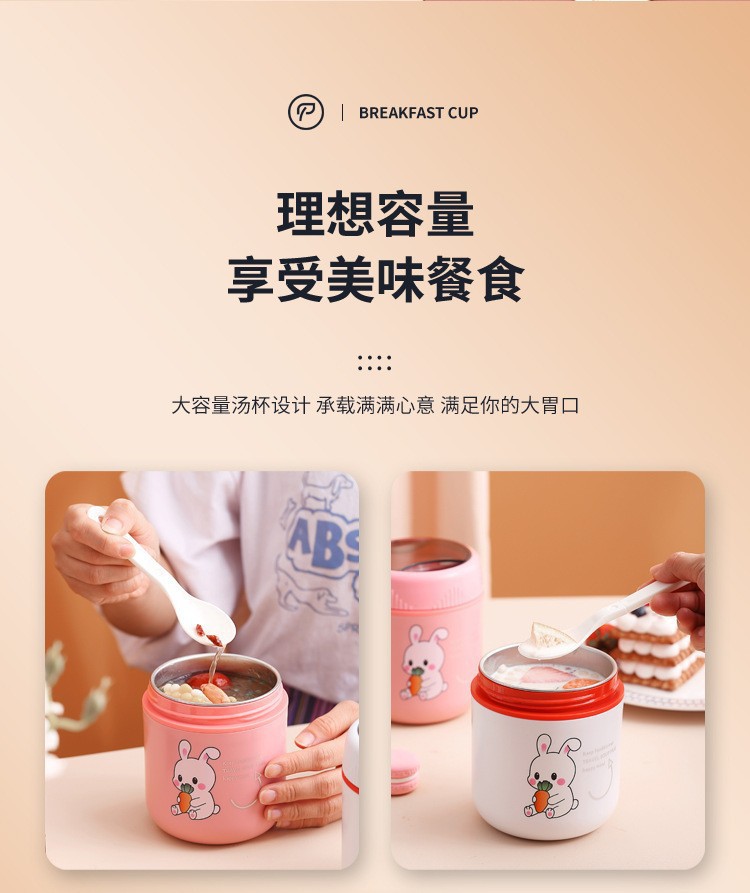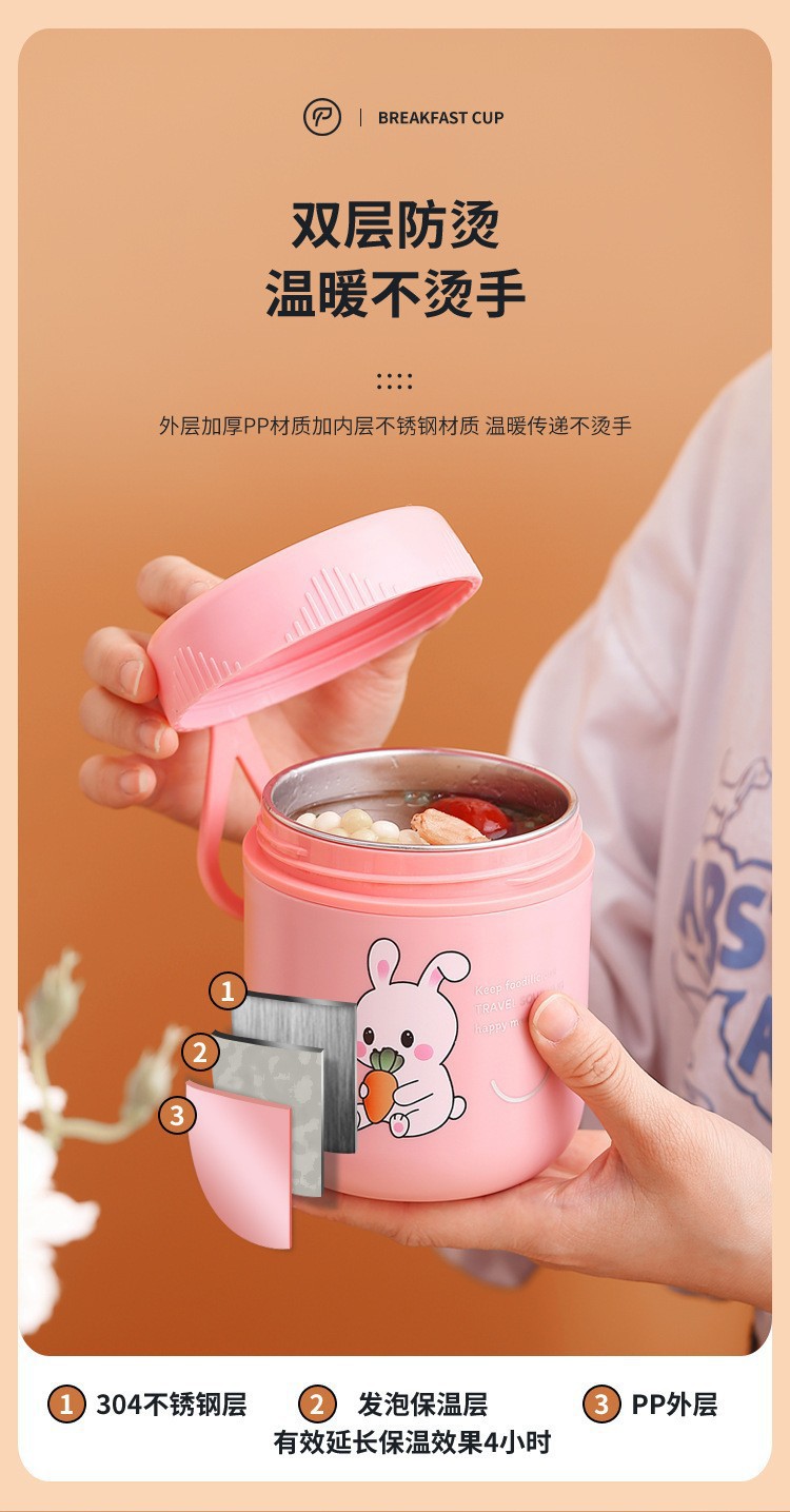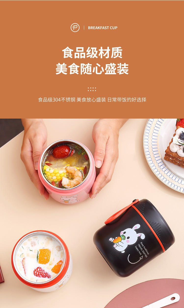 304不锈钢保温杯女高颜值上班族家用学生早餐杯餐具勺子保温饭盒