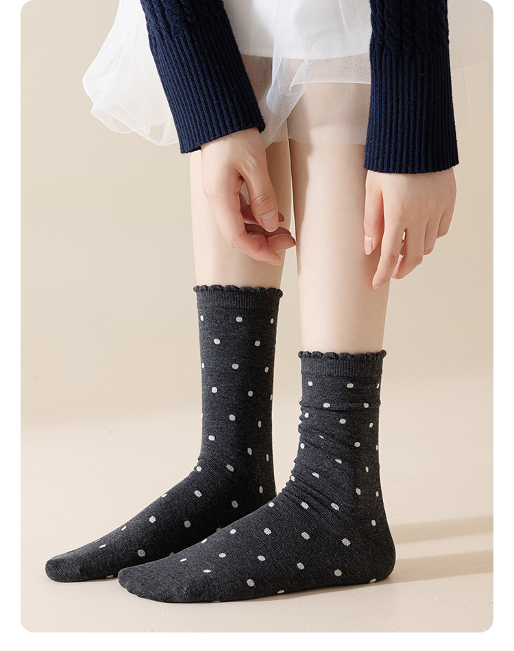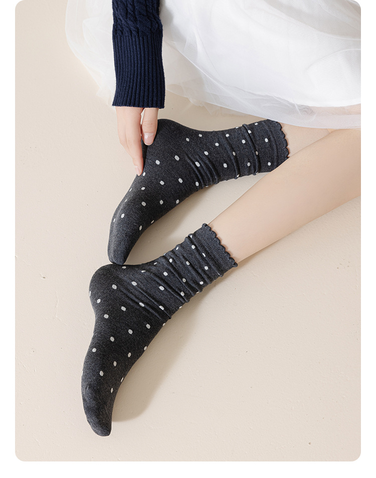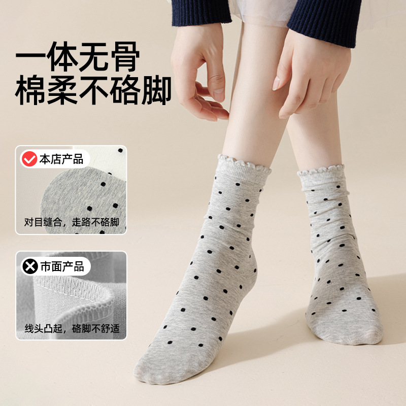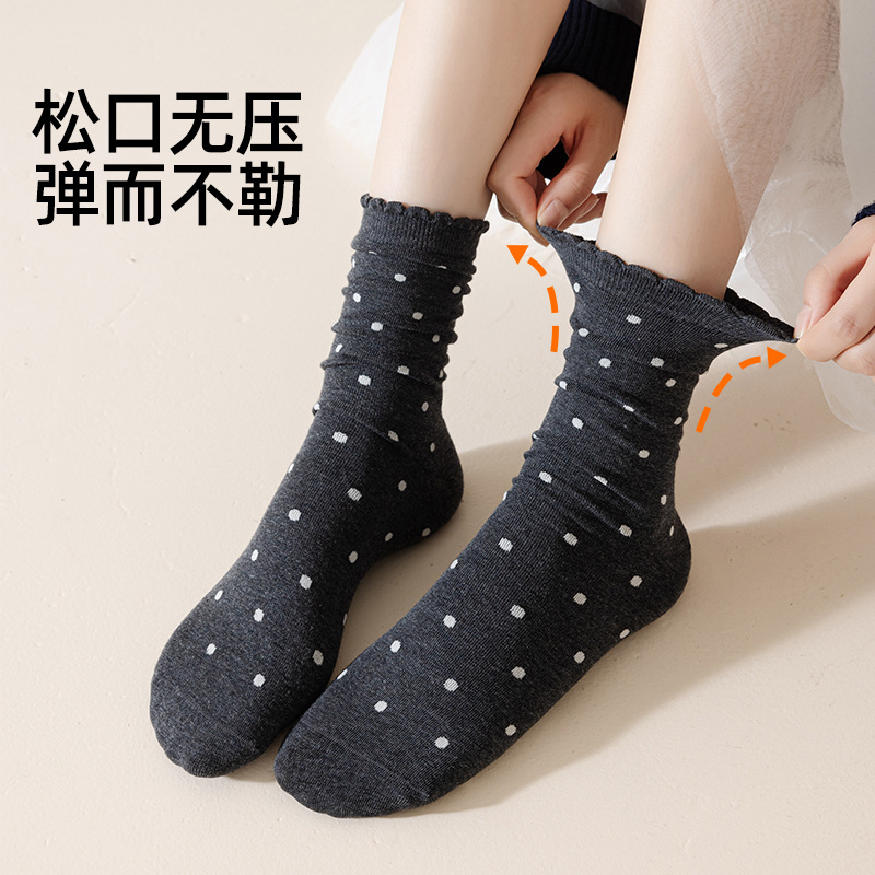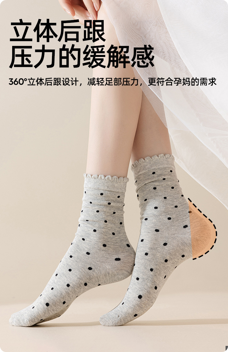 婧麒产妇月子袜春秋款松口不勒脚孕妇袜子防风波点中筒棉袜女秋冬
