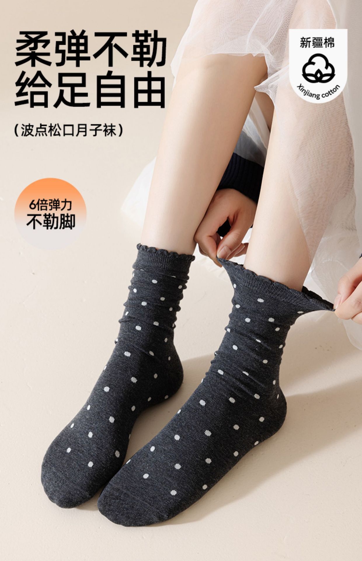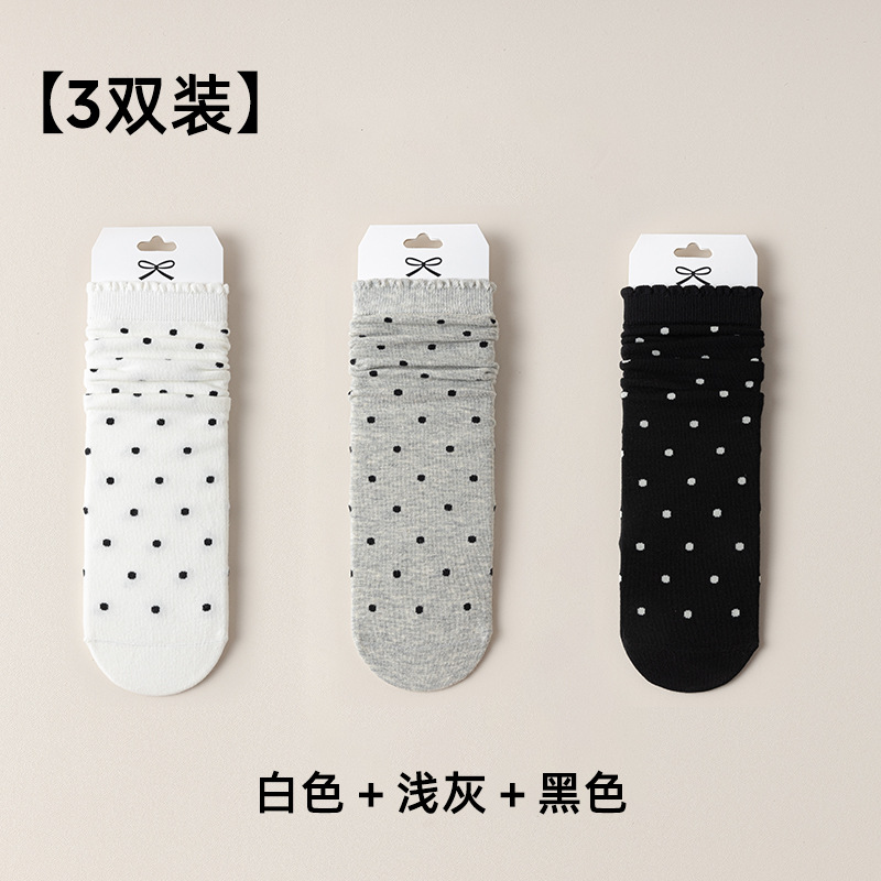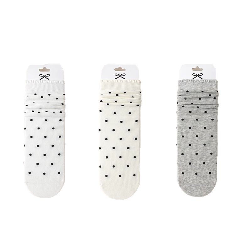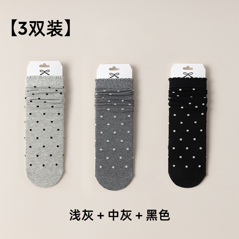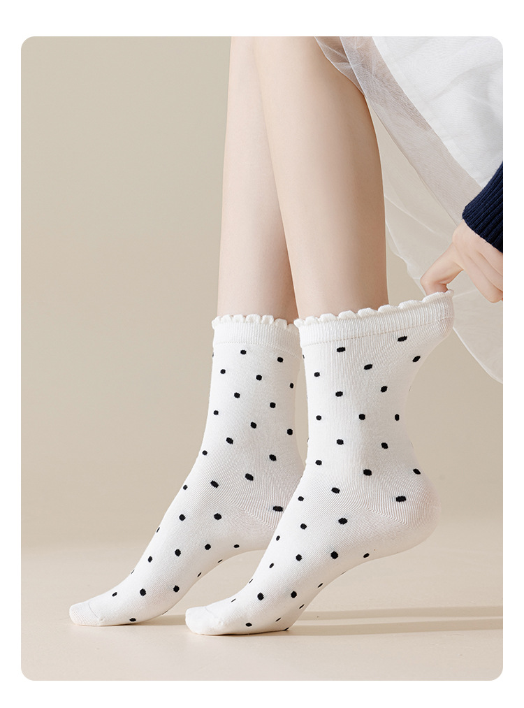 婧麒产妇月子袜春秋款松口不勒脚孕妇袜子防风波点中筒棉袜女秋冬