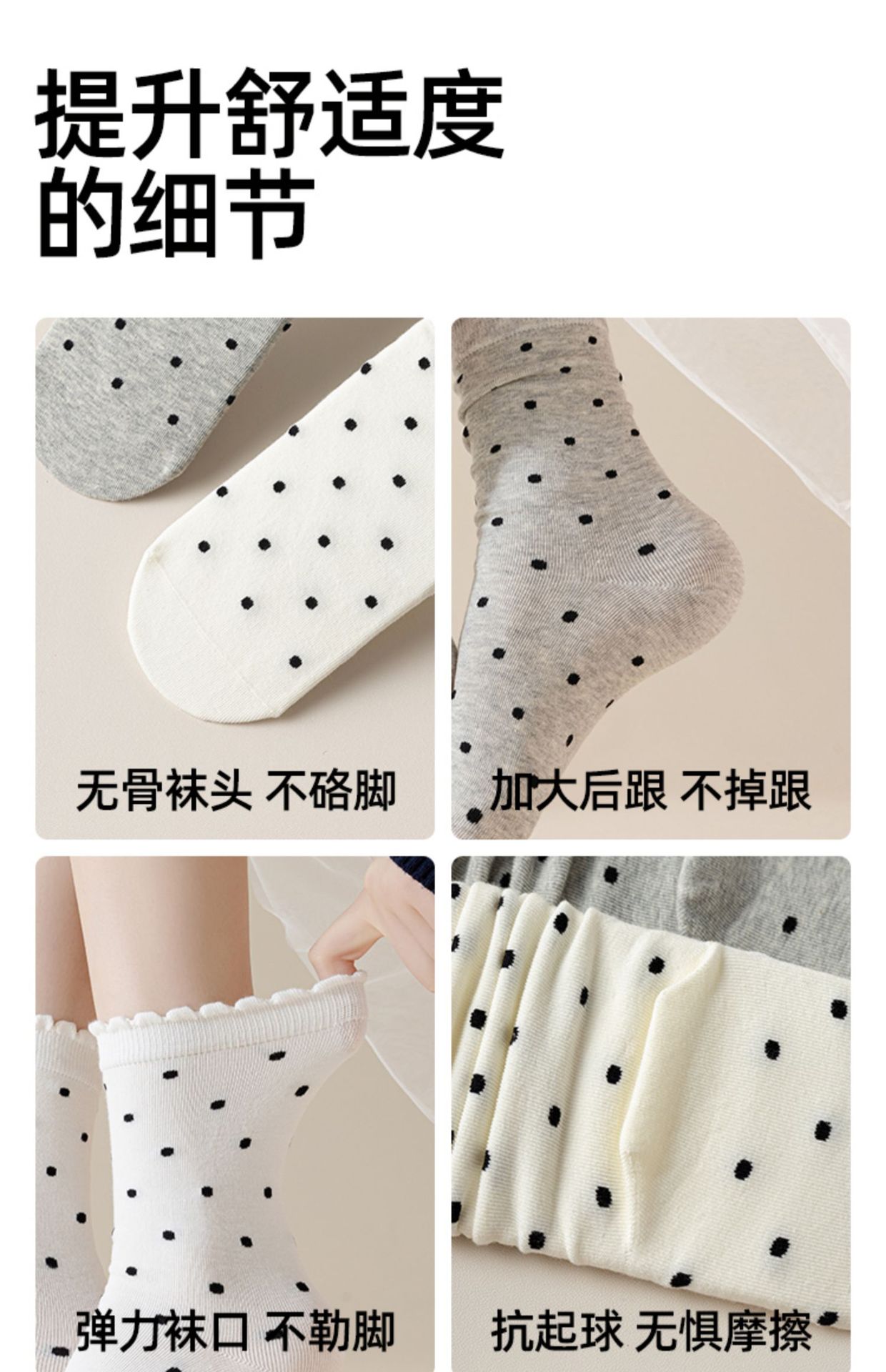 - 【5双装】奶白*3+浅灰*2