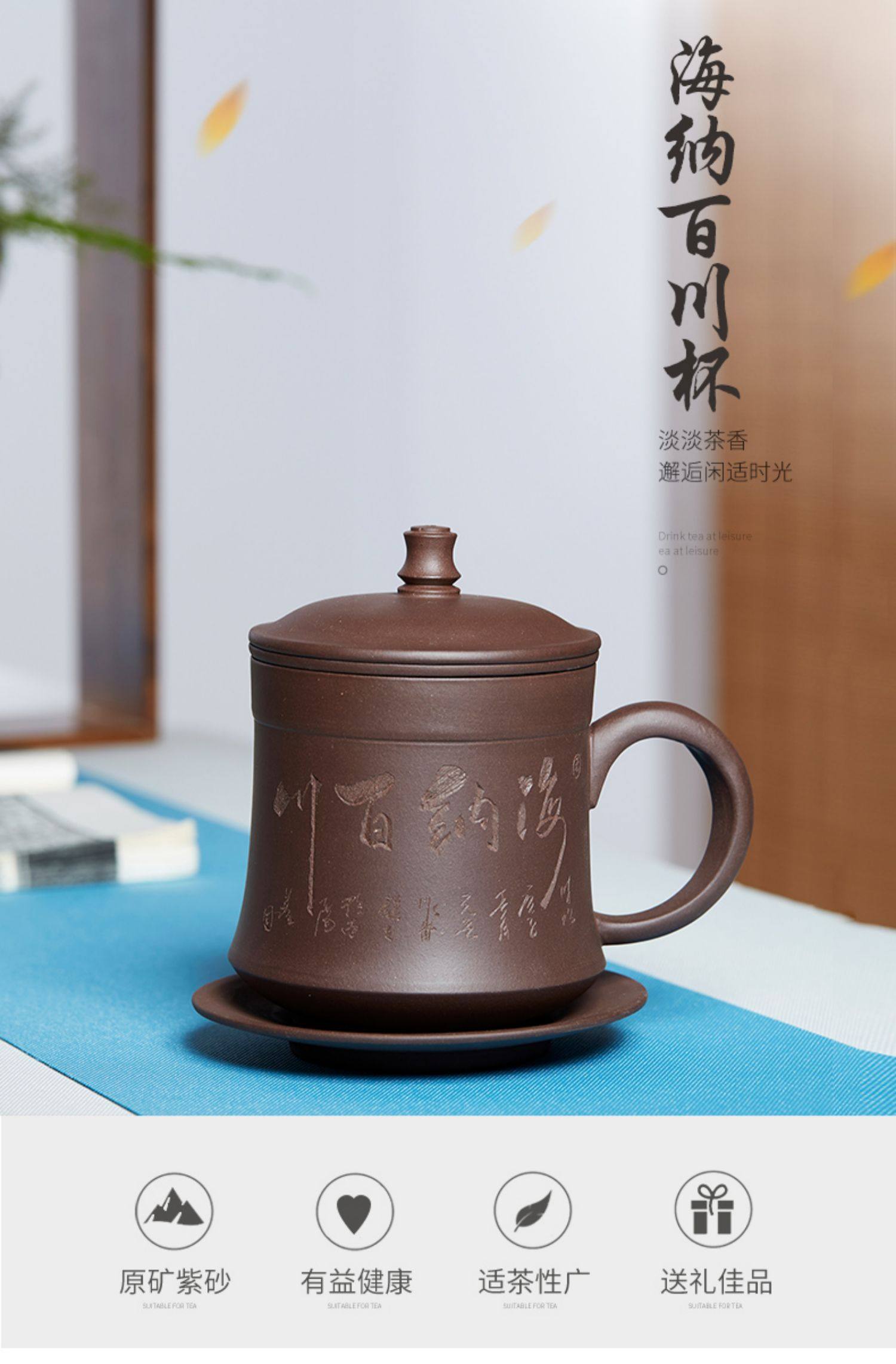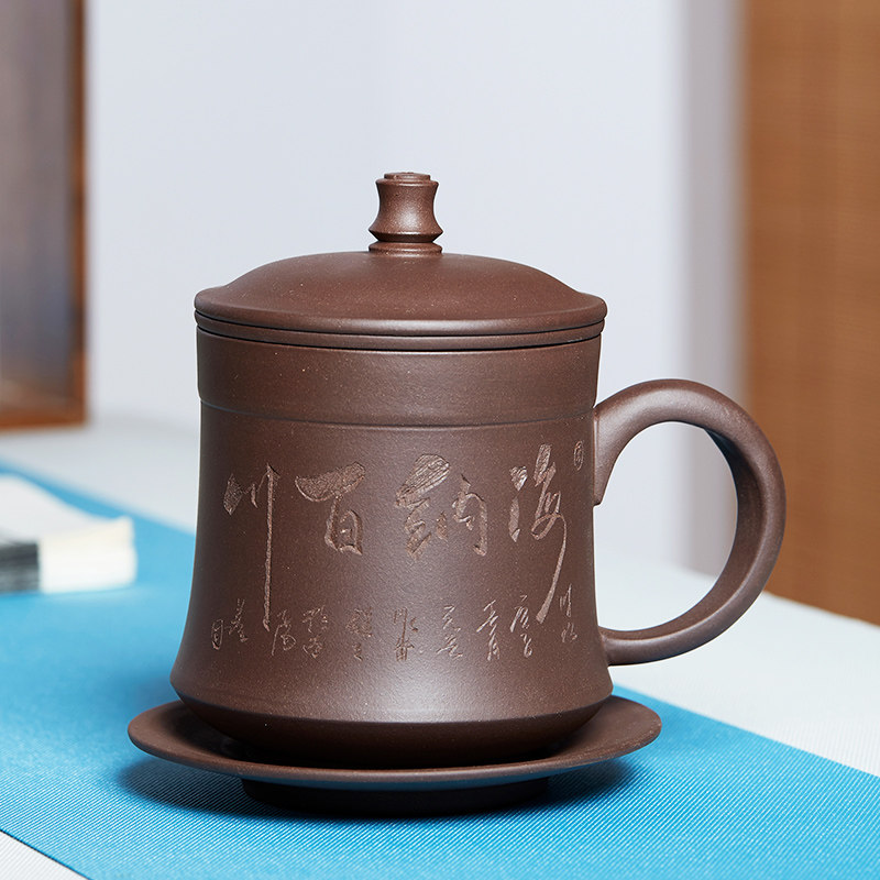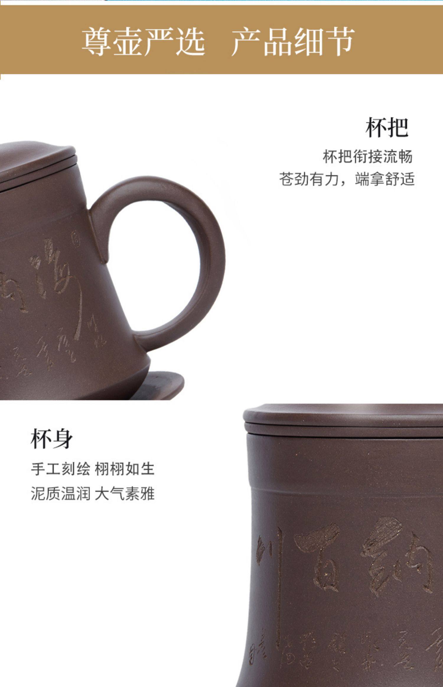 紫砂泡茶杯男士过滤内胆盖杯茶水分离办公杯大容量带把水杯子
