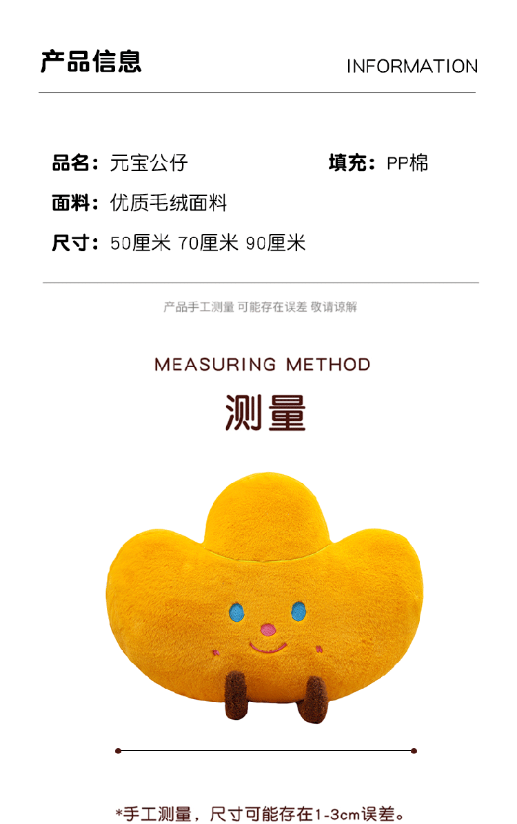 金元宝抱枕玩偶睡觉公仔沙发床上毛绒玩具靠垫招财进宝新年礼物