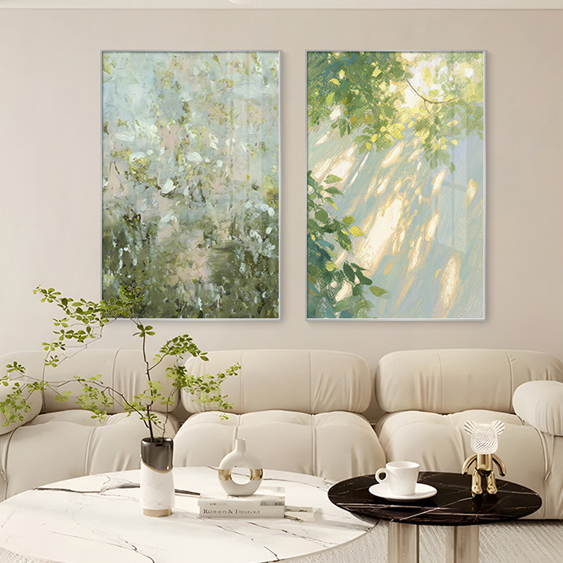 客厅沙发装饰画酒店玄关挂画卧室壁画绿色抽象高级感风景