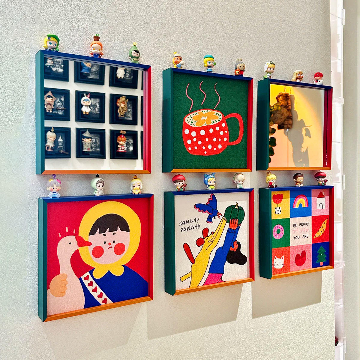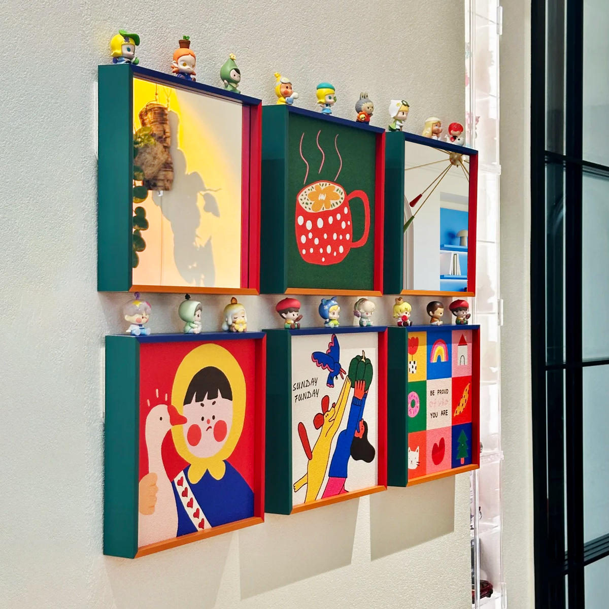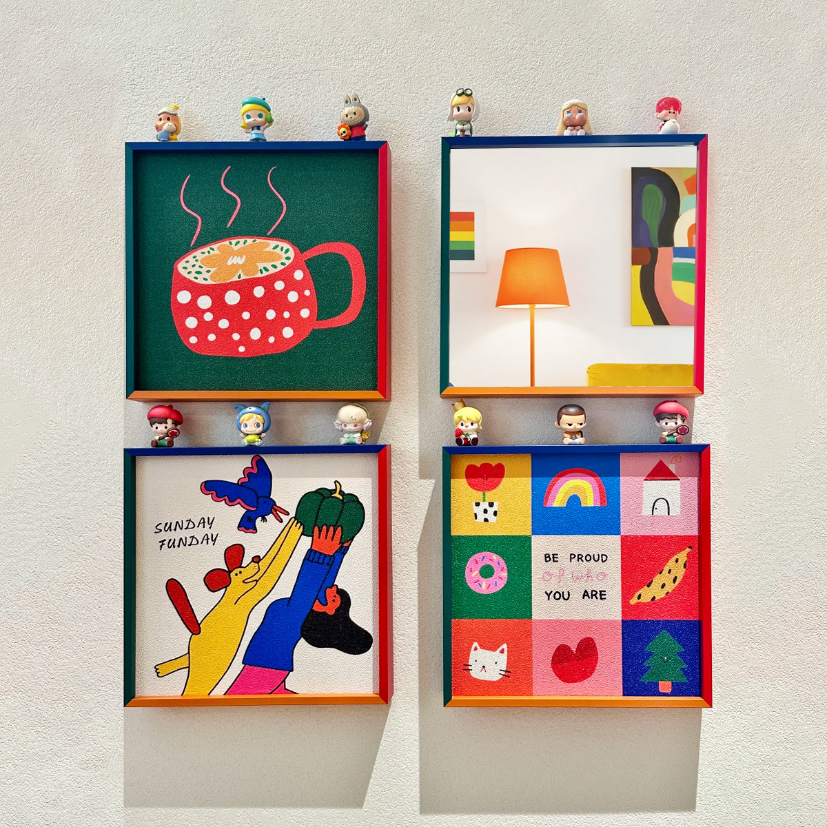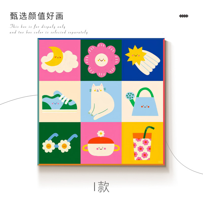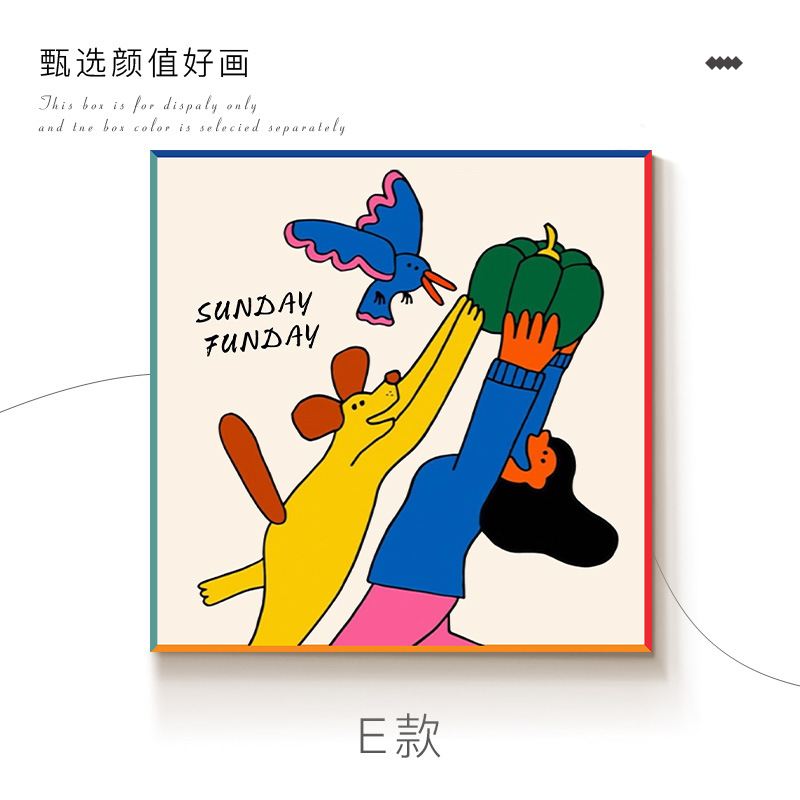 ins多巴胺入户玄关装饰画镜子画客厅沙发背景墙小众艺术卡通挂画