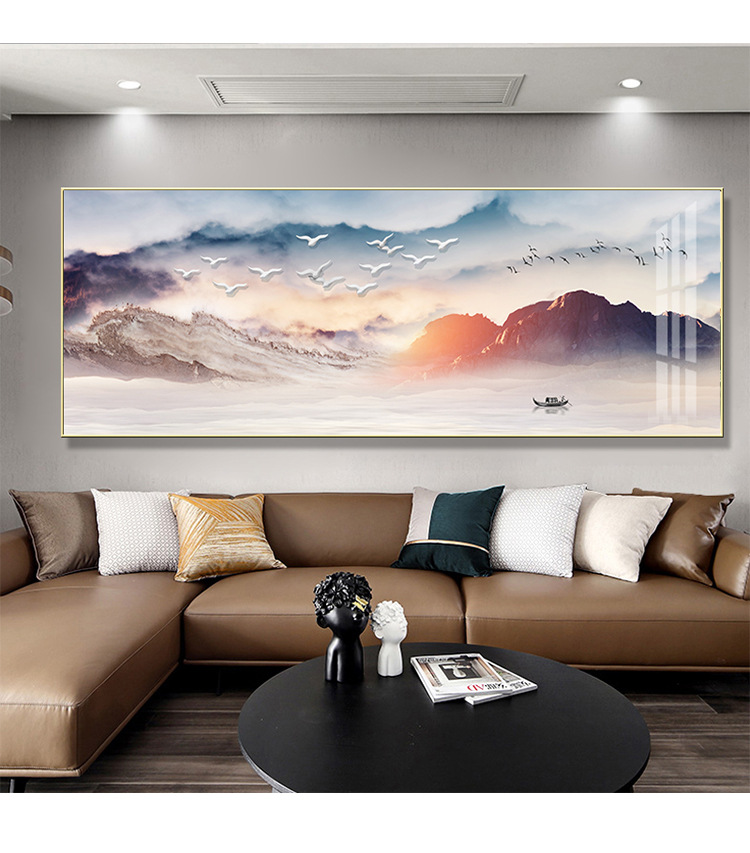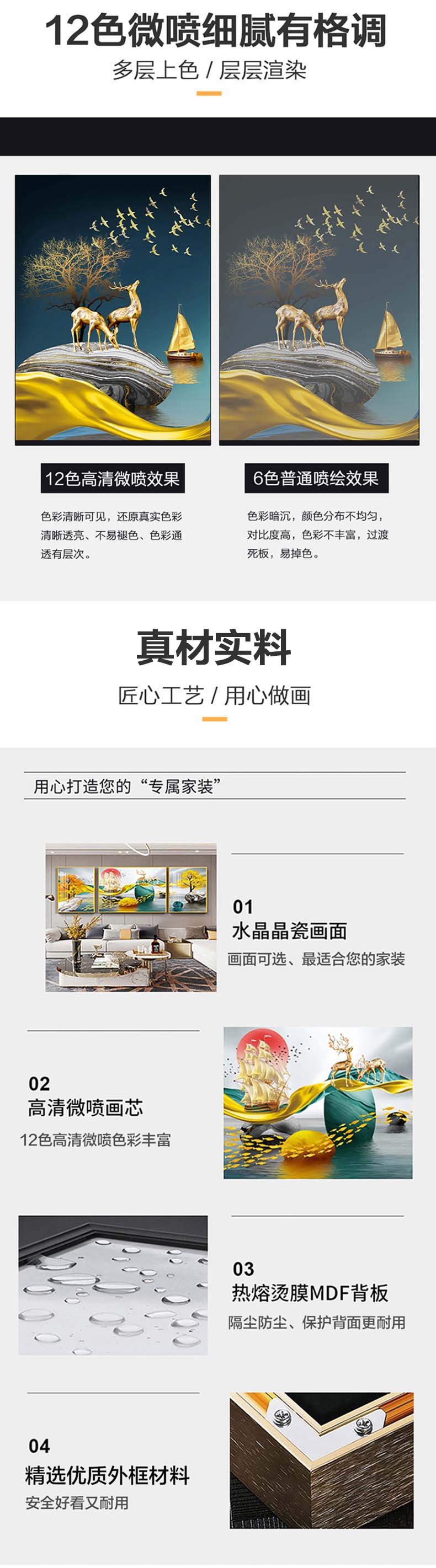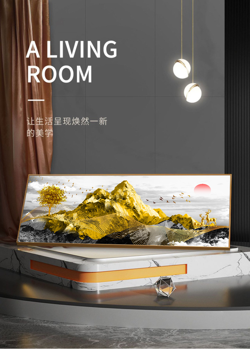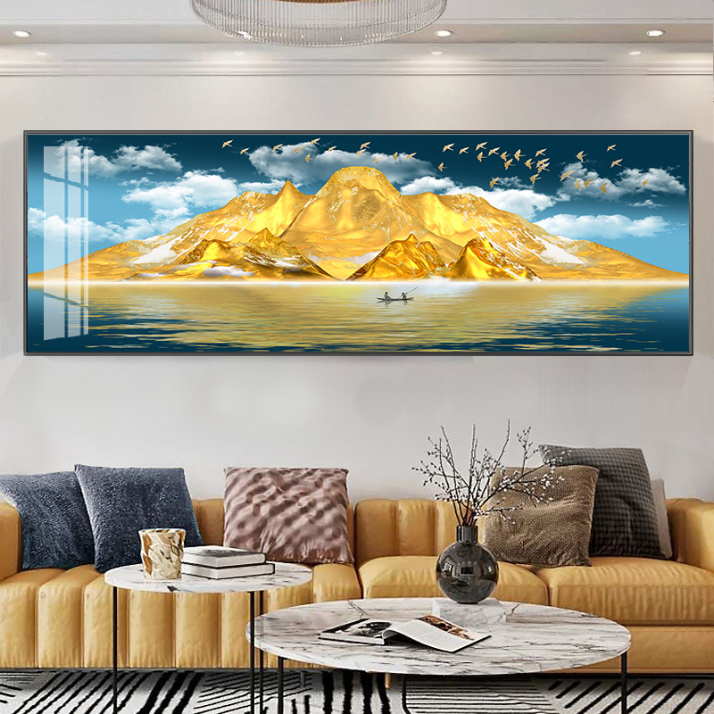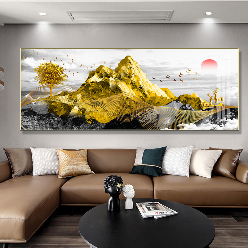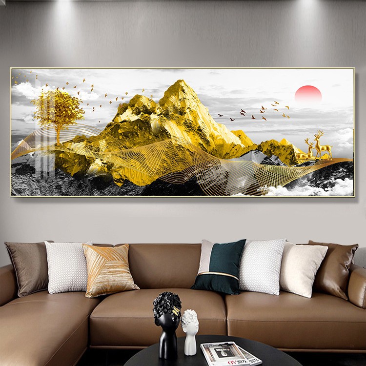 背靠金山客厅装饰画寓意好现代轻奢一整副沙发背景墙挂画高档壁画