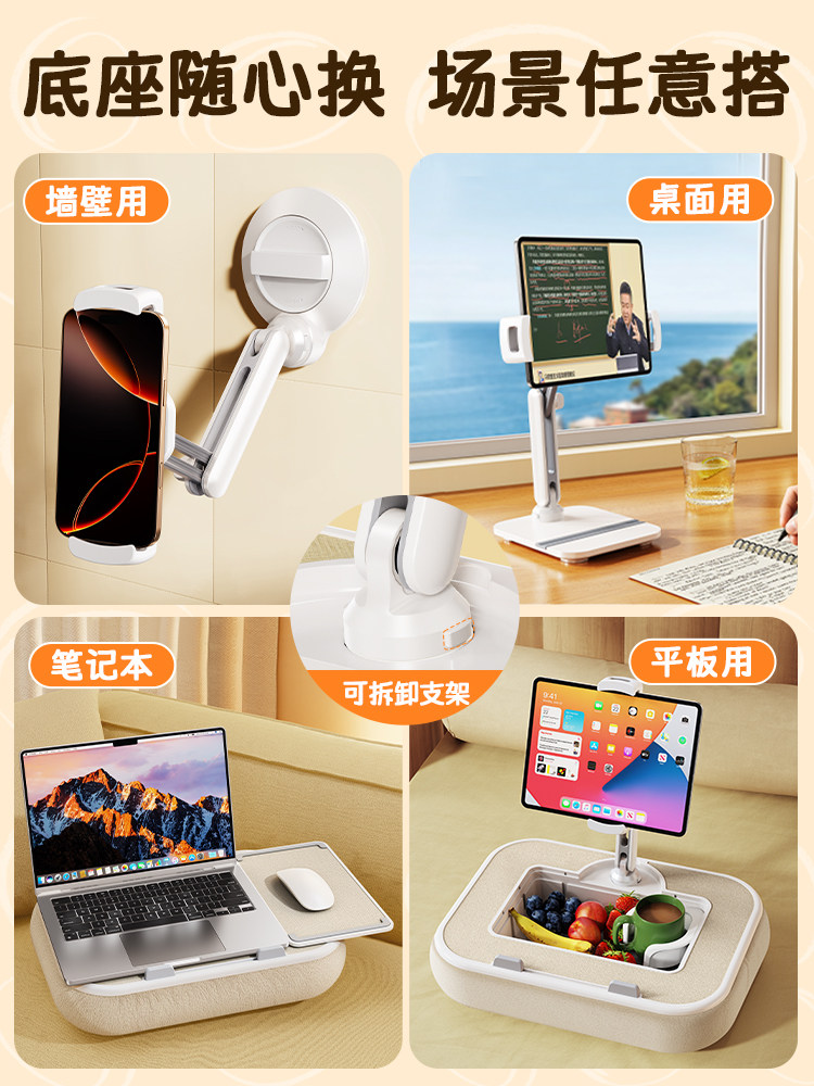 米白+吸盘+桌面底座【手机+平板+笔记本通用】双节臂