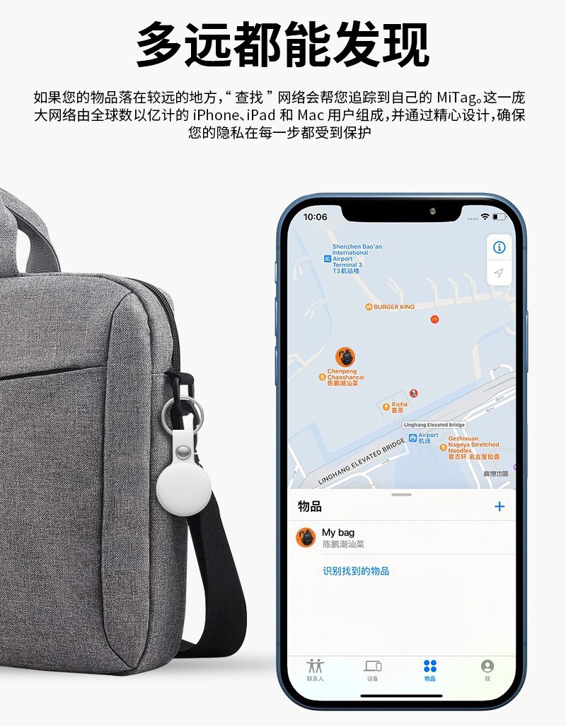 iosAirTag防丢器宠物狗猫咪自行车追踪定位器MiTag便携式智能