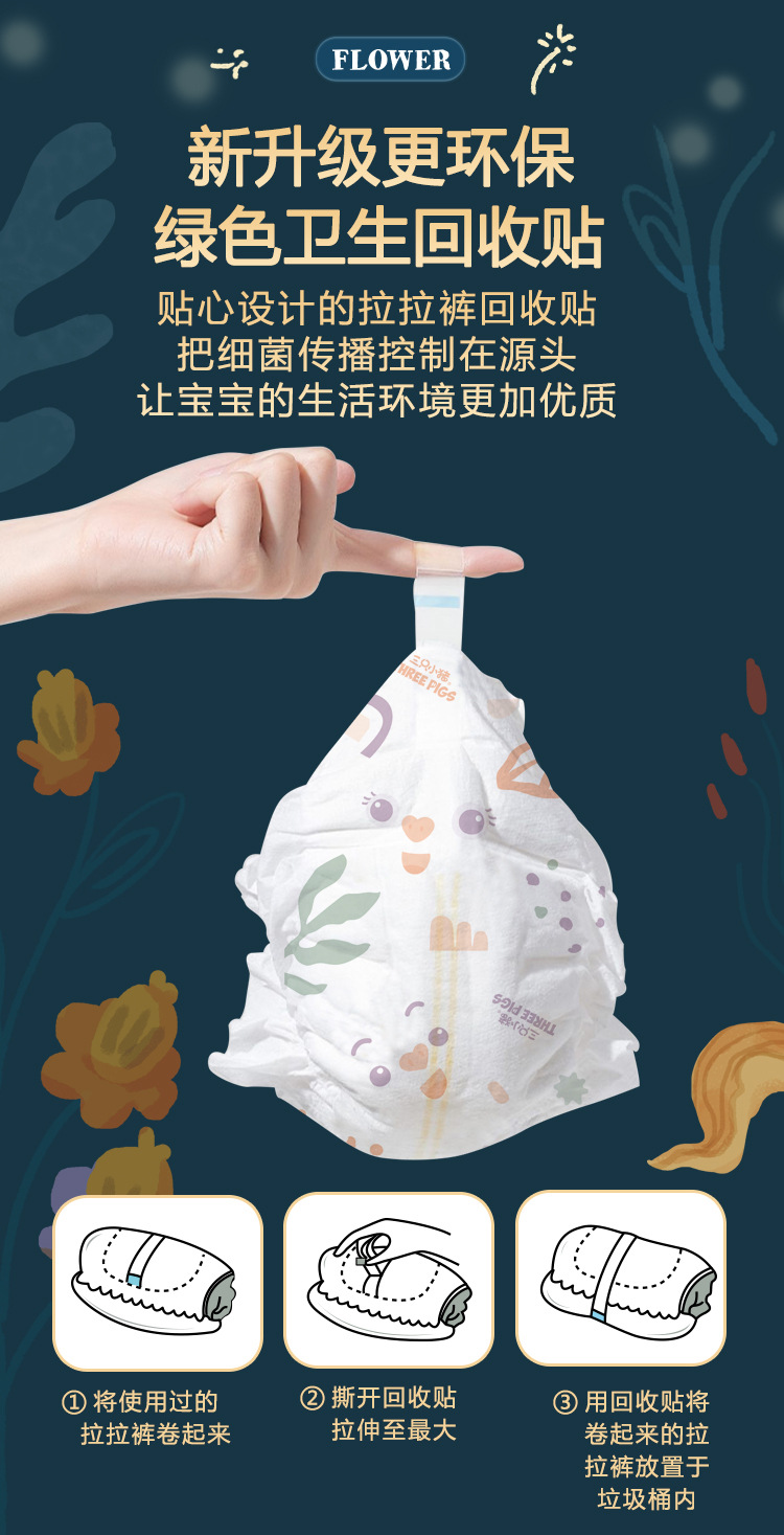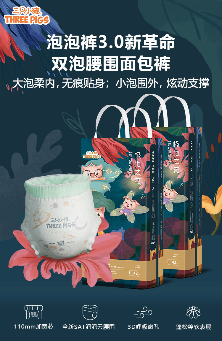 三只小猪极地之花系列亲肤泡泡裤纸尿裤大吸量全包臀拉拉裤