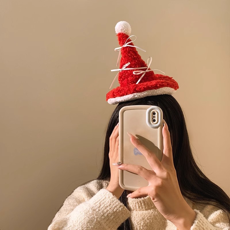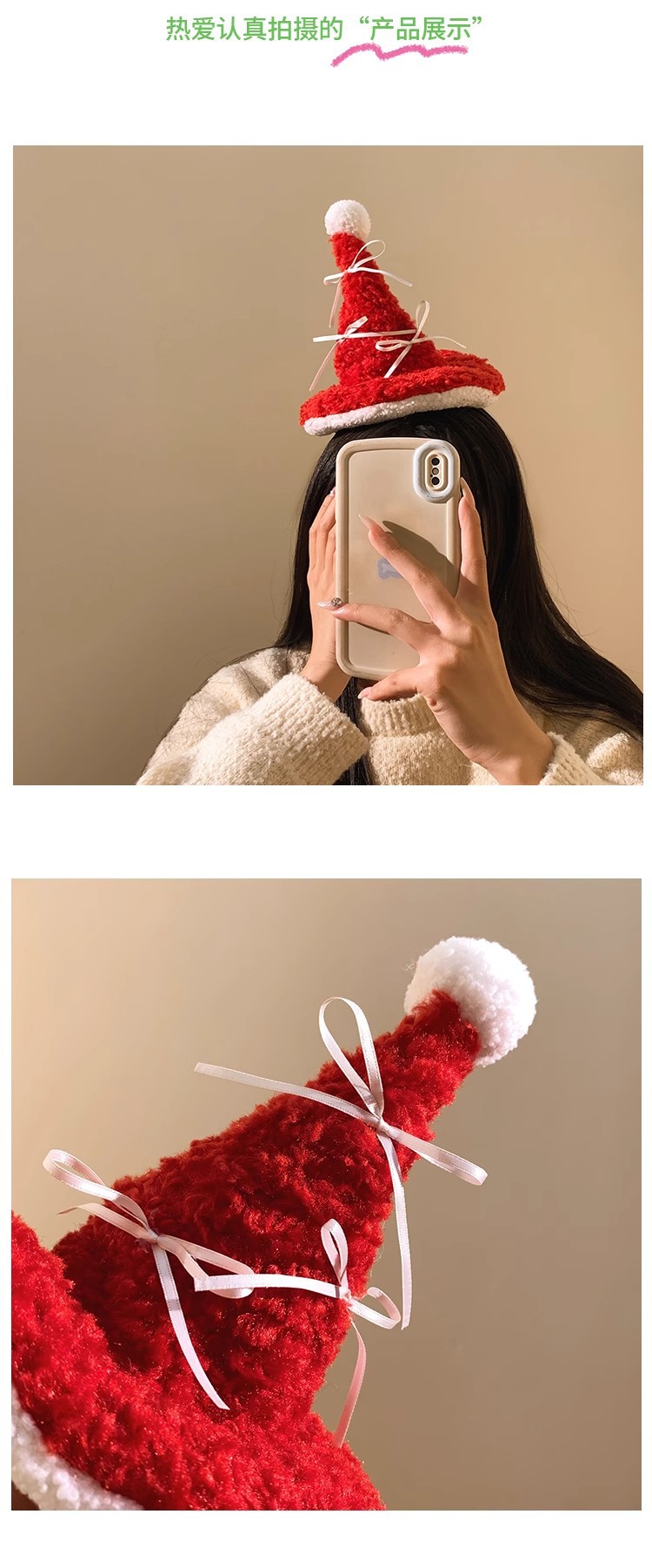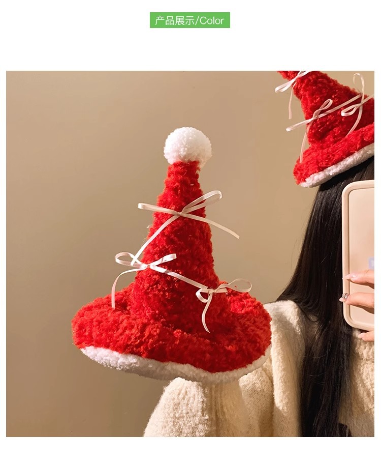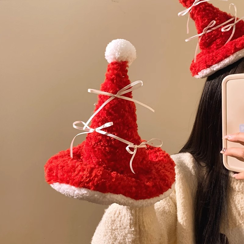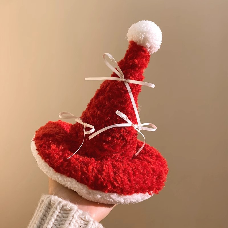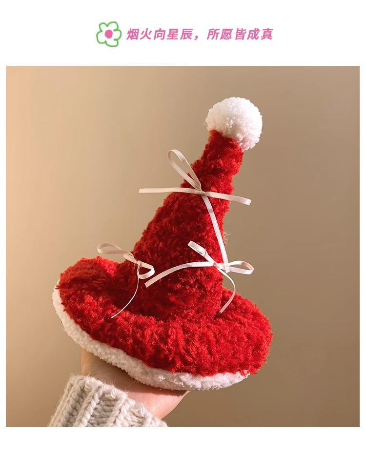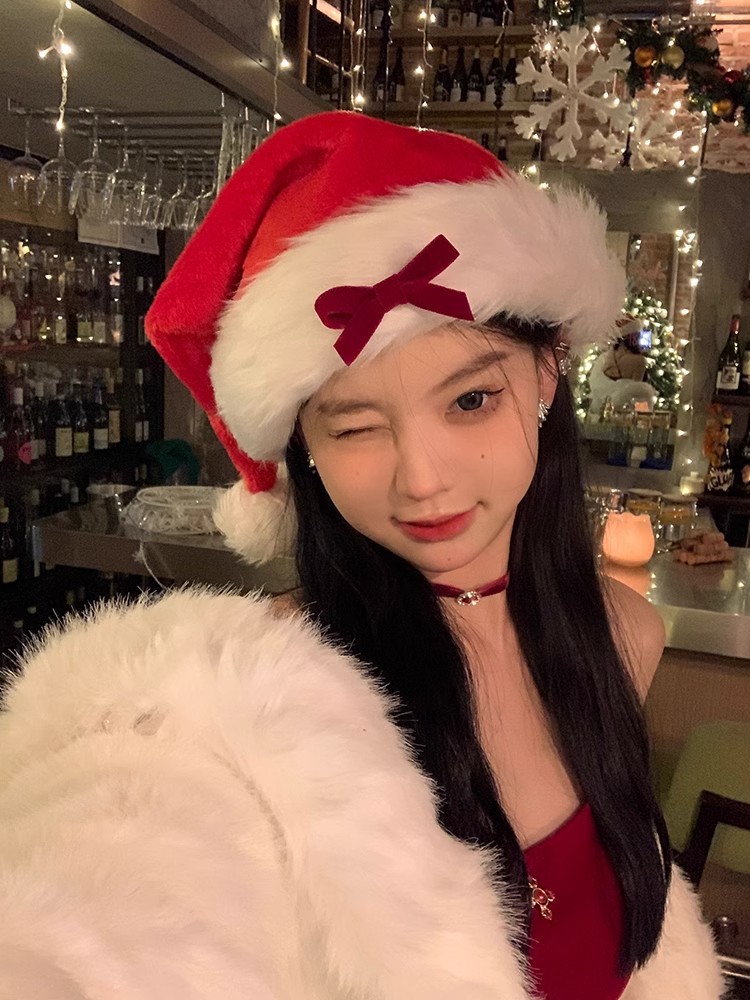 红色毛绒蝴蝶结圣诞帽发夹头饰圣诞节拍照氛围感立体帽子发饰发卡