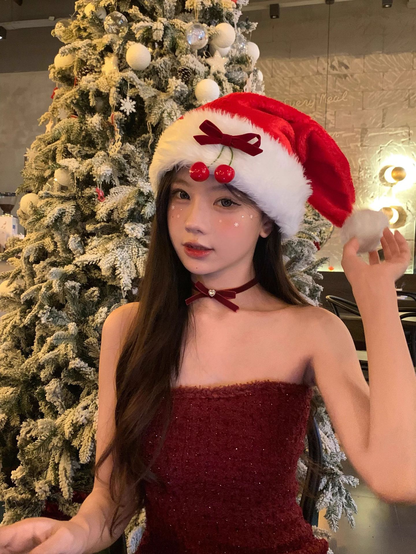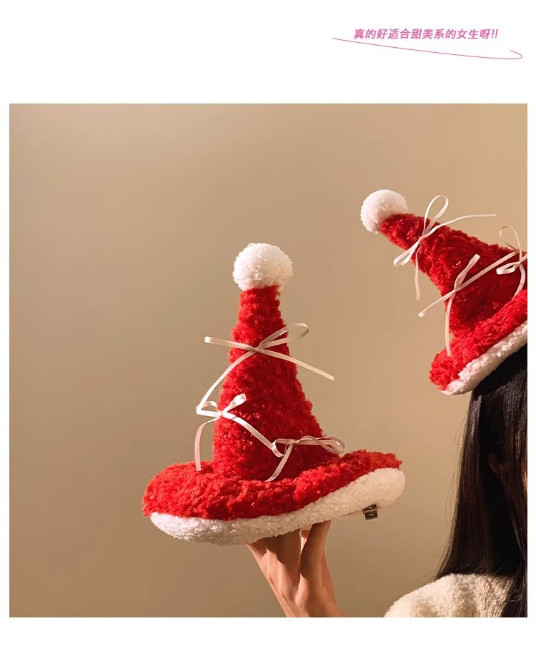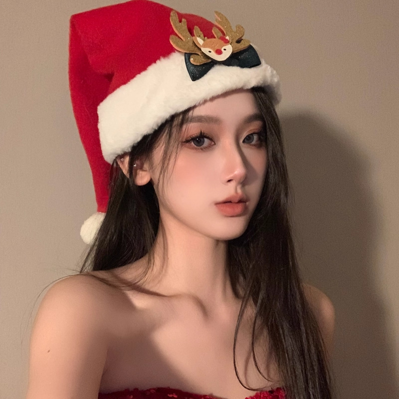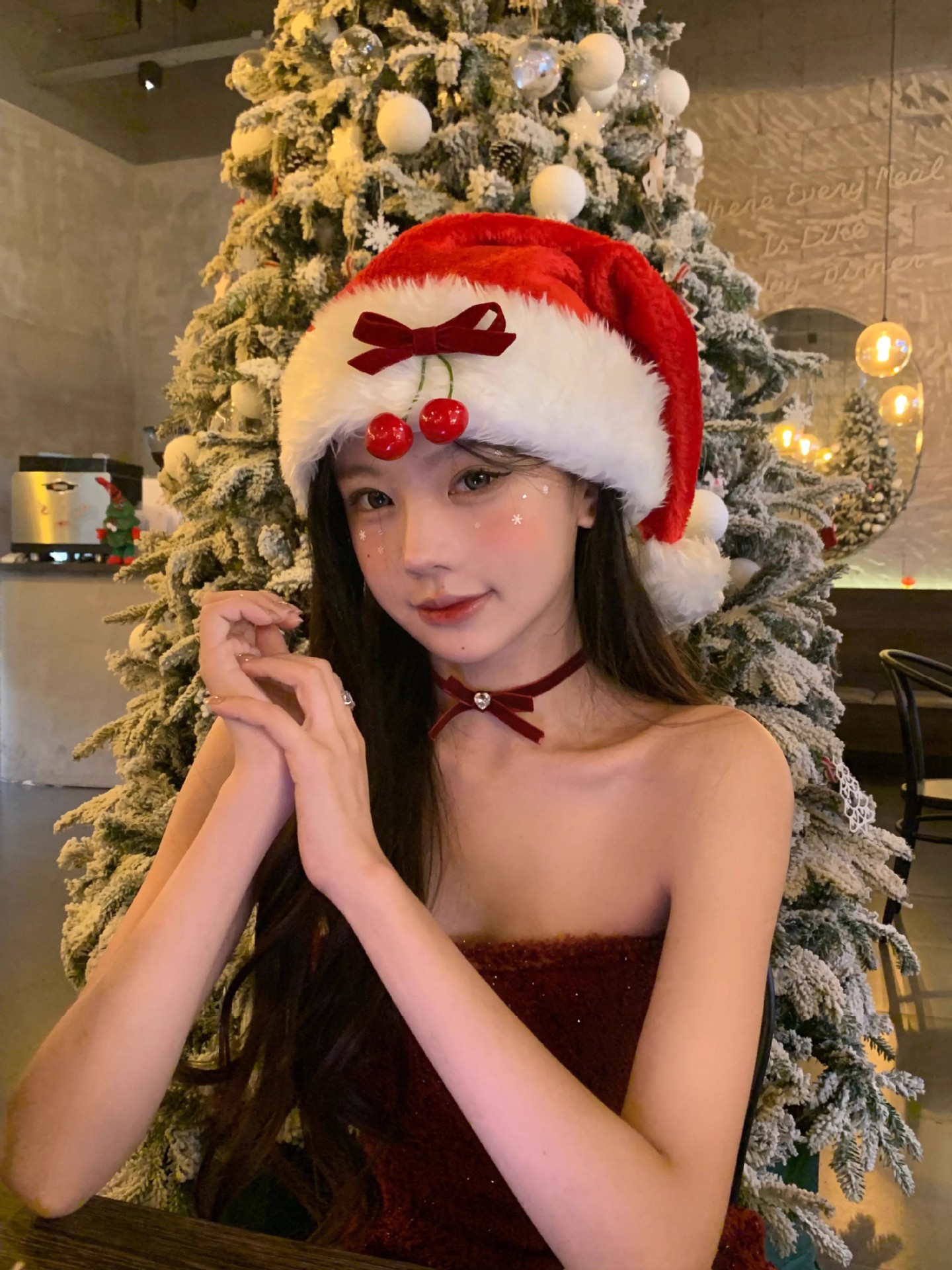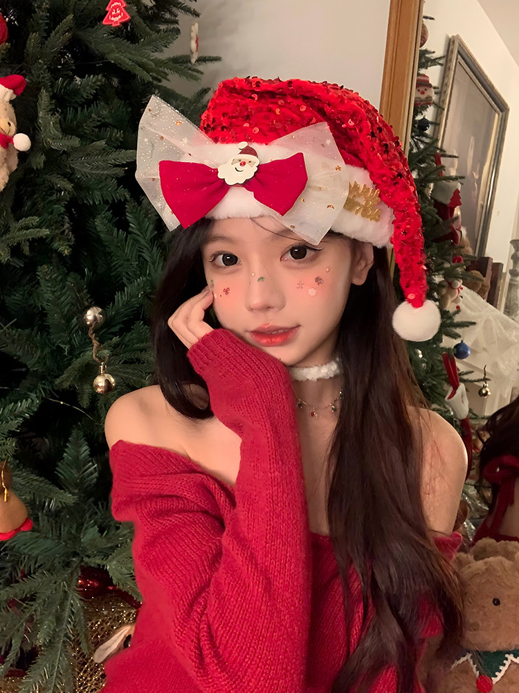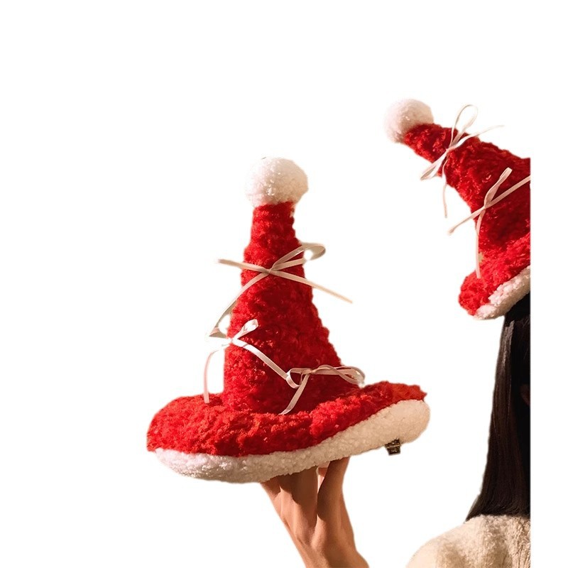 红色毛绒蝴蝶结圣诞帽发夹头饰圣诞节拍照氛围感立体帽子发饰发卡