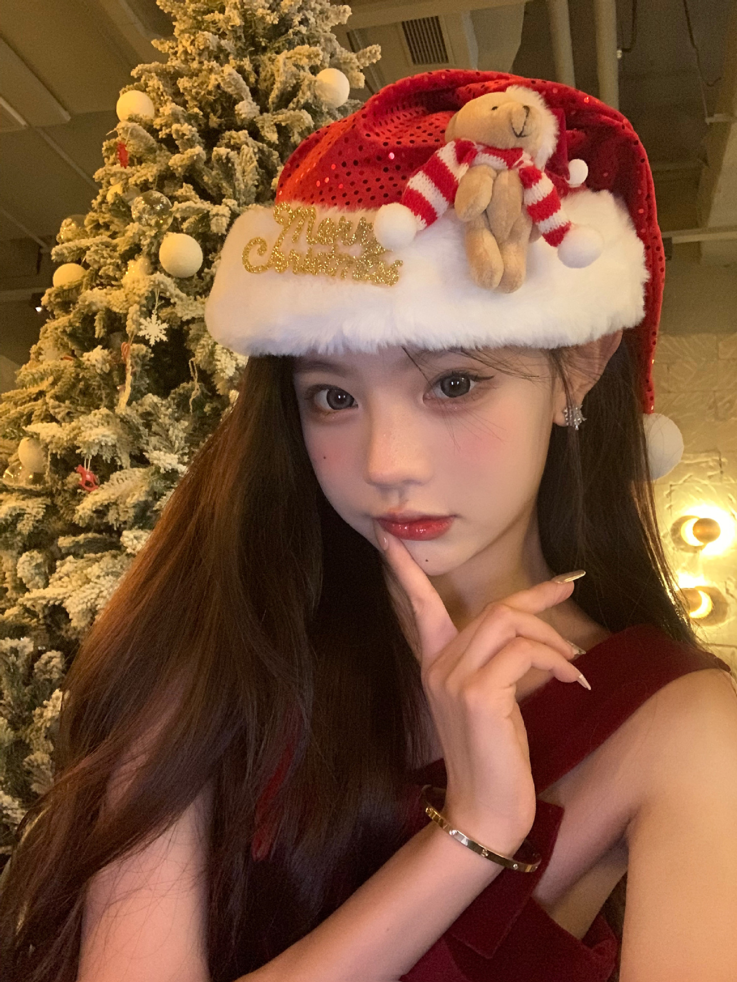 - 13#圣诞毛绒卡通圣诞帽#蝴蝶结小熊
