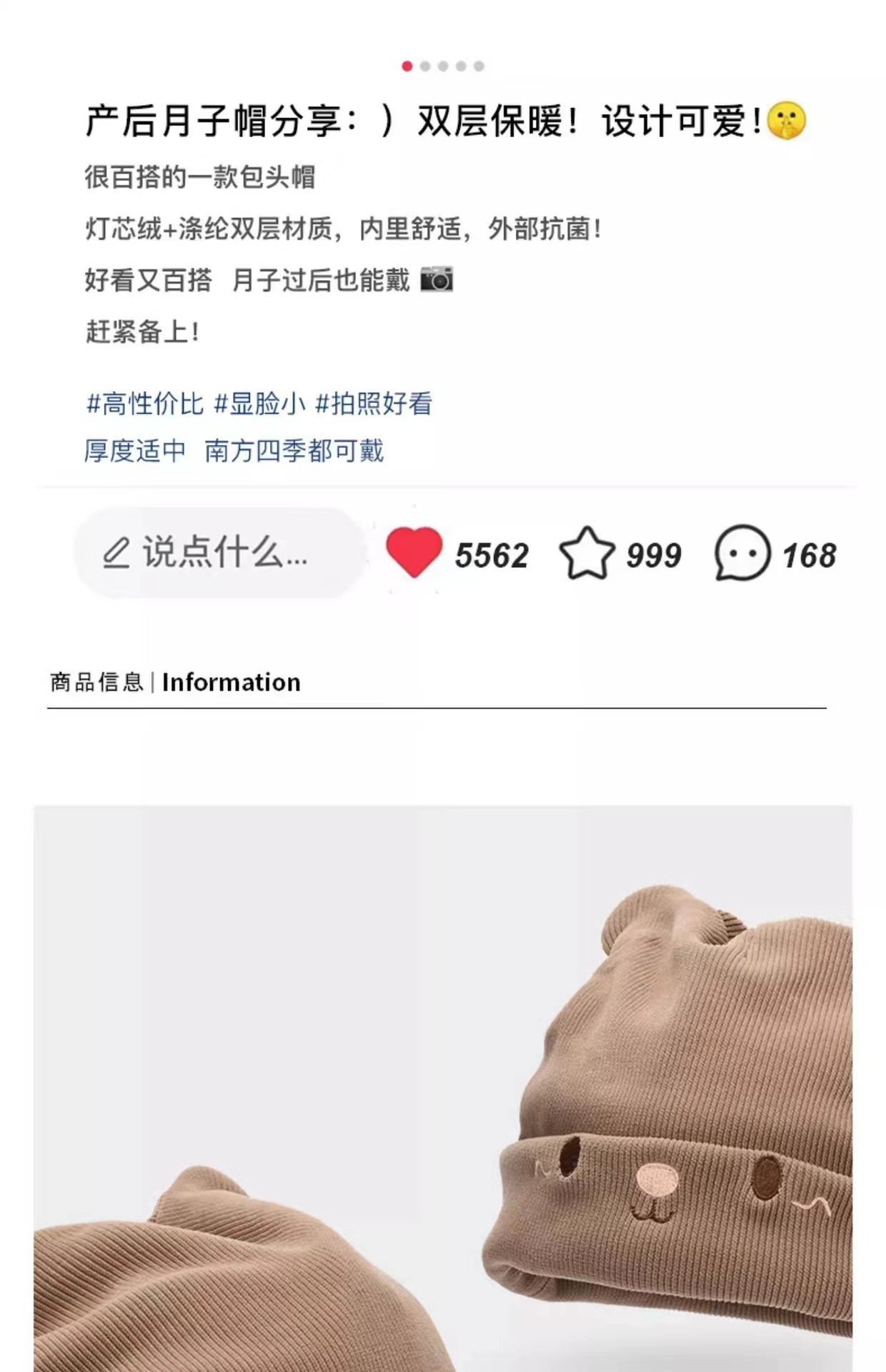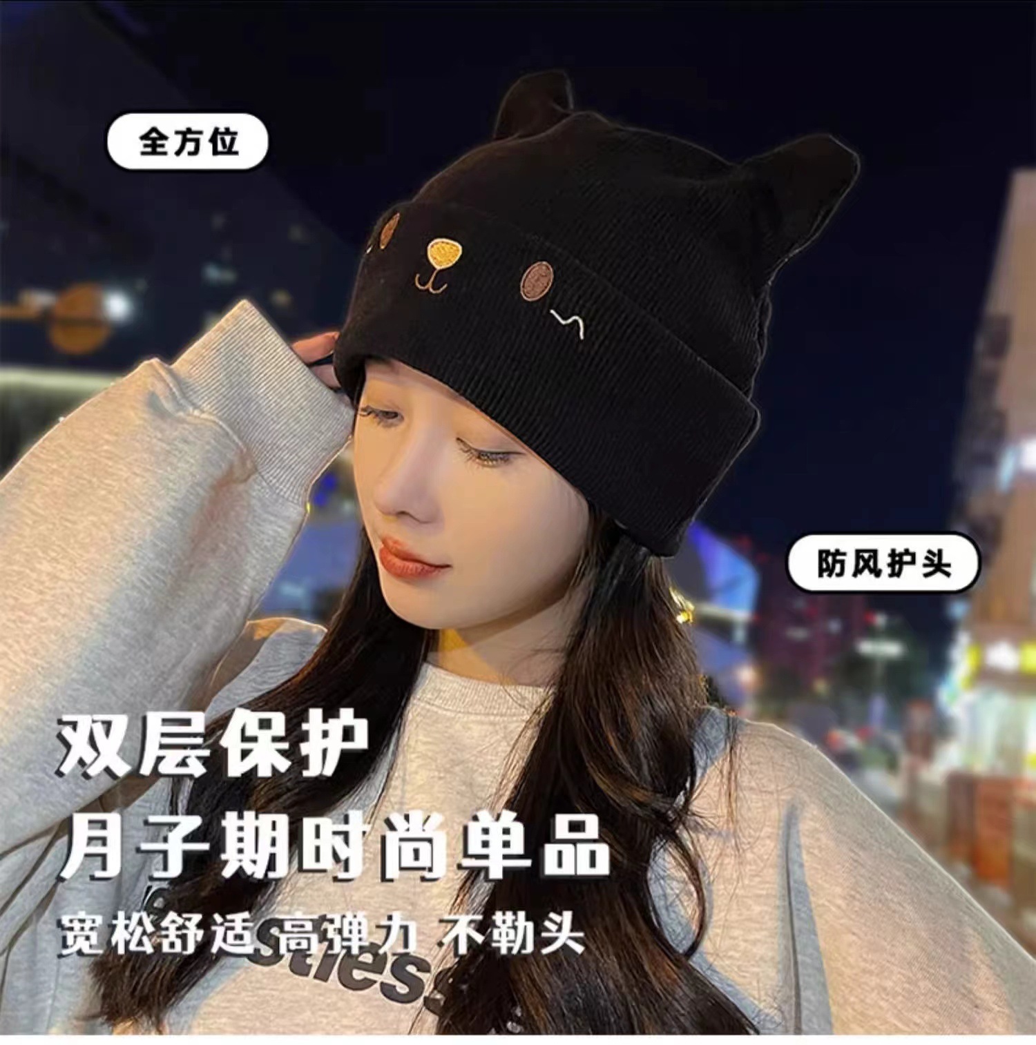 小熊月子帽夏薄秋纯棉孕妇睡觉可戴月子发带护防风帽子大头围
