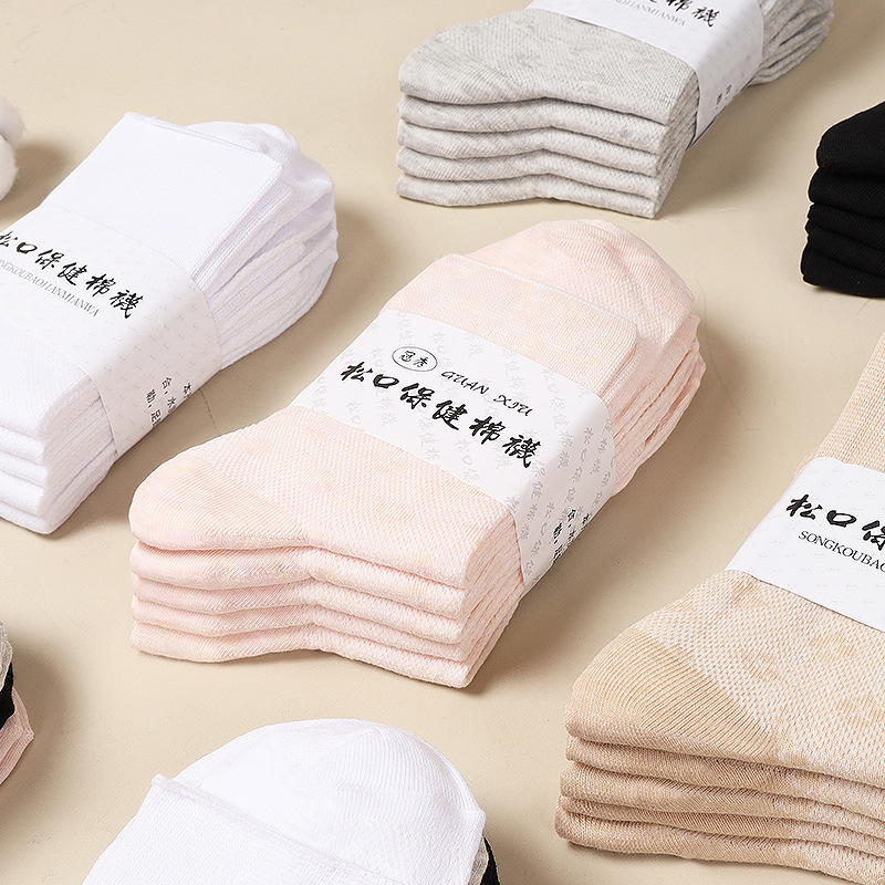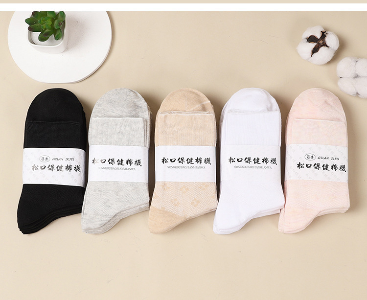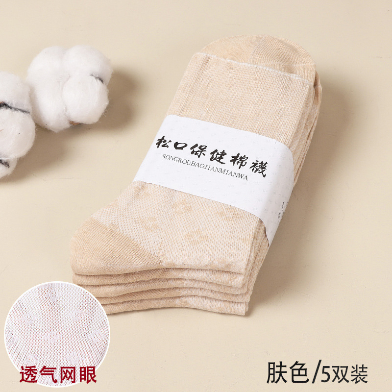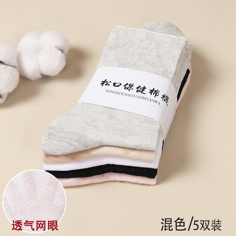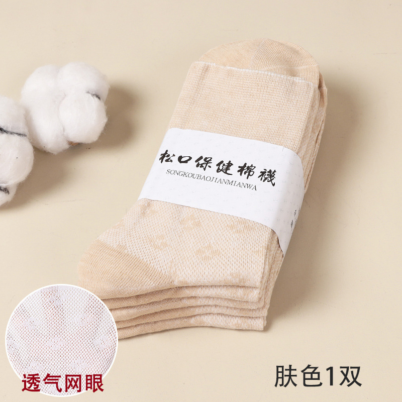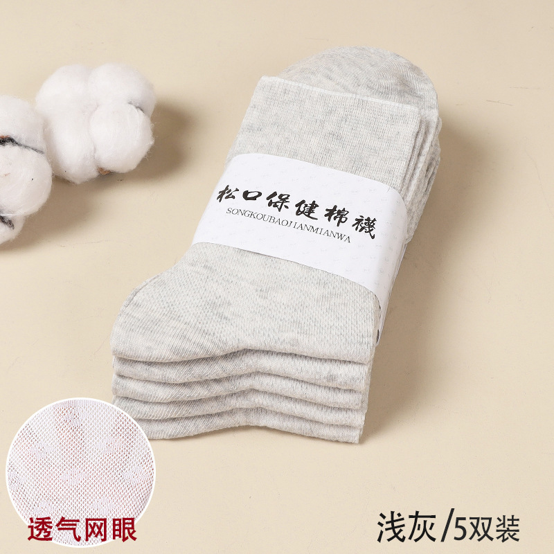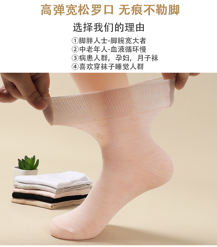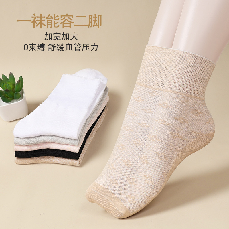 中老年人松口袜女棉袜孕妇宽松不勒脚春夏薄款网眼袜妈妈中筒袜子