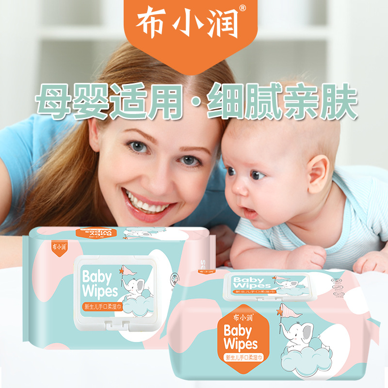 布小润婴儿手口湿巾大包装卫生清洁湿巾纸带盖宝宝湿纸巾
