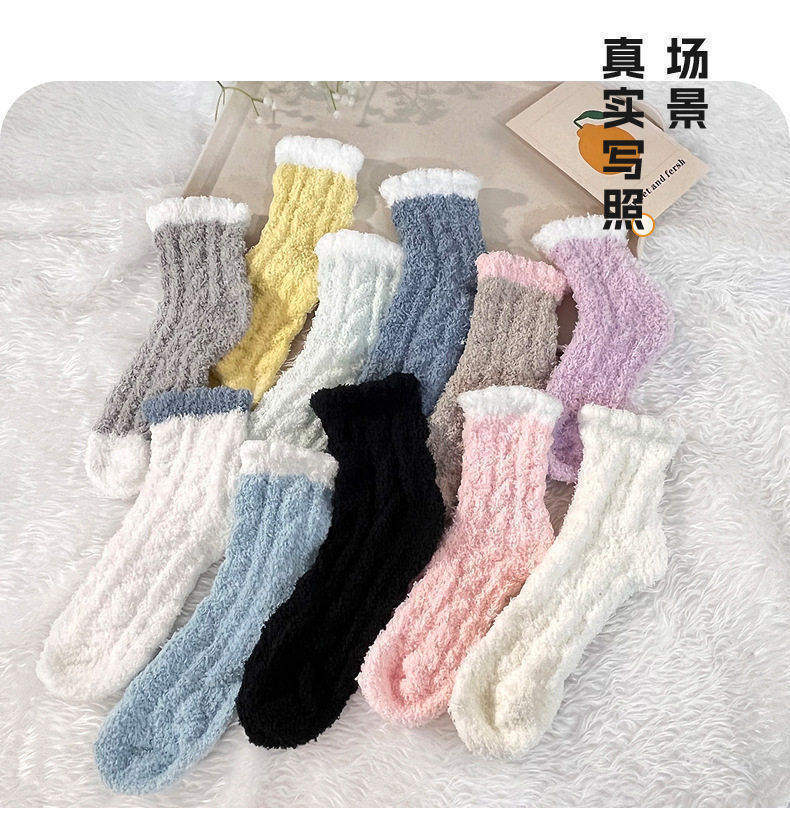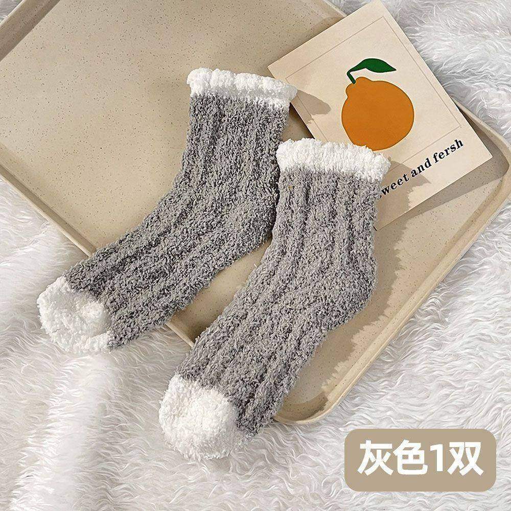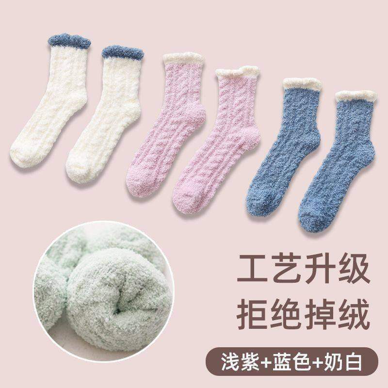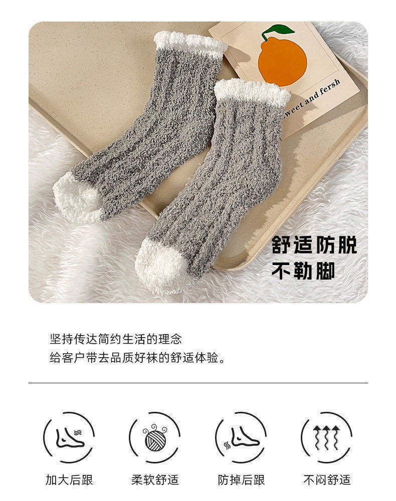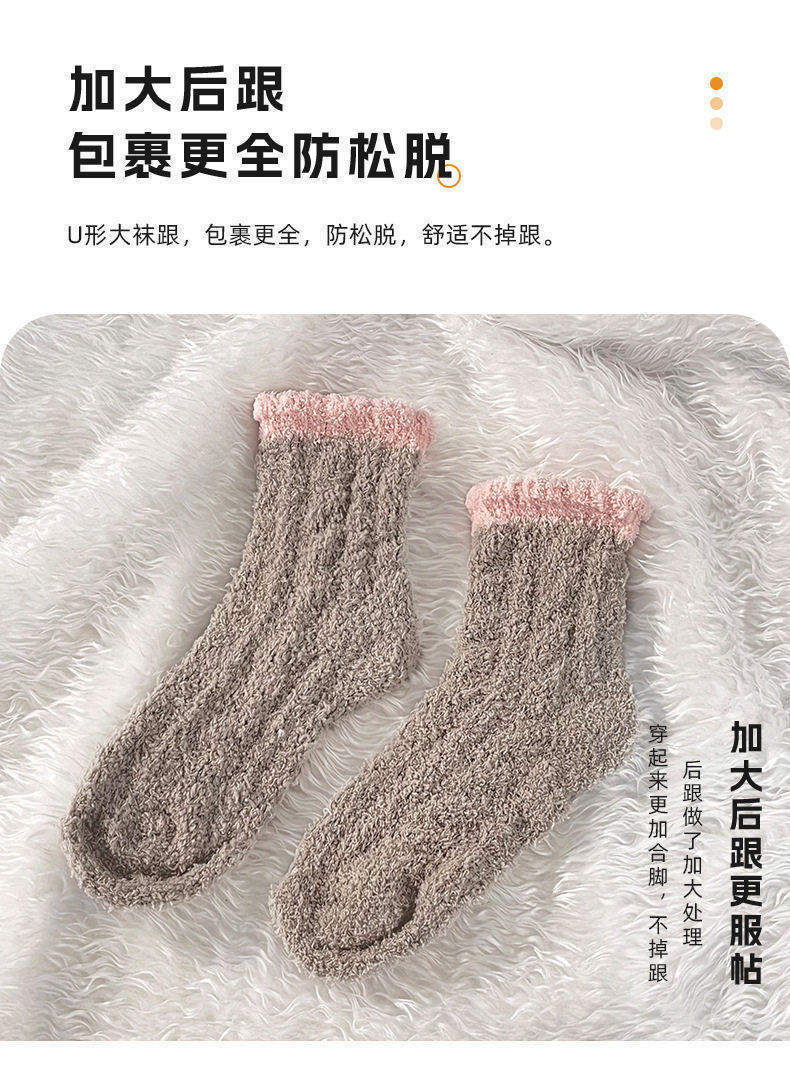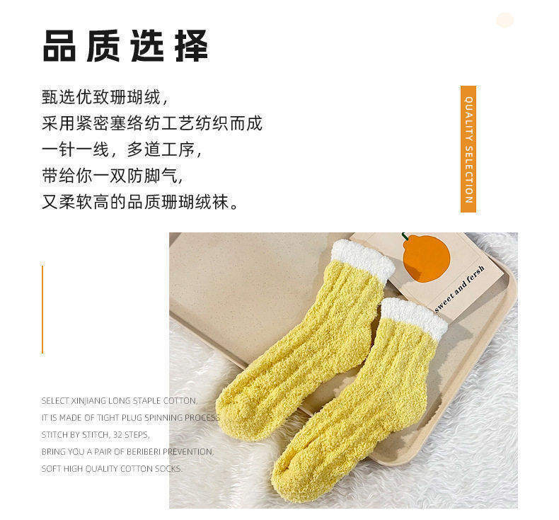 珊瑚绒月子袜子女孕妇加绒加厚保暖毛绒睡眠家居睡觉穿的棉袜冬天