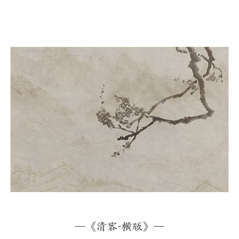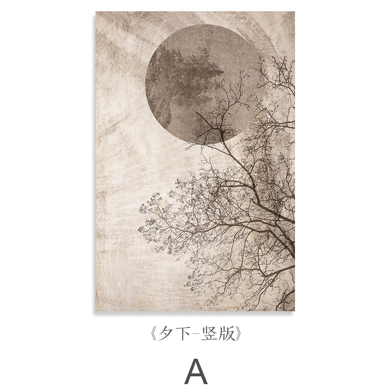 侘寂客厅大尺寸挂画新中式原木风玄关酒店民宿卧室床头装饰画壁画