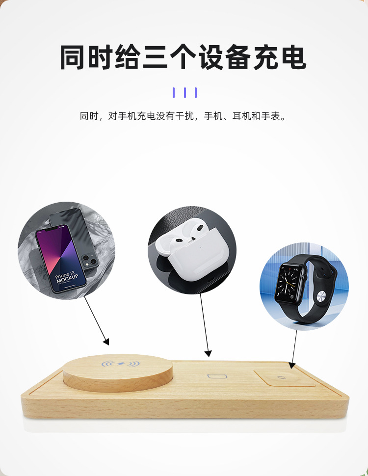 新款蓝牙手表耳机手机无线充电器桌面无线充多三合一无线充电器