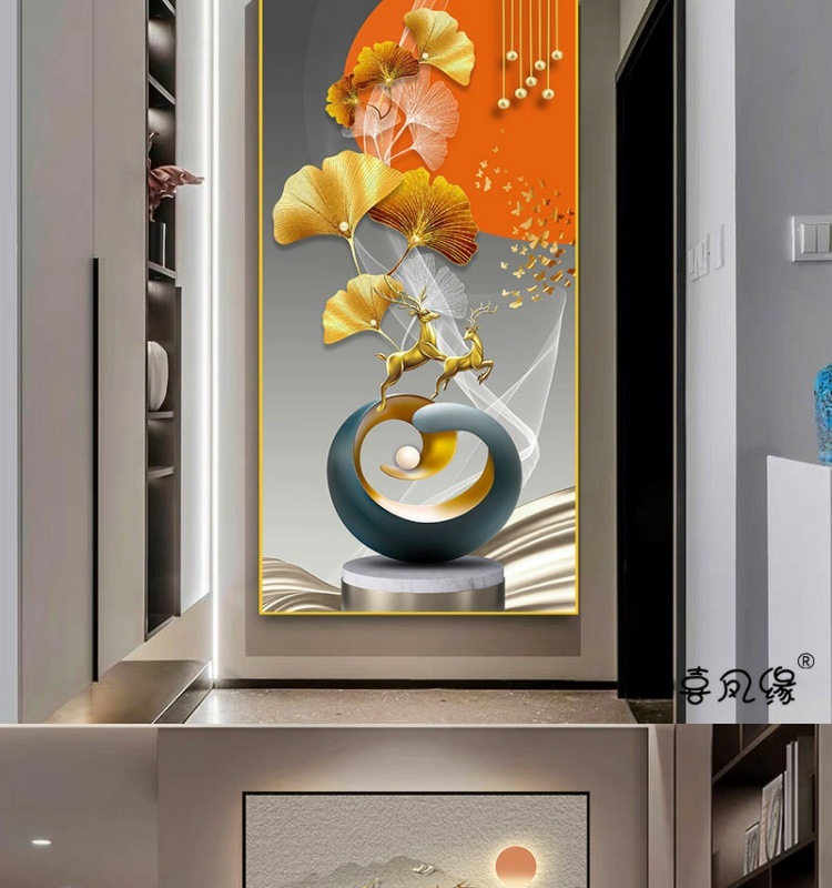 玄关装饰画竖版现代简约贴画墙贴壁画家用走廊过道自粘贴画