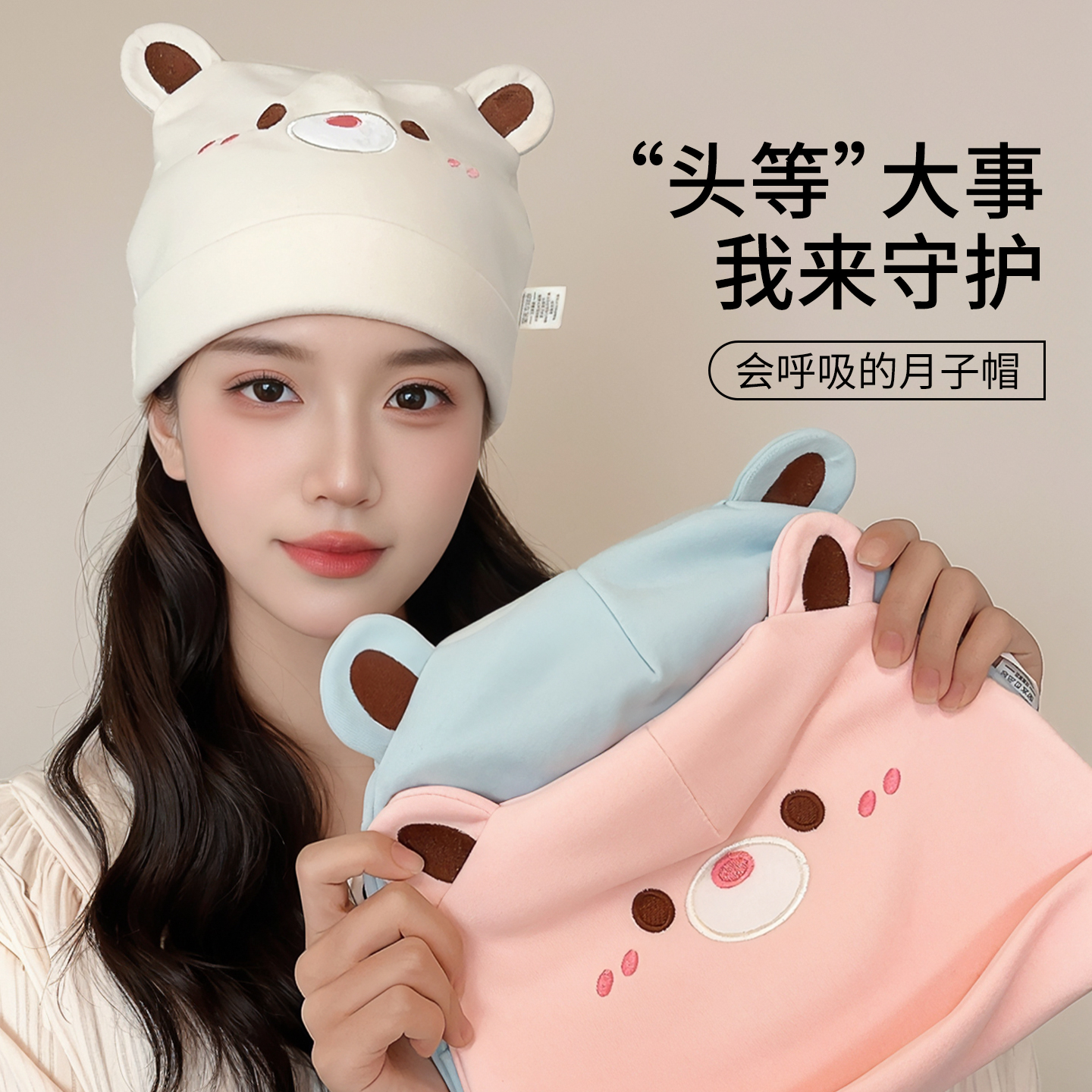 月子帽纯棉春夏孕妇产后防风帽子单层透气薄款妈妈帽子夏季产妇帽