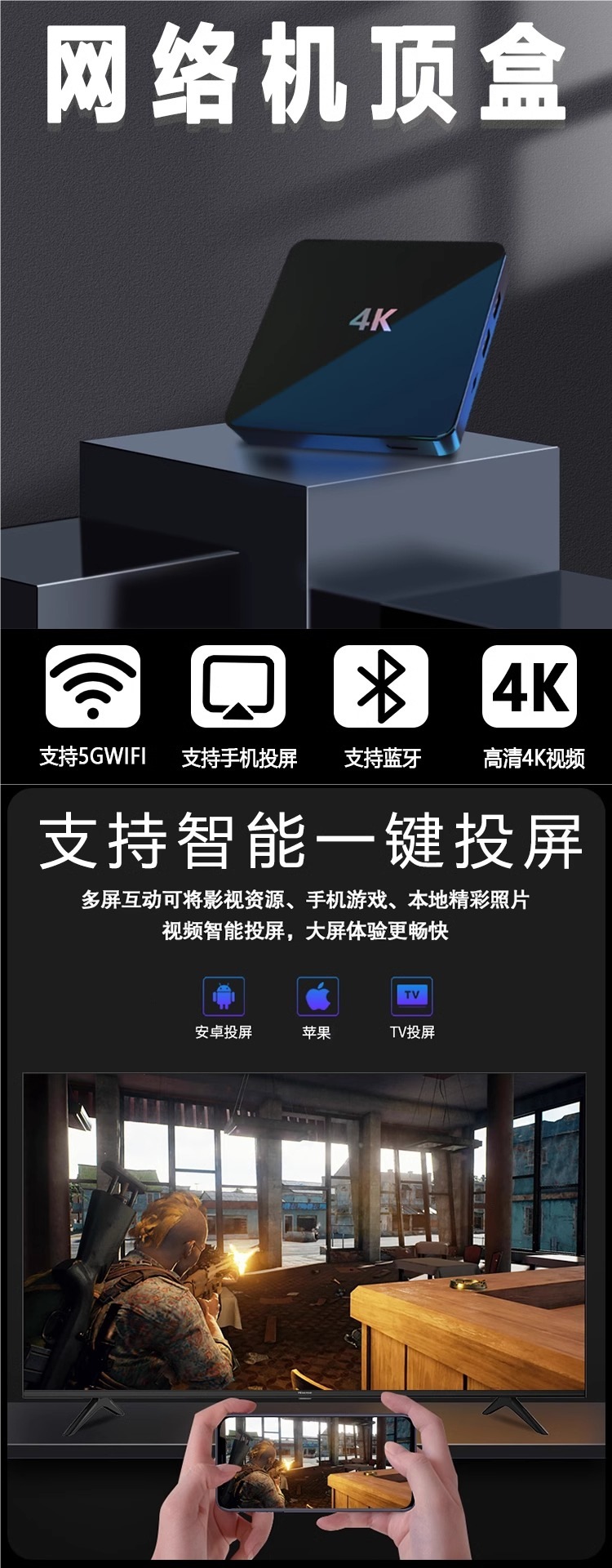 数字网络机顶盒5G双频家用4K高清通用手机投屏全网通电视盒子