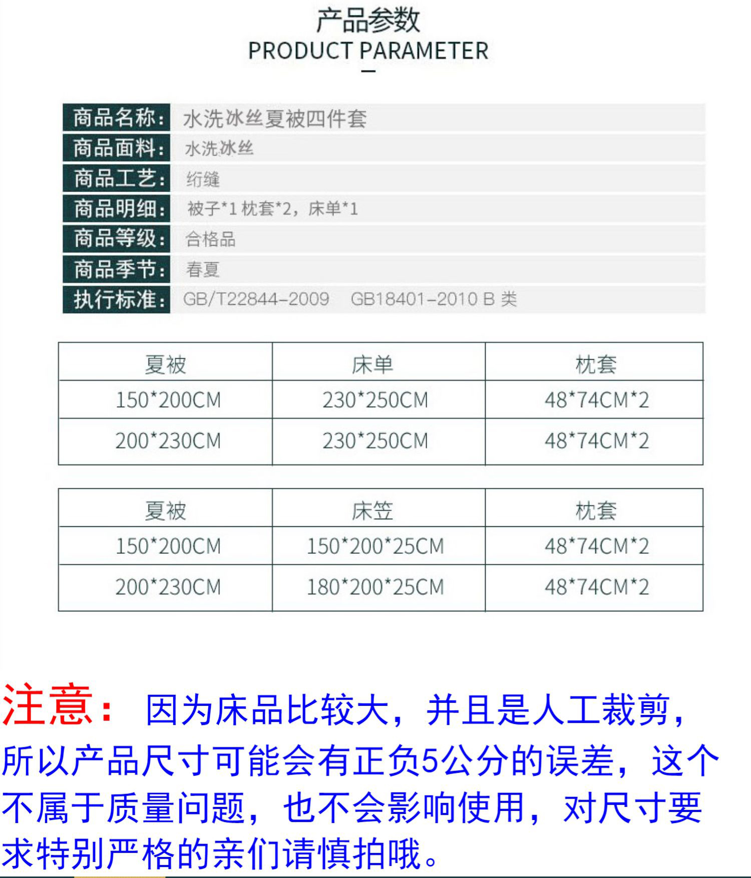 - 200X230cm夏被四件套-夏被+枕套两个+床笠