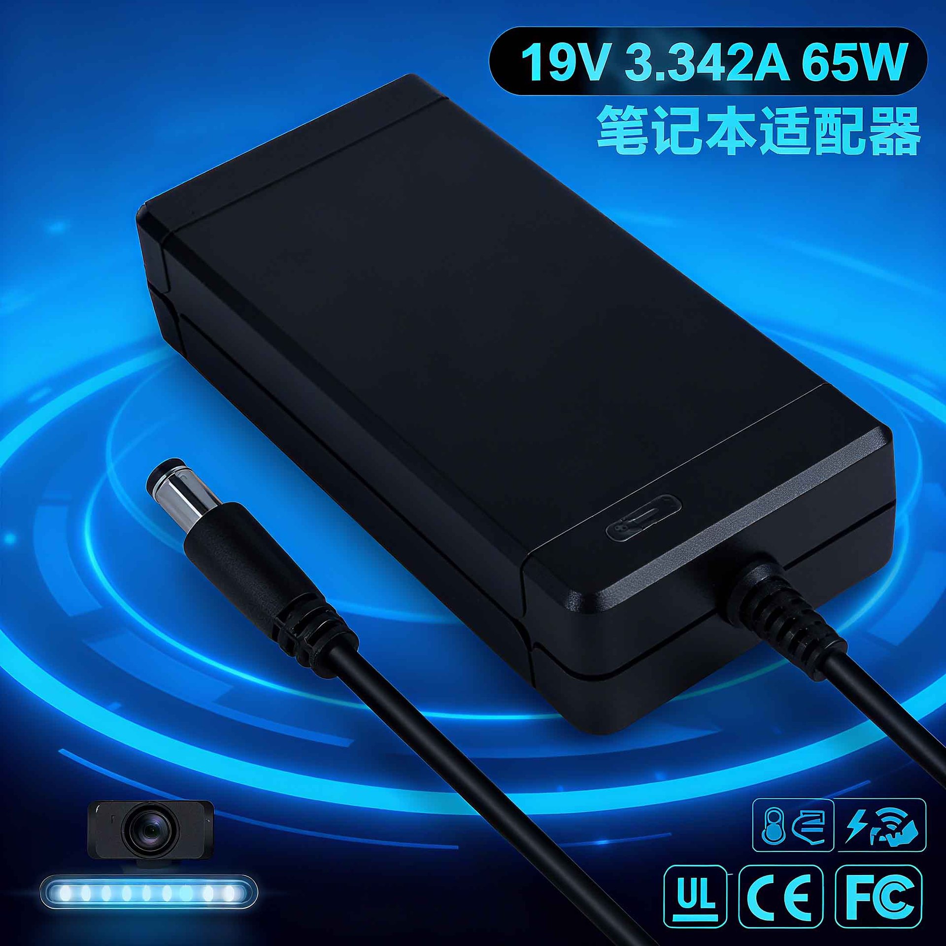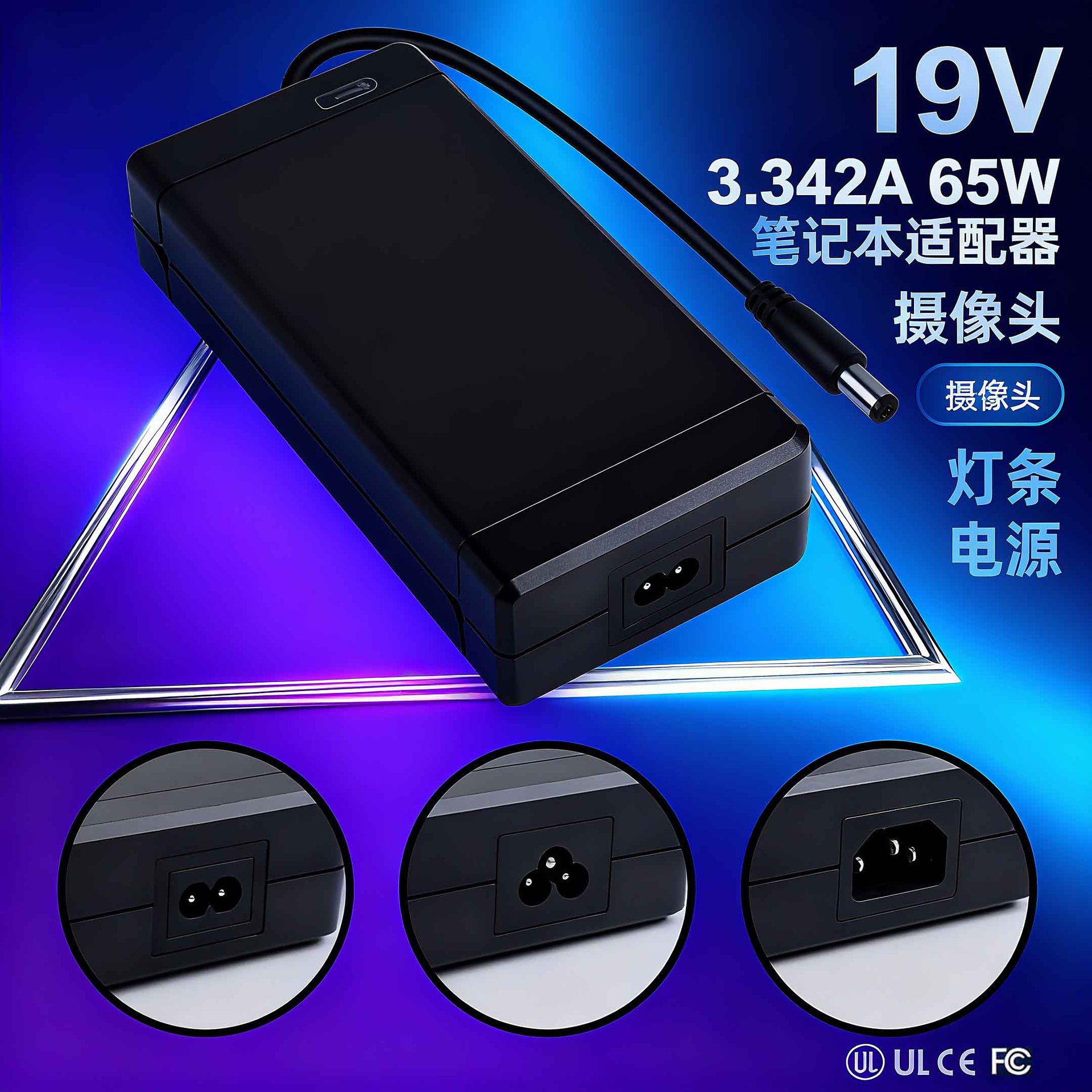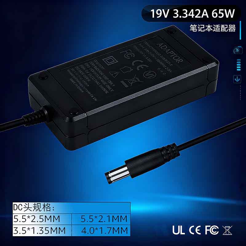 19V3.342A笔记本充电器摄像头灯条直播灯电源65WUL认证FCC适配器