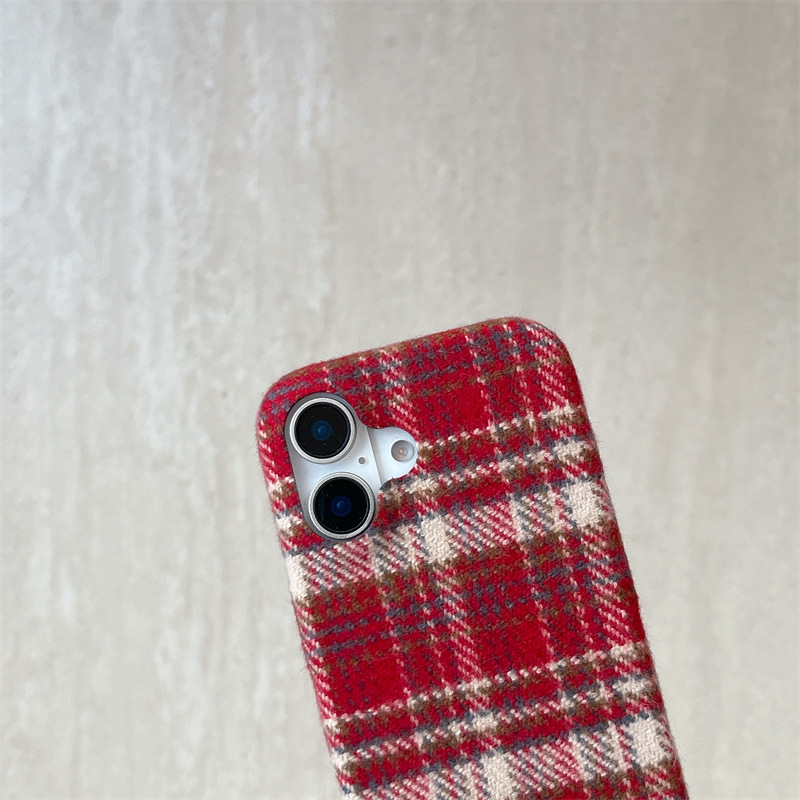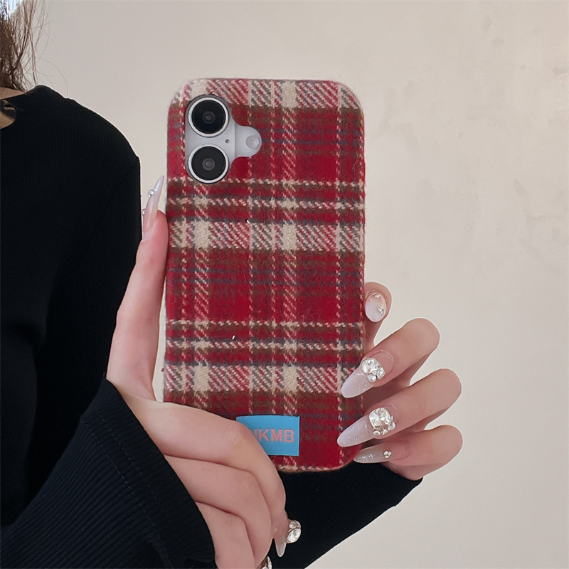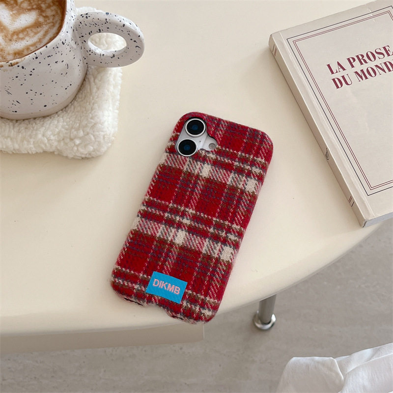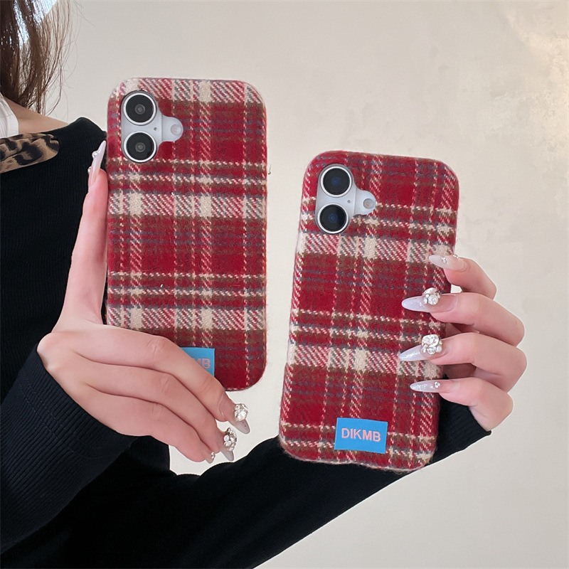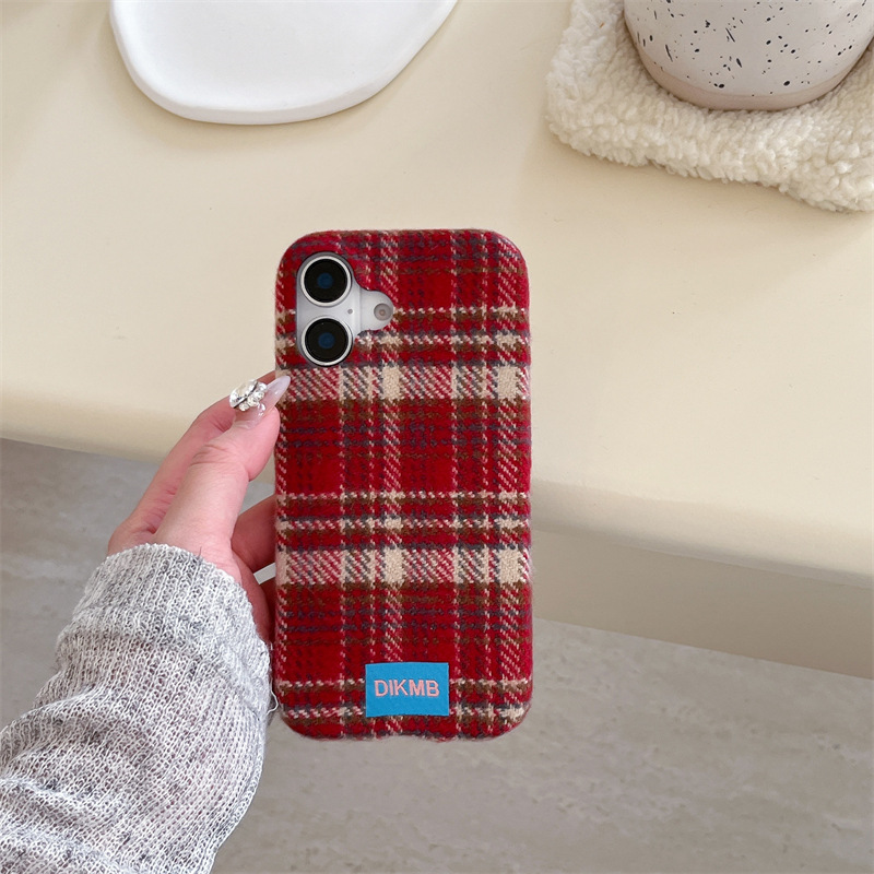 苏格兰格绒布适用iPhone华为mate60pro/70手机壳防摔Pura70/80女P60毛绒