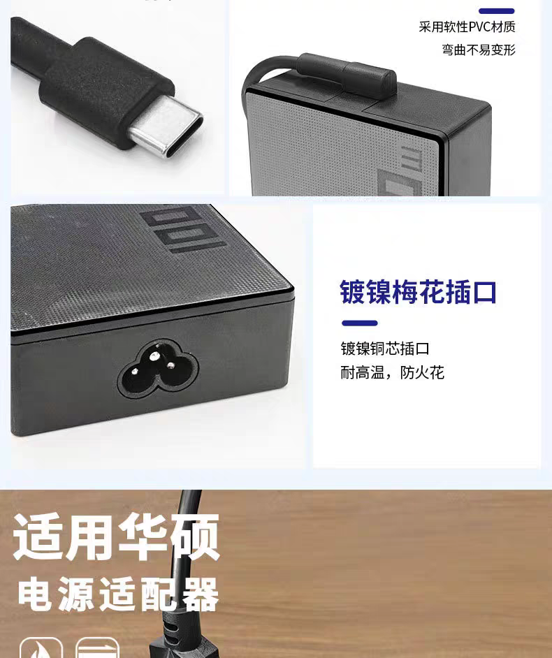 适用于华硕 ROG 幻14 15 16笔记本PD快充20V5a 100W电源适配器