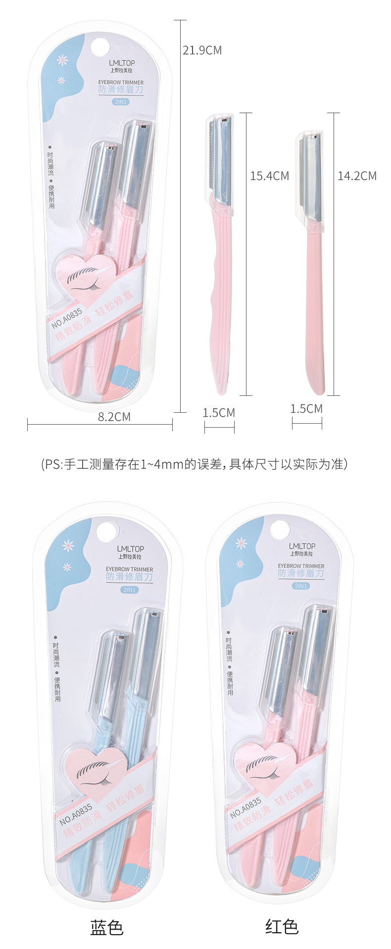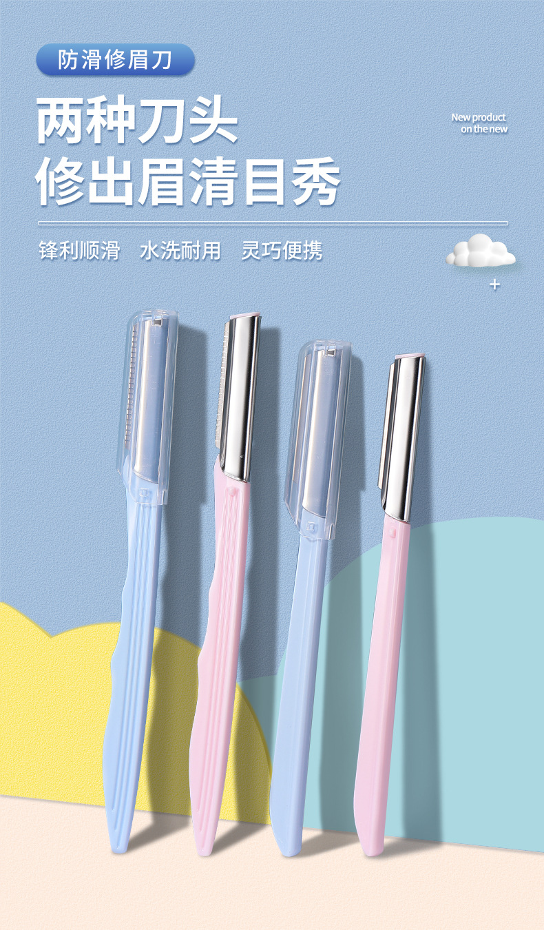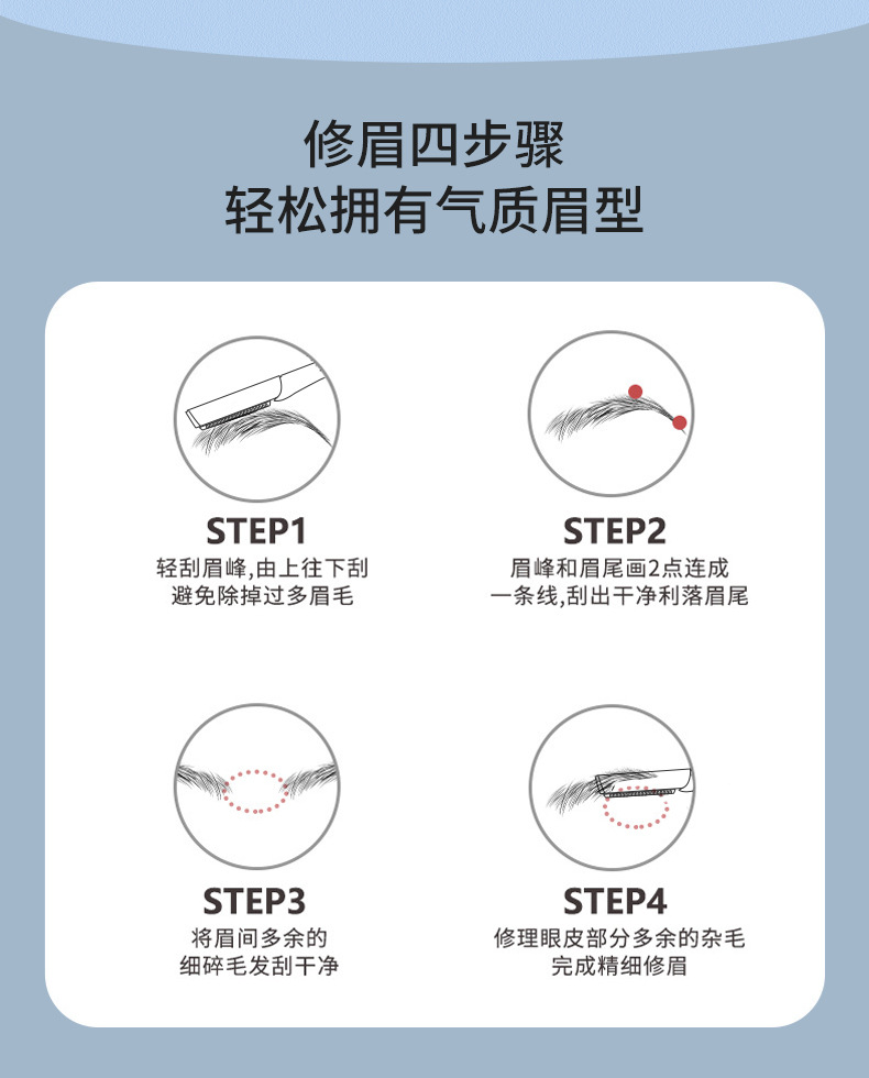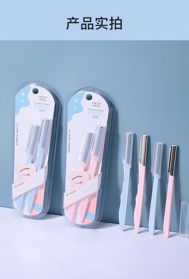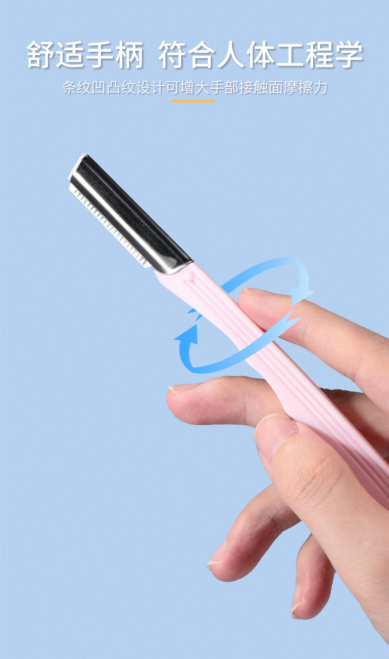 2支不锈钢修眉刀防滑网纹刮眉刀美容院锋利眉刀
