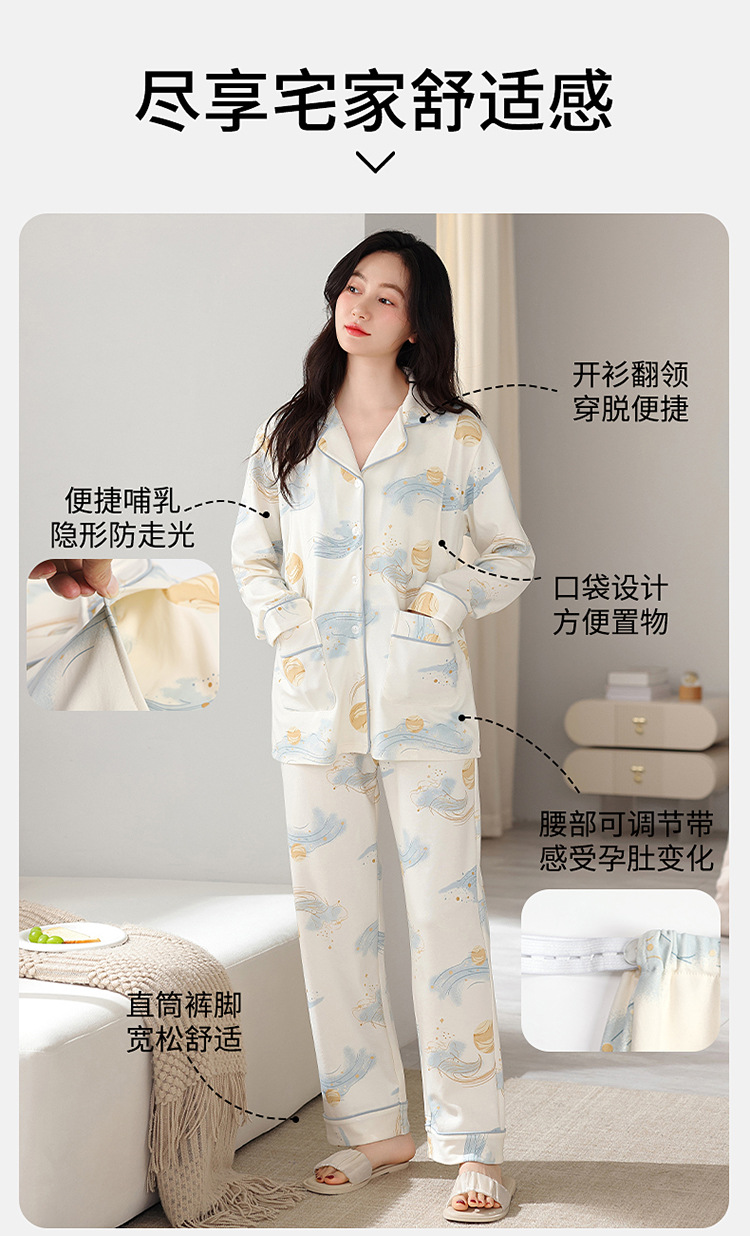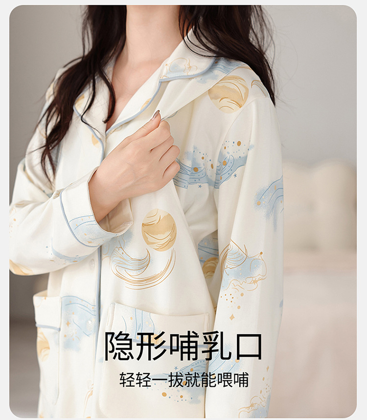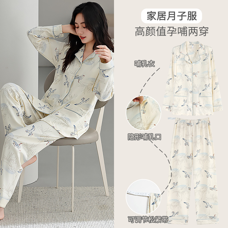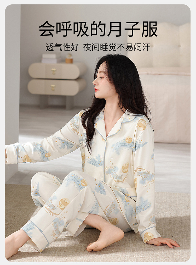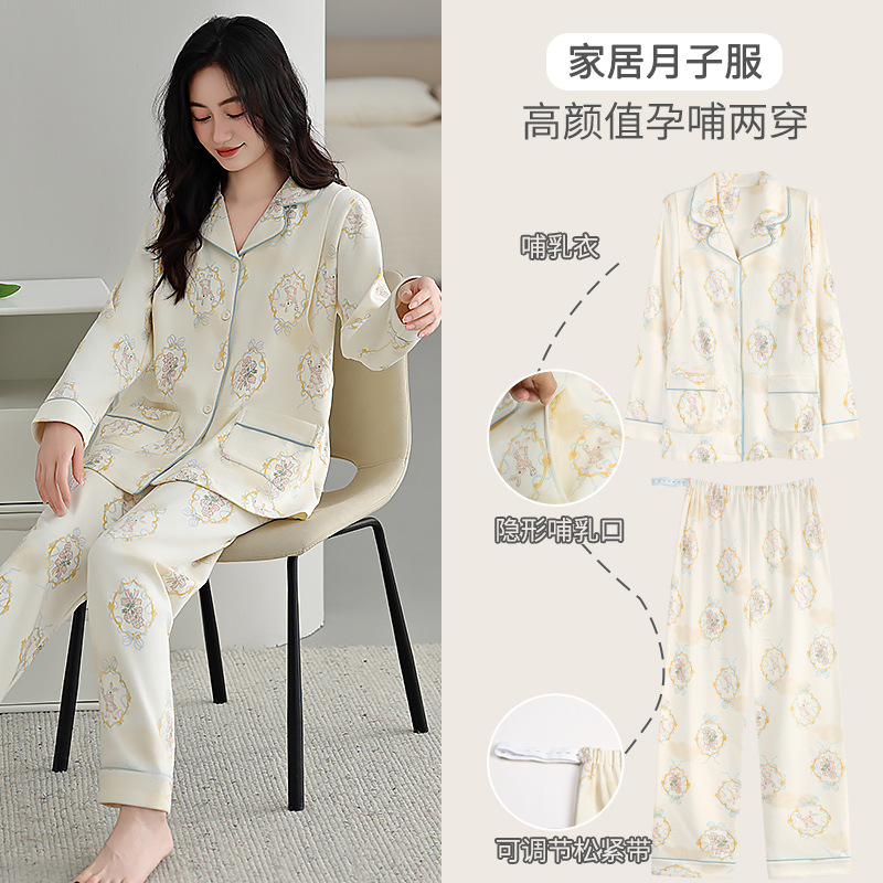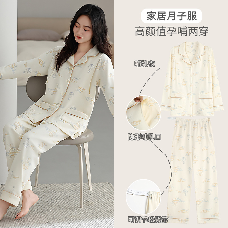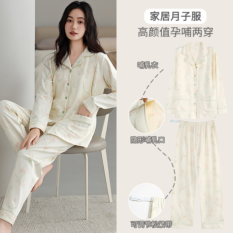 月子服春秋季纯棉产后哺乳孕妇睡衣双面全棉产妇喂奶秋冬款月子服