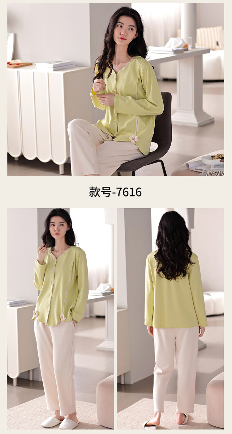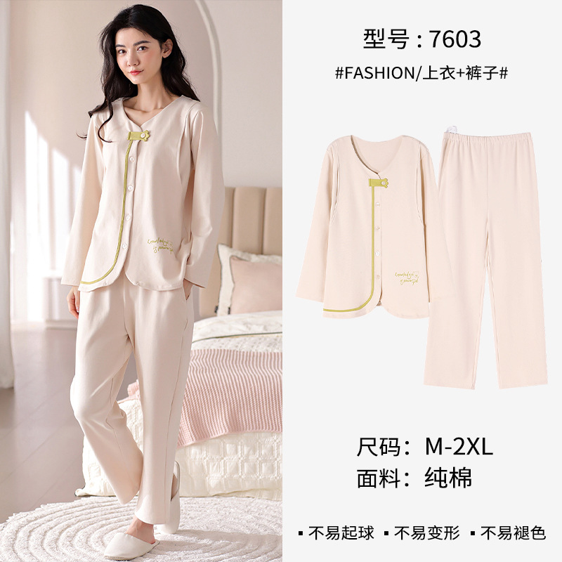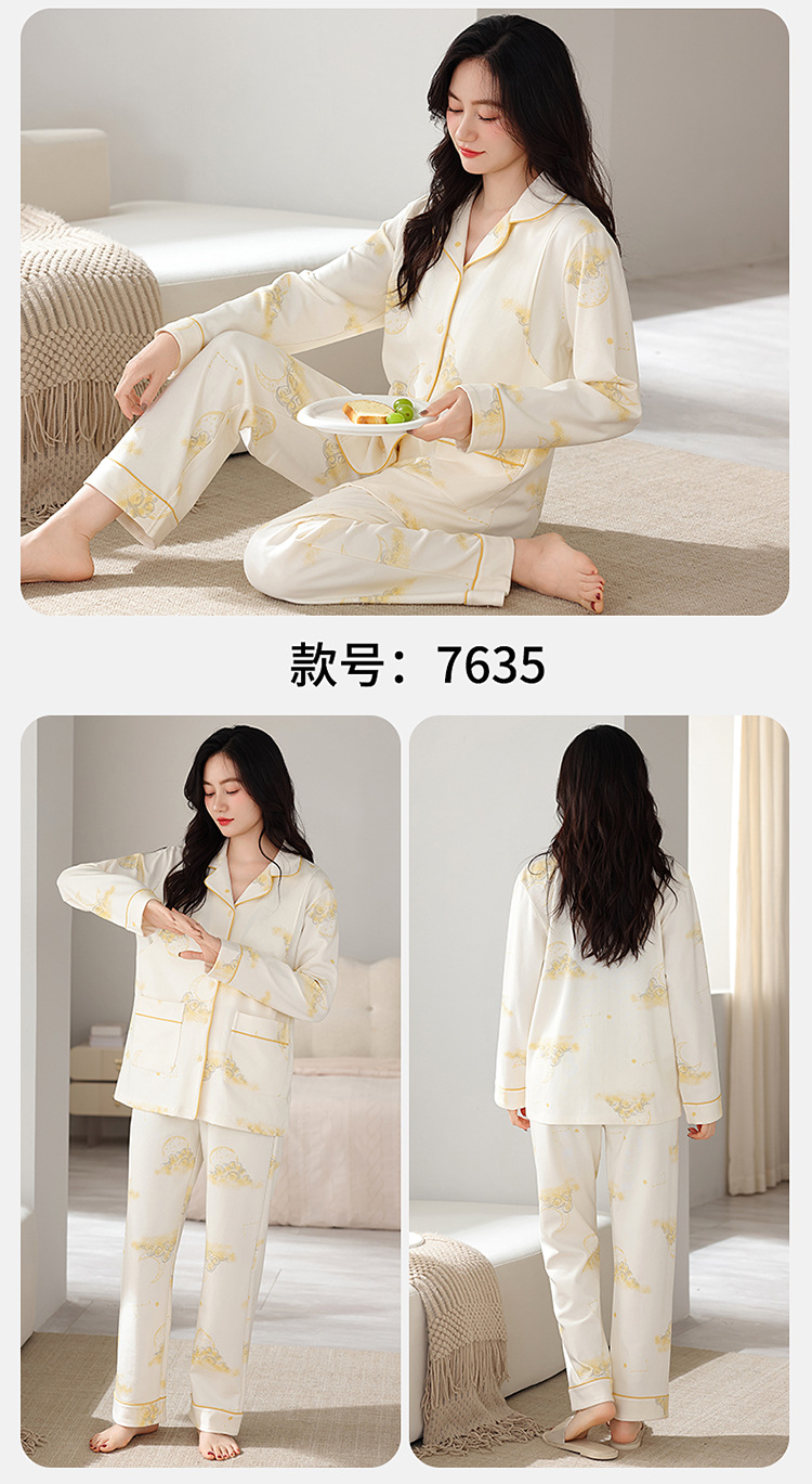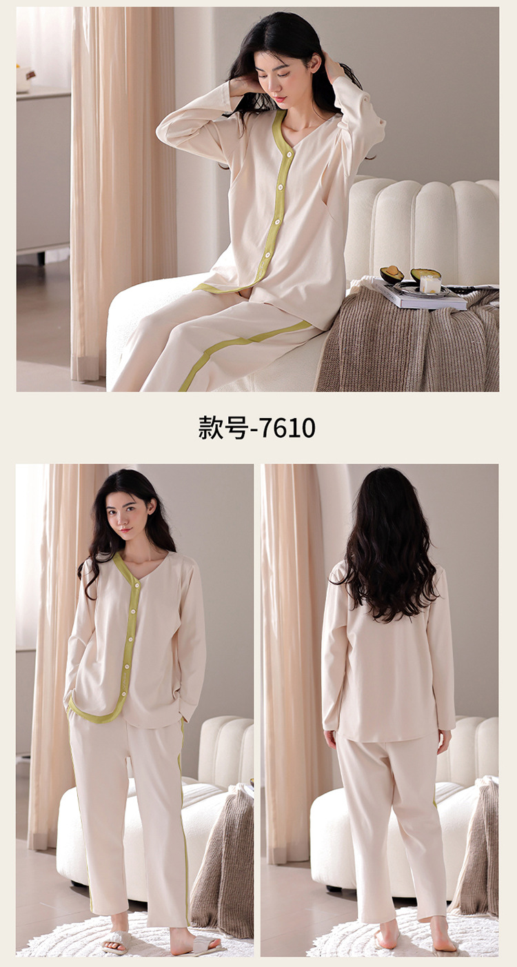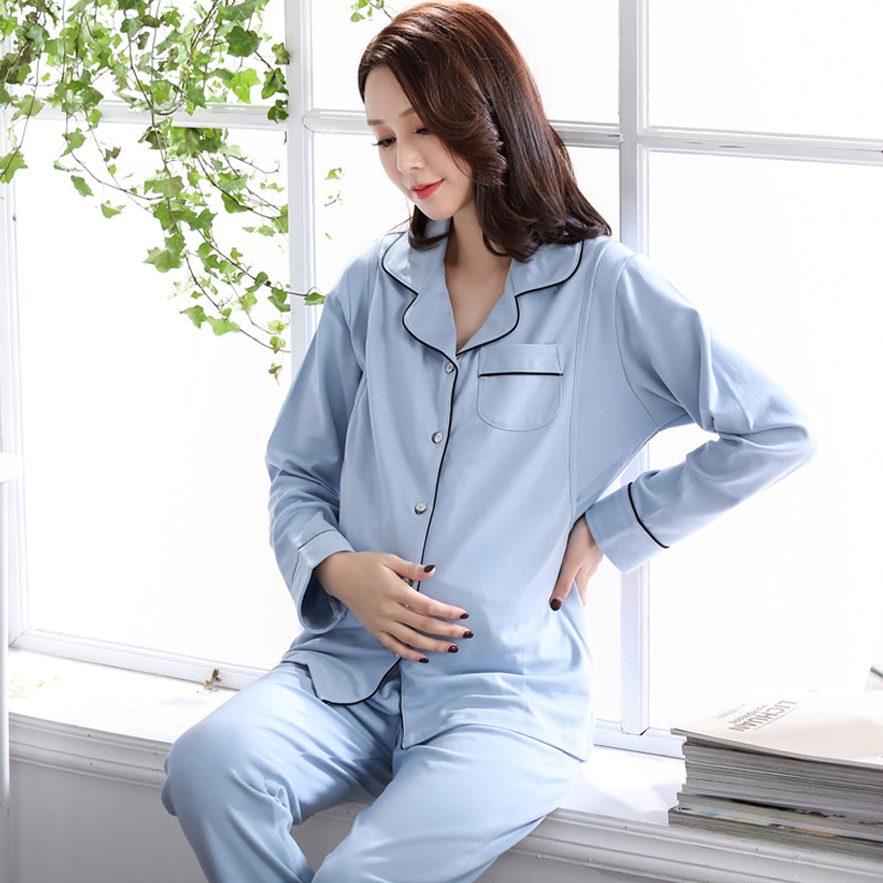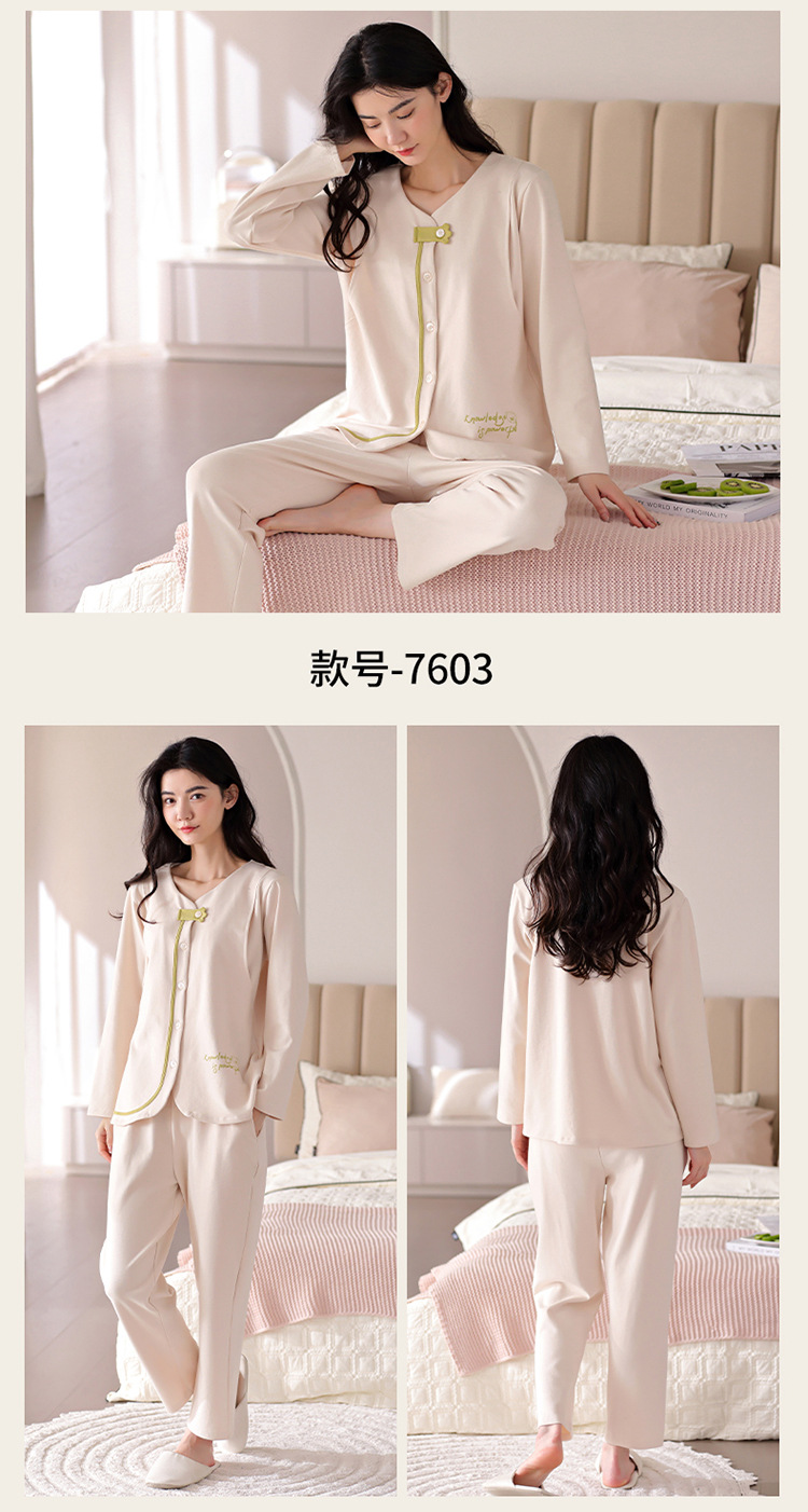 月子服春秋季纯棉产后哺乳孕妇睡衣双面全棉产妇喂奶秋冬款月子服