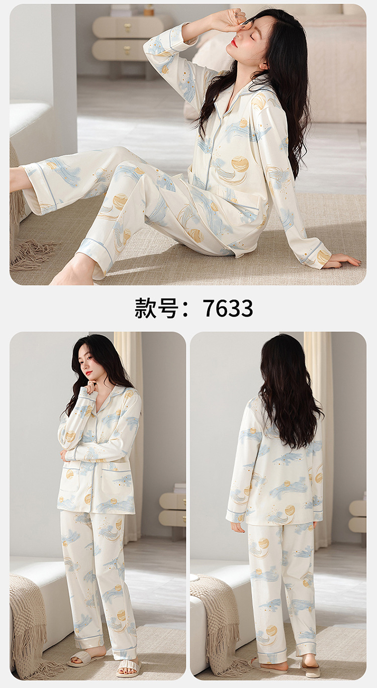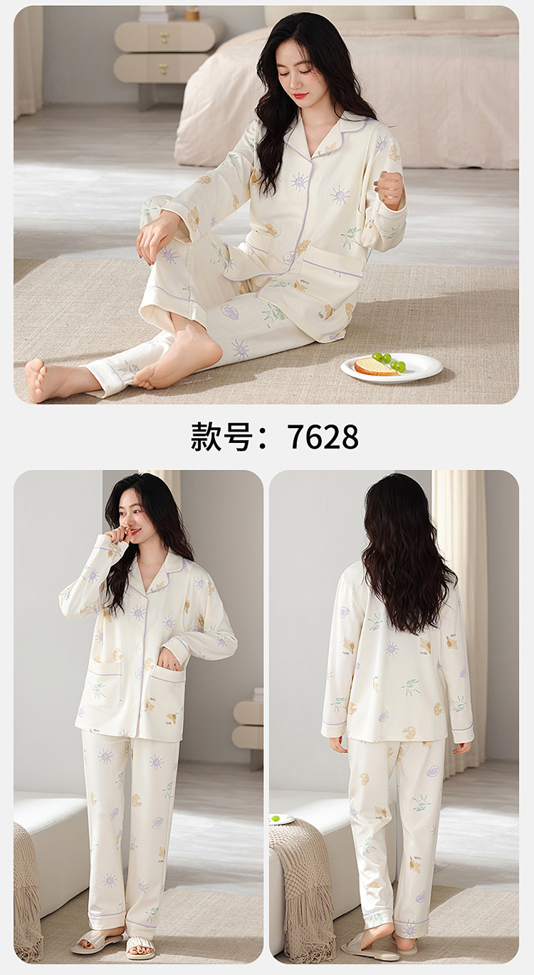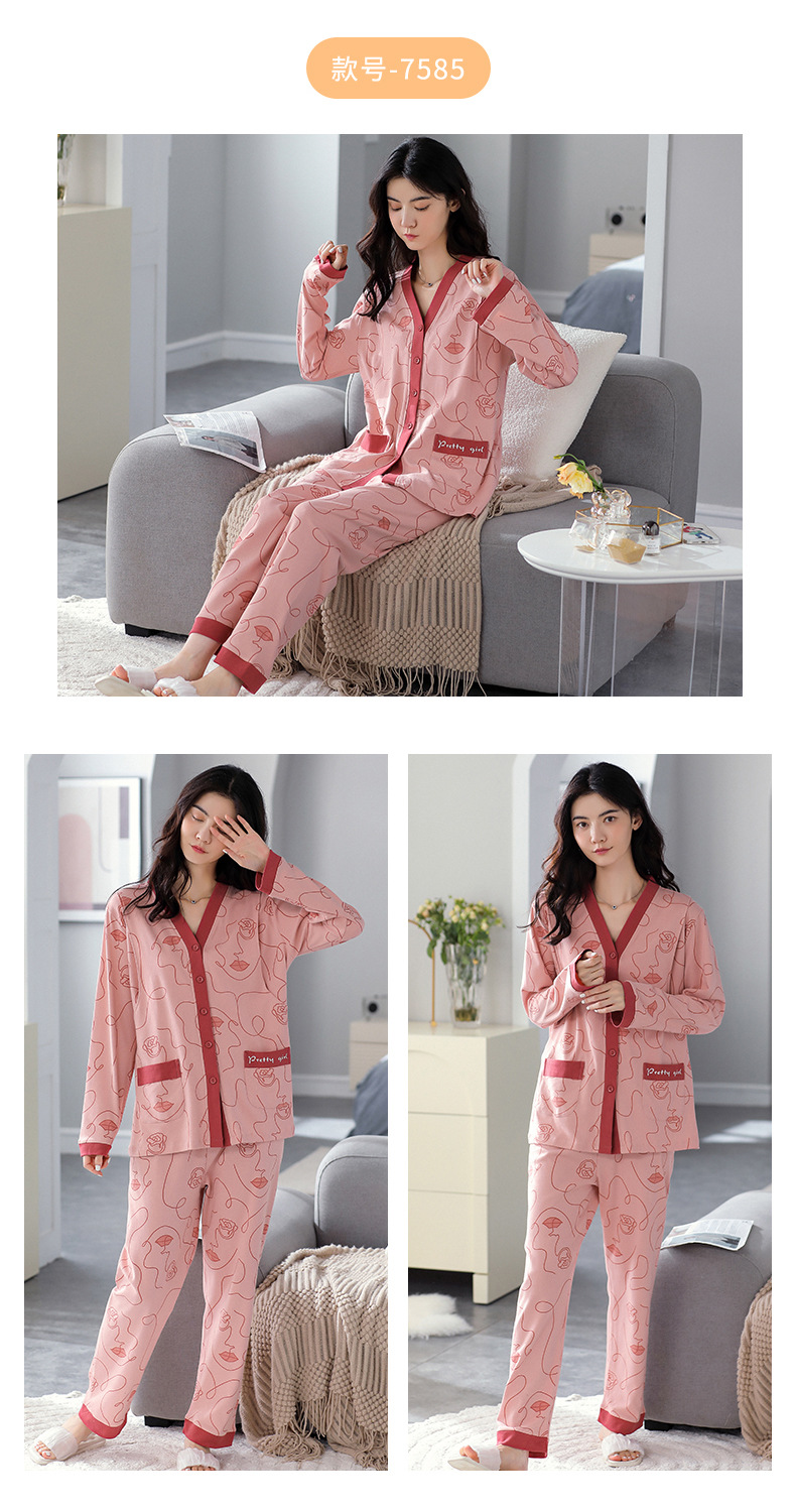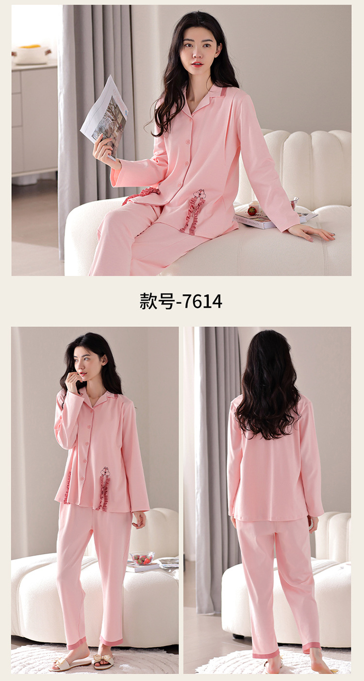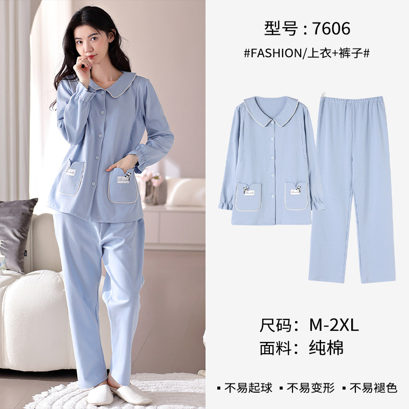 月子服春秋季纯棉产后哺乳孕妇睡衣双面全棉产妇喂奶秋冬款月子服