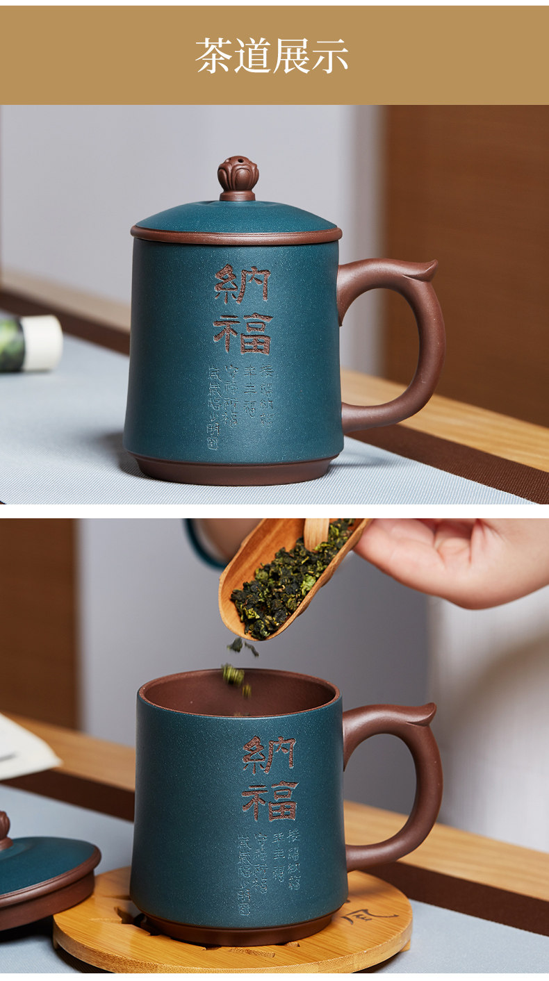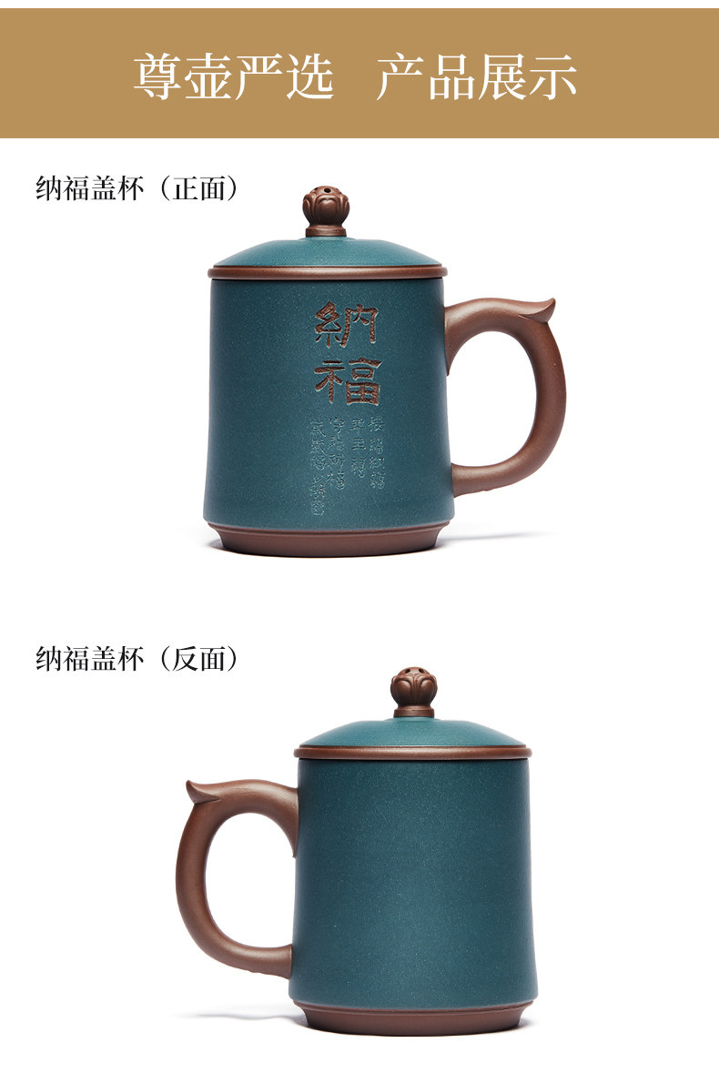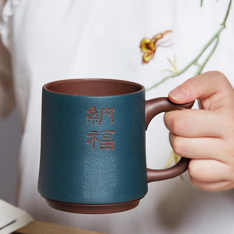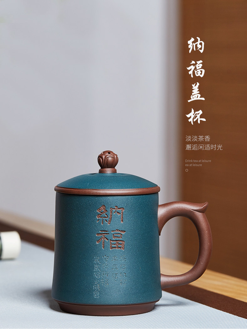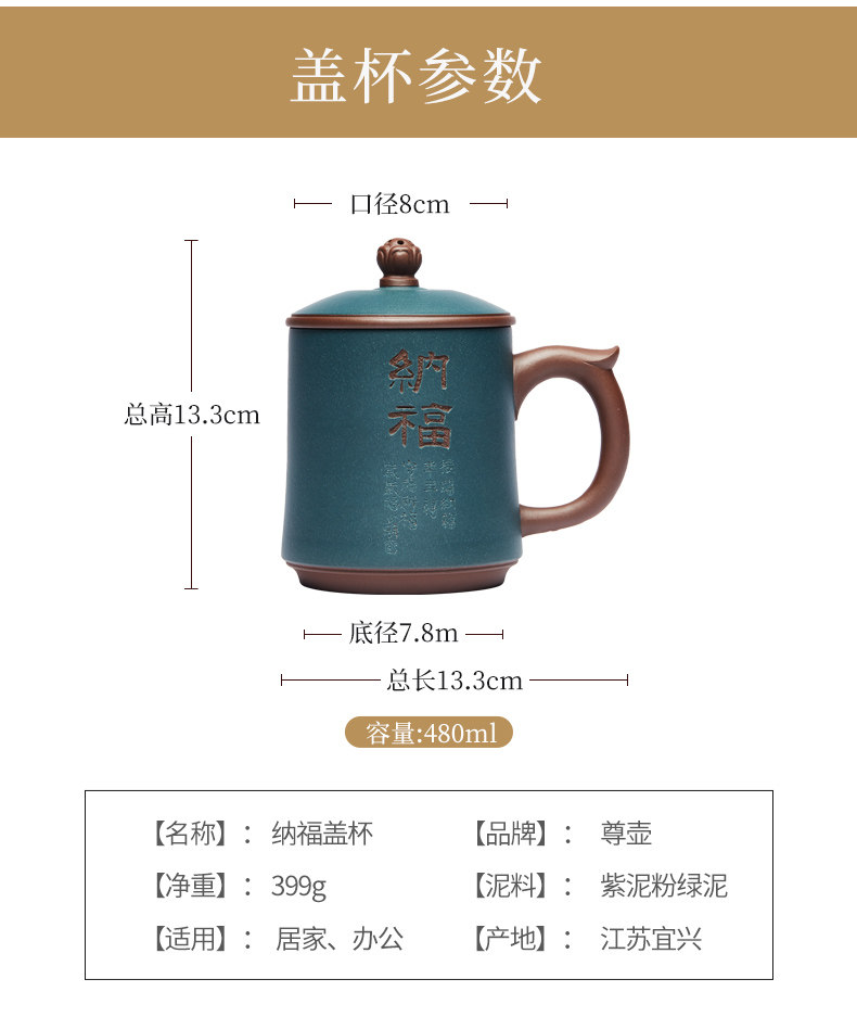 纳福紫砂杯静观泡茶杯大容量带盖水杯子陶瓷办公家用茶具