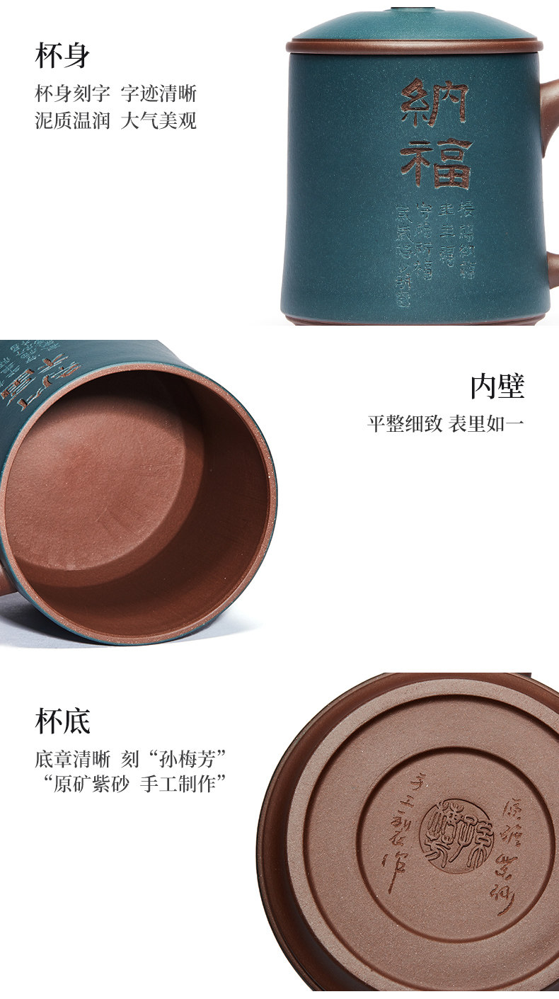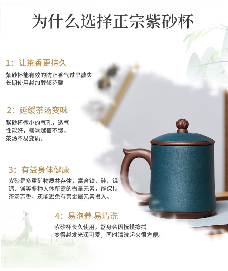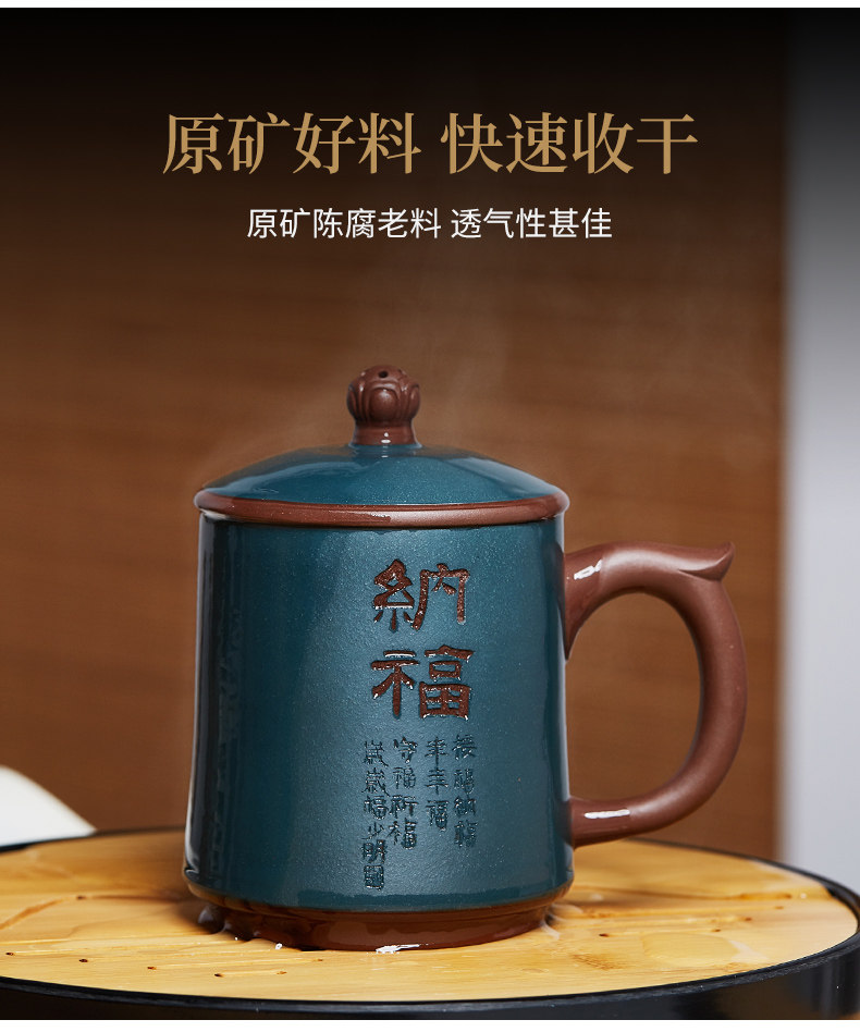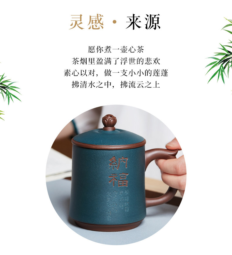 纳福紫砂杯静观泡茶杯大容量带盖水杯子陶瓷办公家用茶具