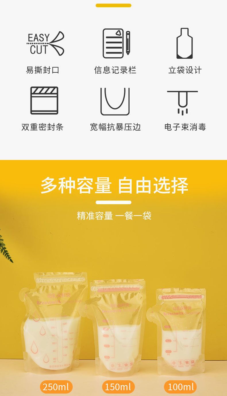 储奶袋母乳储存袋保鲜袋150一次性装奶袋100ml存奶袋存奶带小容量