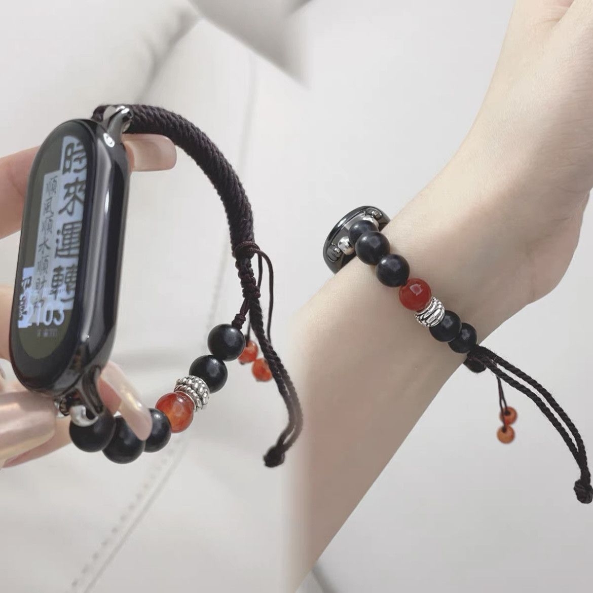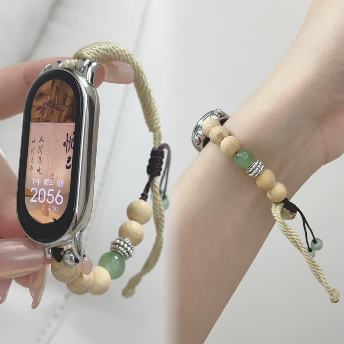 新中式串珠适用小米手环10NFC版98765手表带檀香手工高颜值腕带女