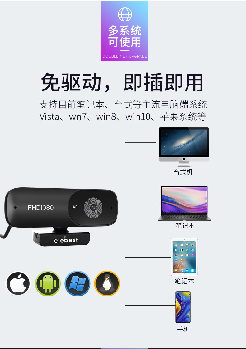 高清电脑摄像头自动对焦视频网络高清2K直播神器USB电脑摄像