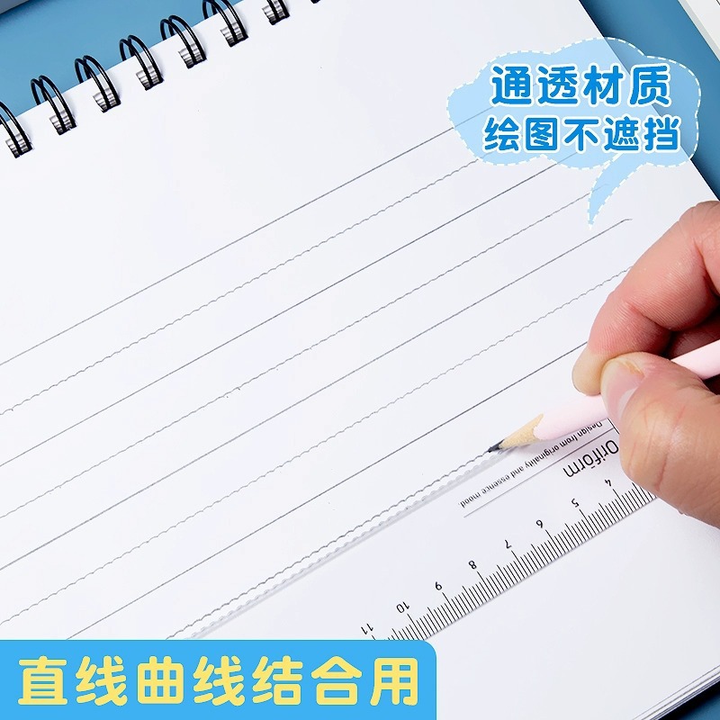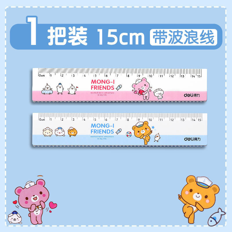 得力透明直尺子小学生函数尺带波浪线格尺多功能儿童文具