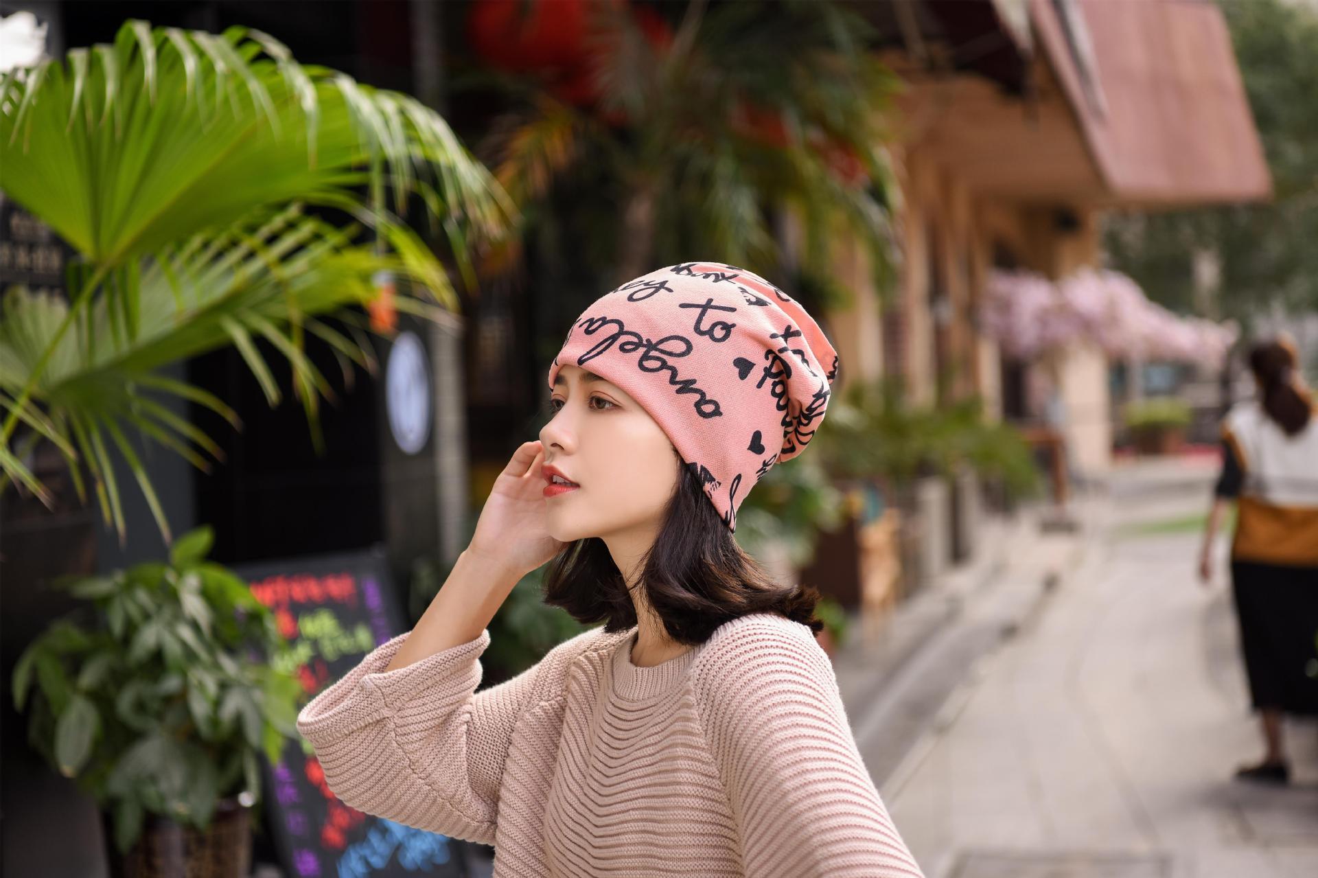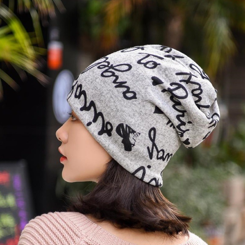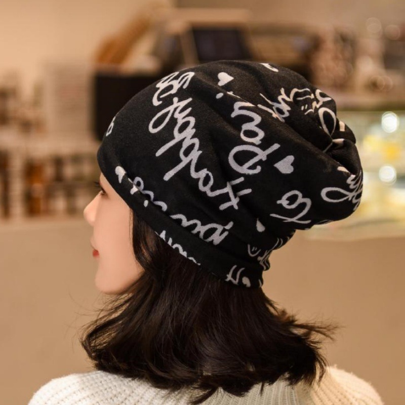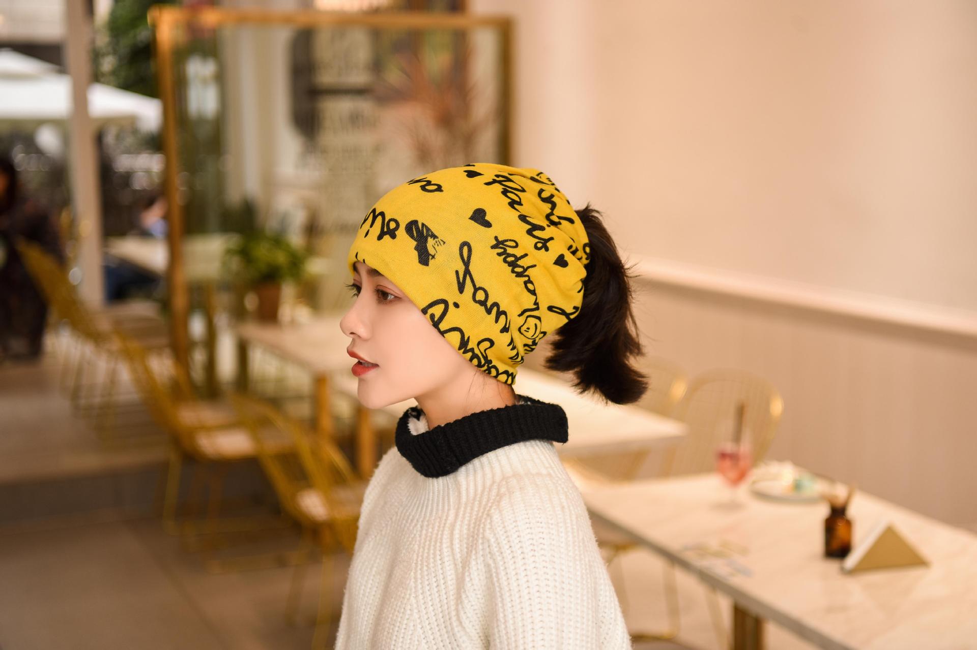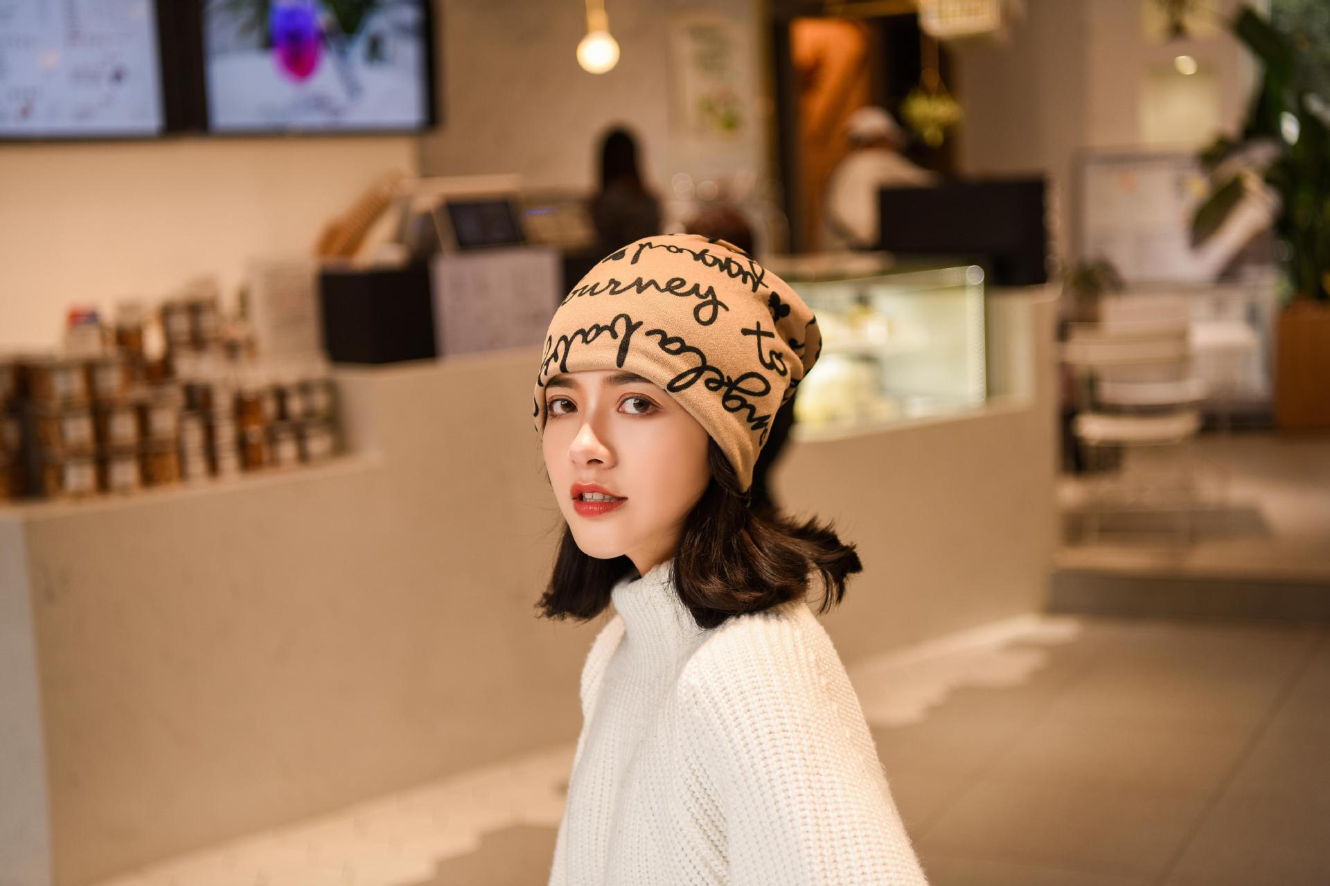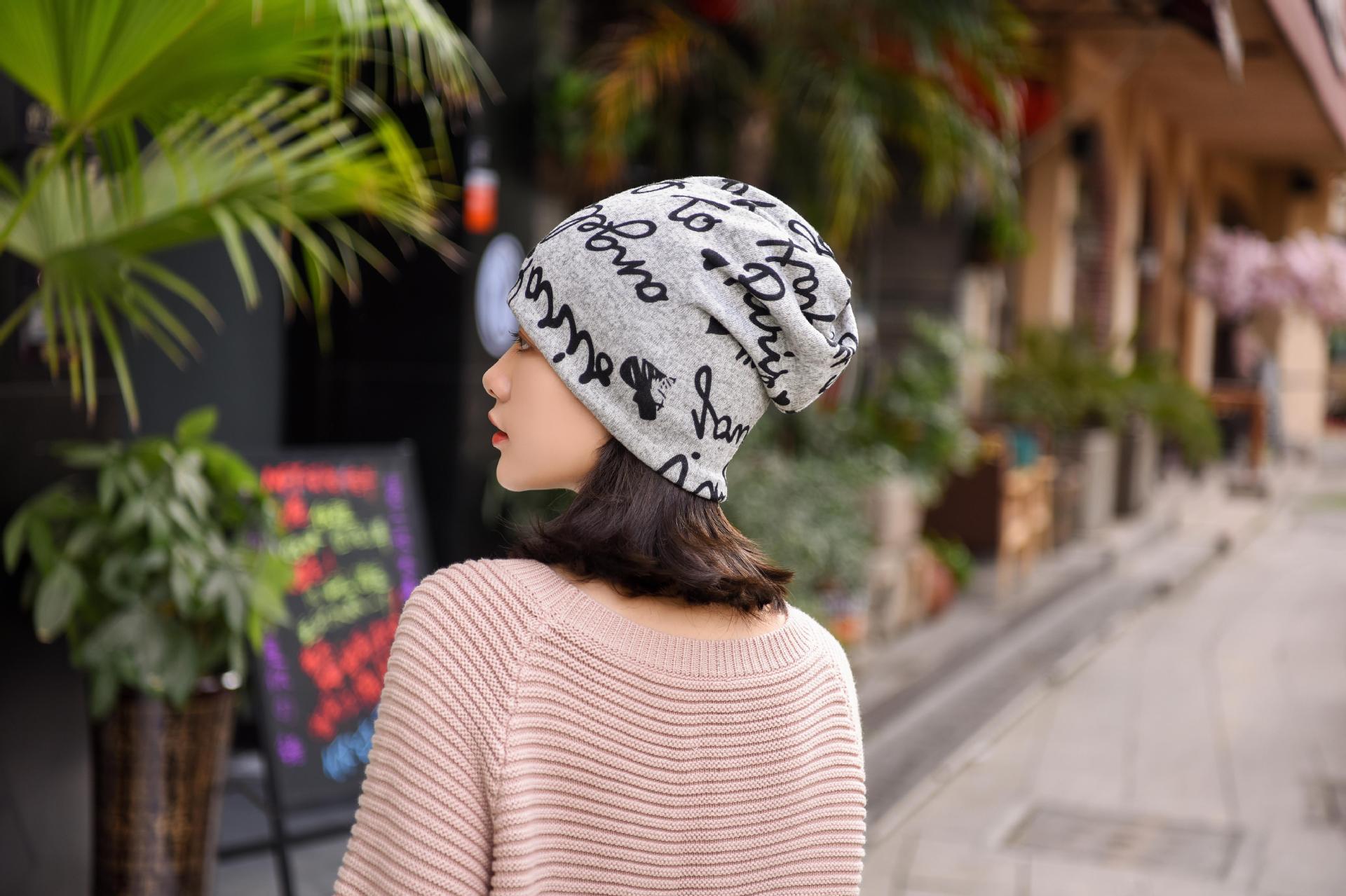 字母印花针织头巾帽户外运动时尚女士堆堆帽孕妇月子帽
