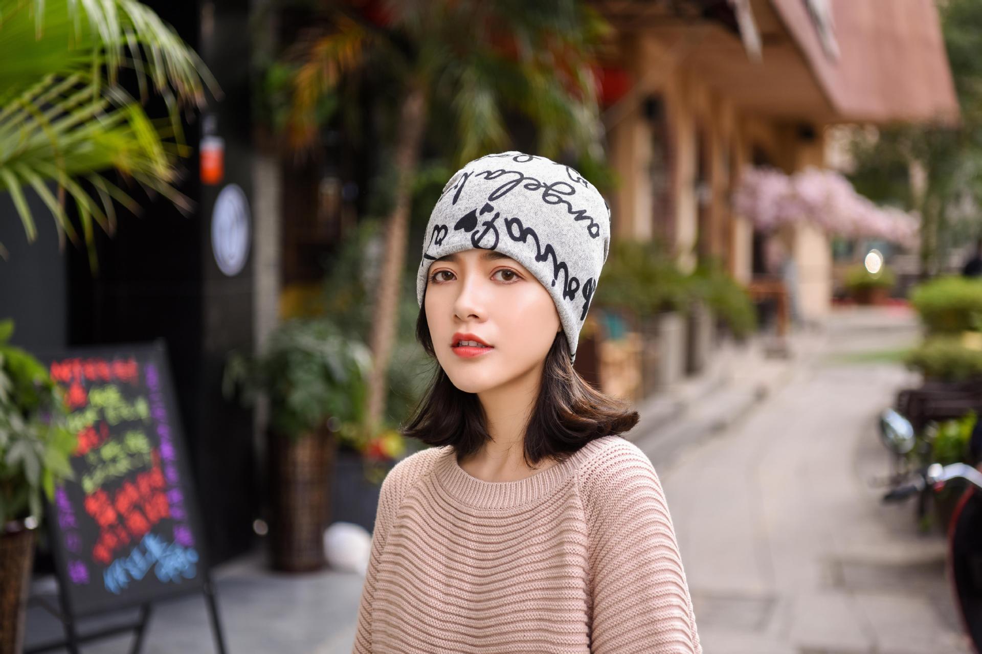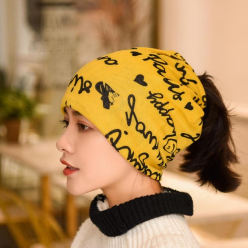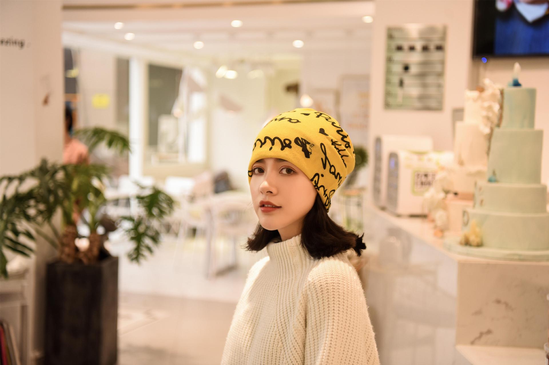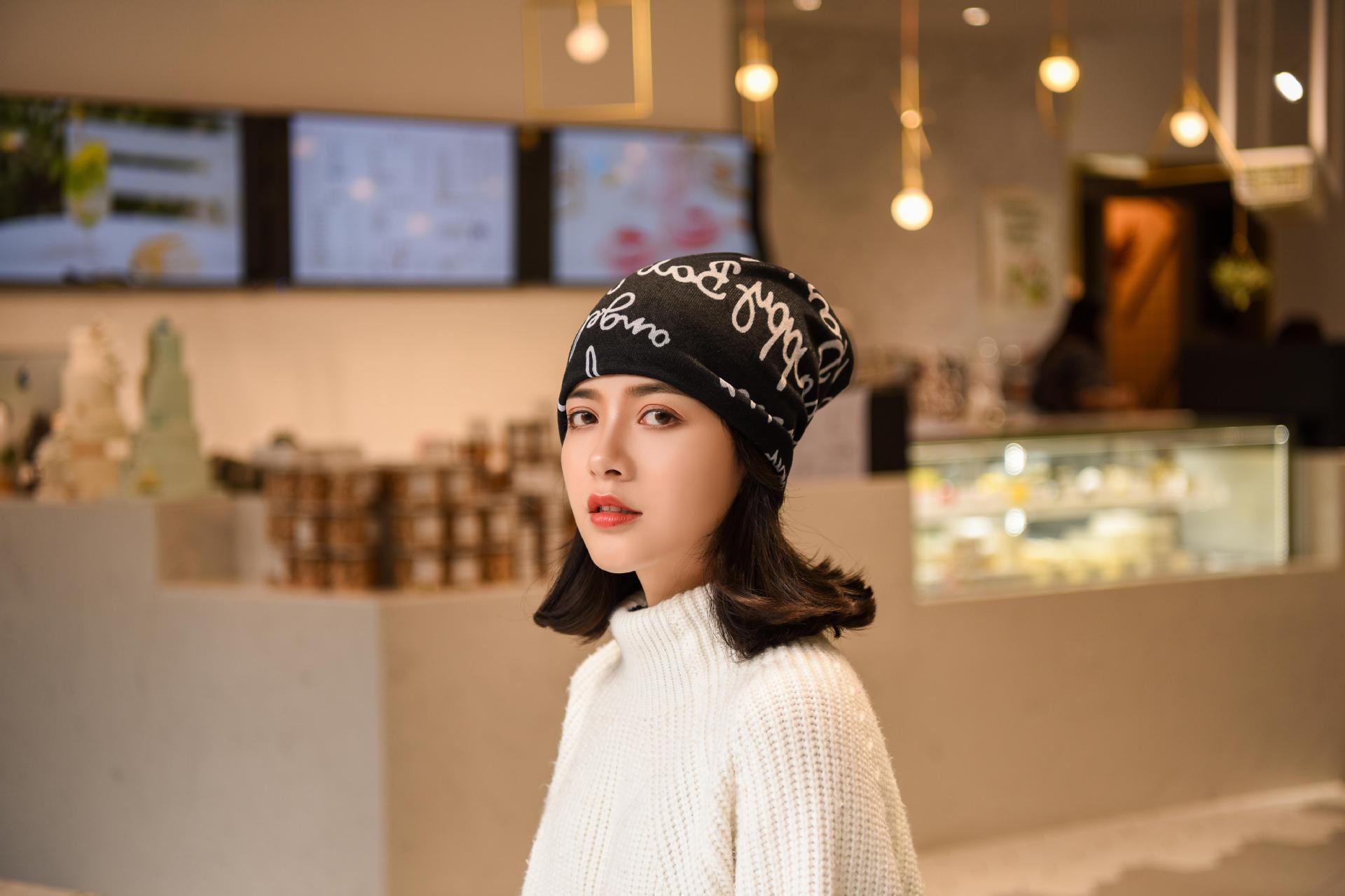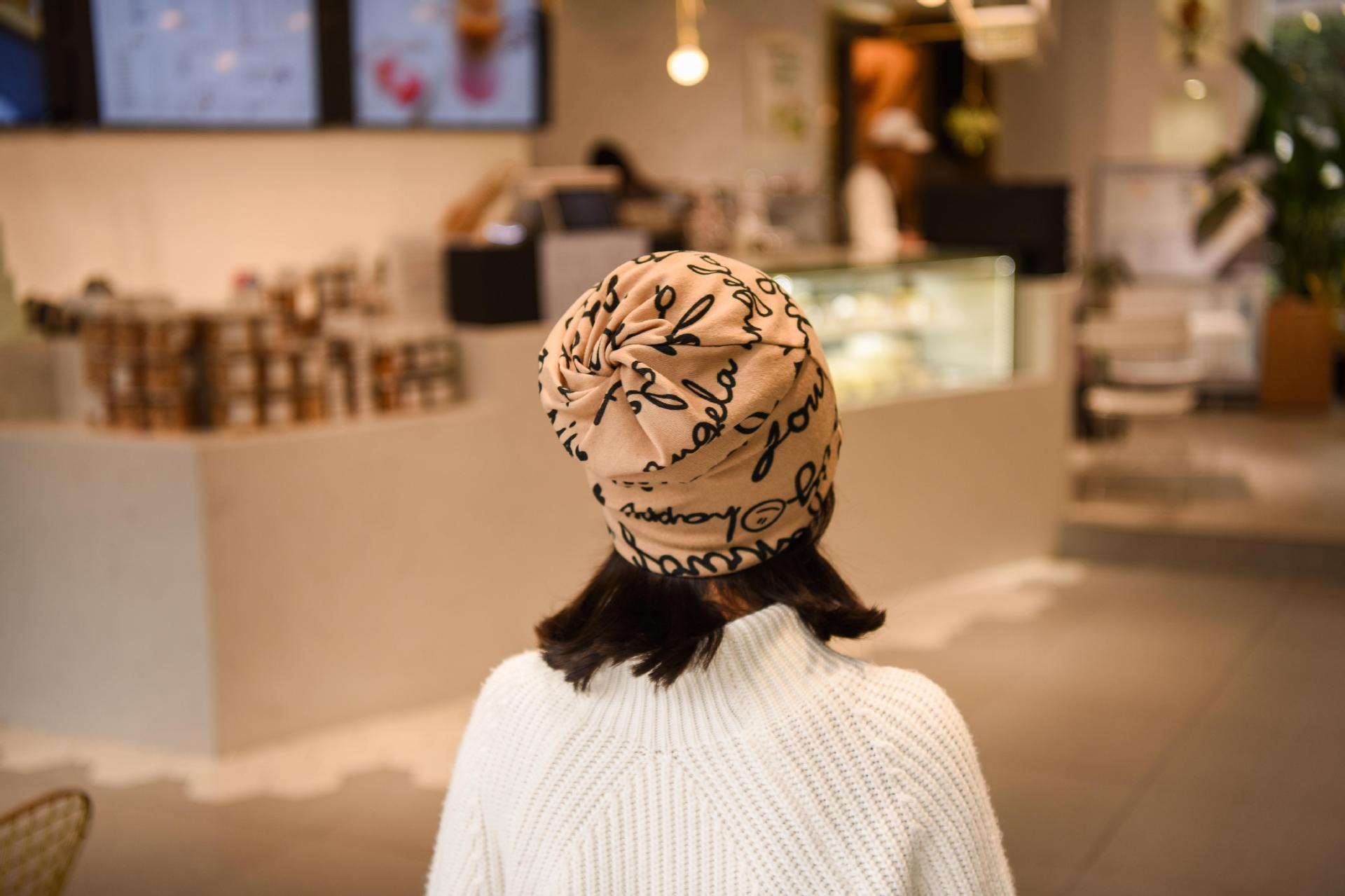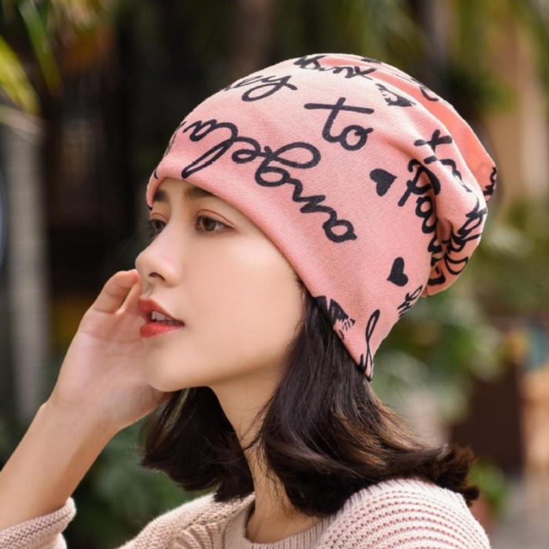 字母印花针织头巾帽户外运动时尚女士堆堆帽孕妇月子帽
