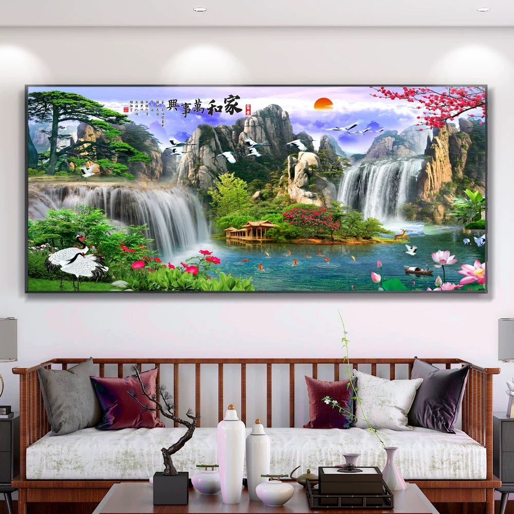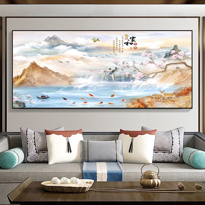 迎客松挂画客厅高级感沙发背景墙装饰画办公室山水风景壁画靠山画