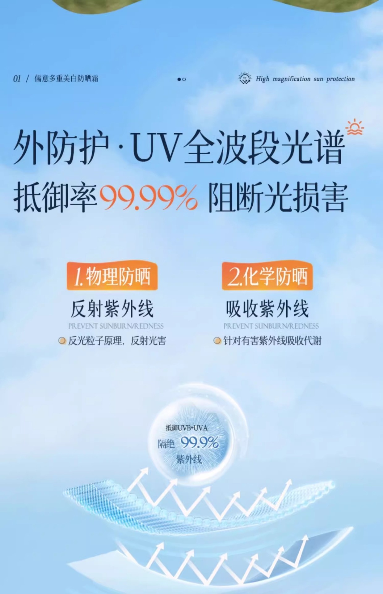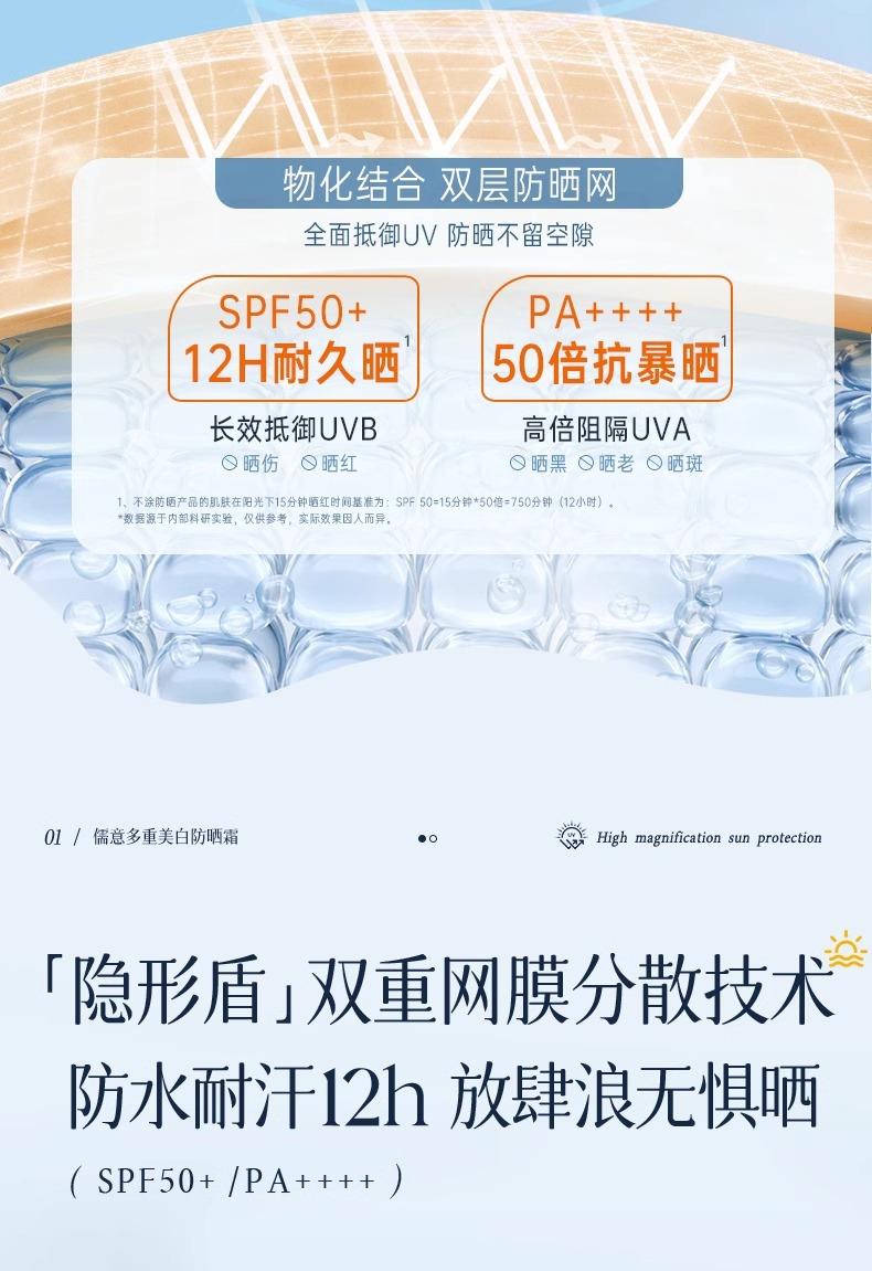 RUYI儒意MERCILEN多重美白防晒霜SPF50+PA++++ 50g